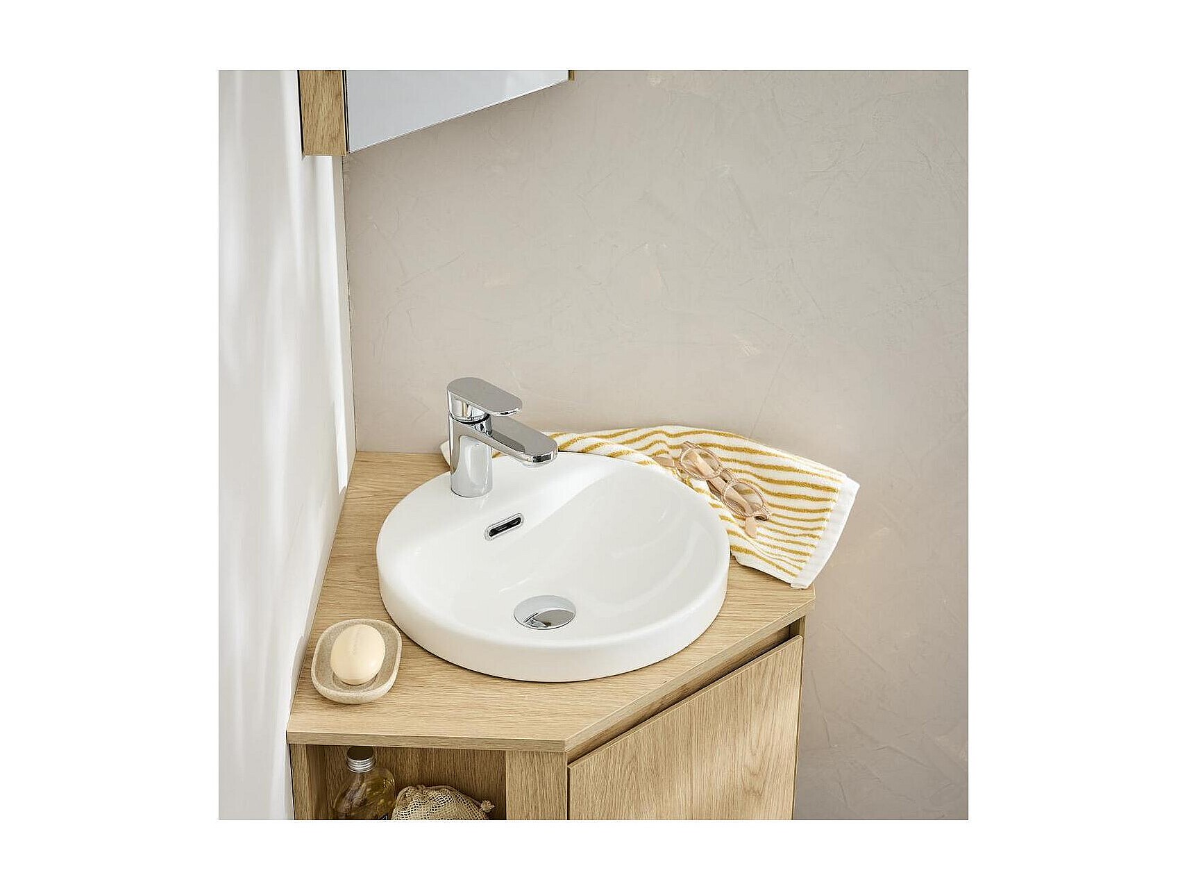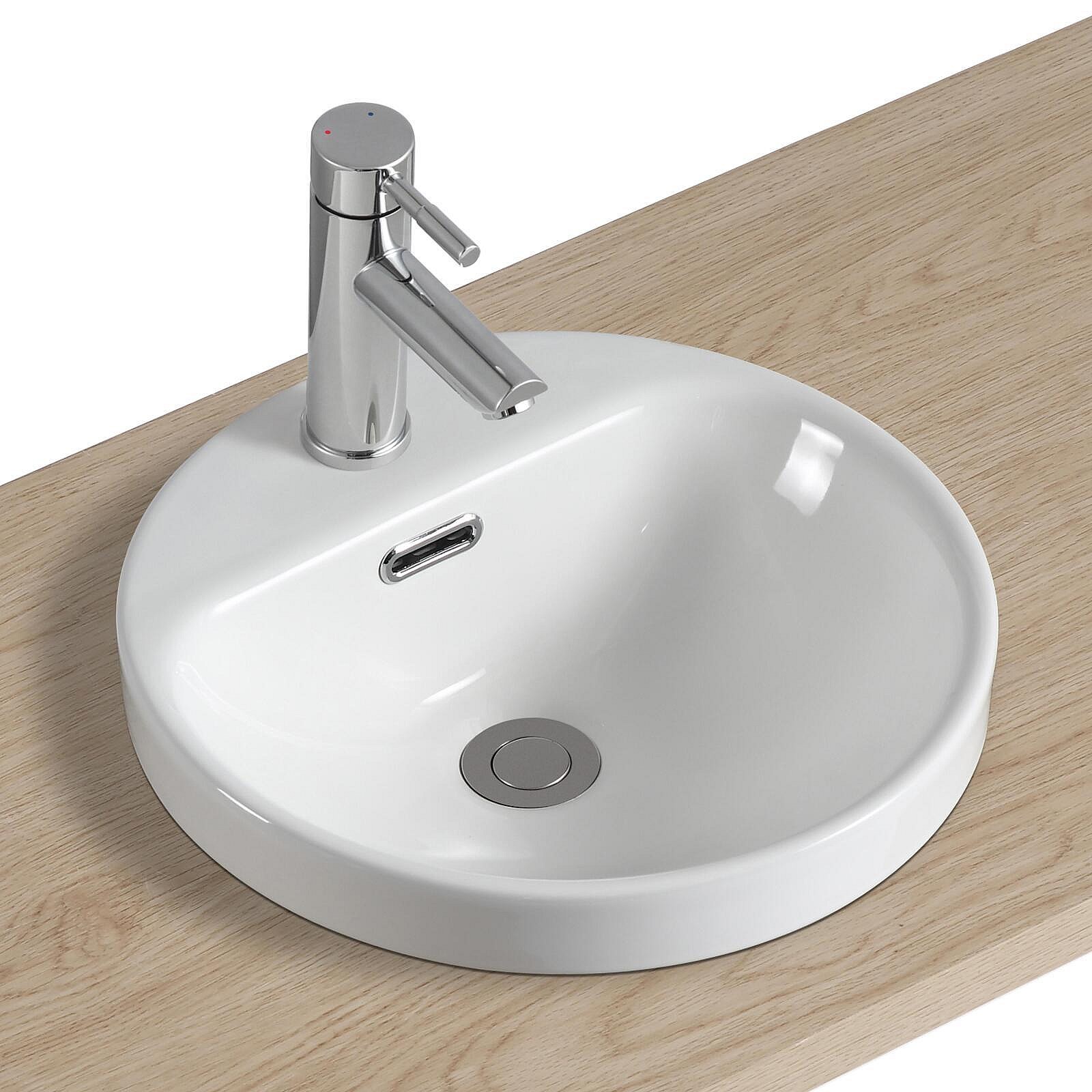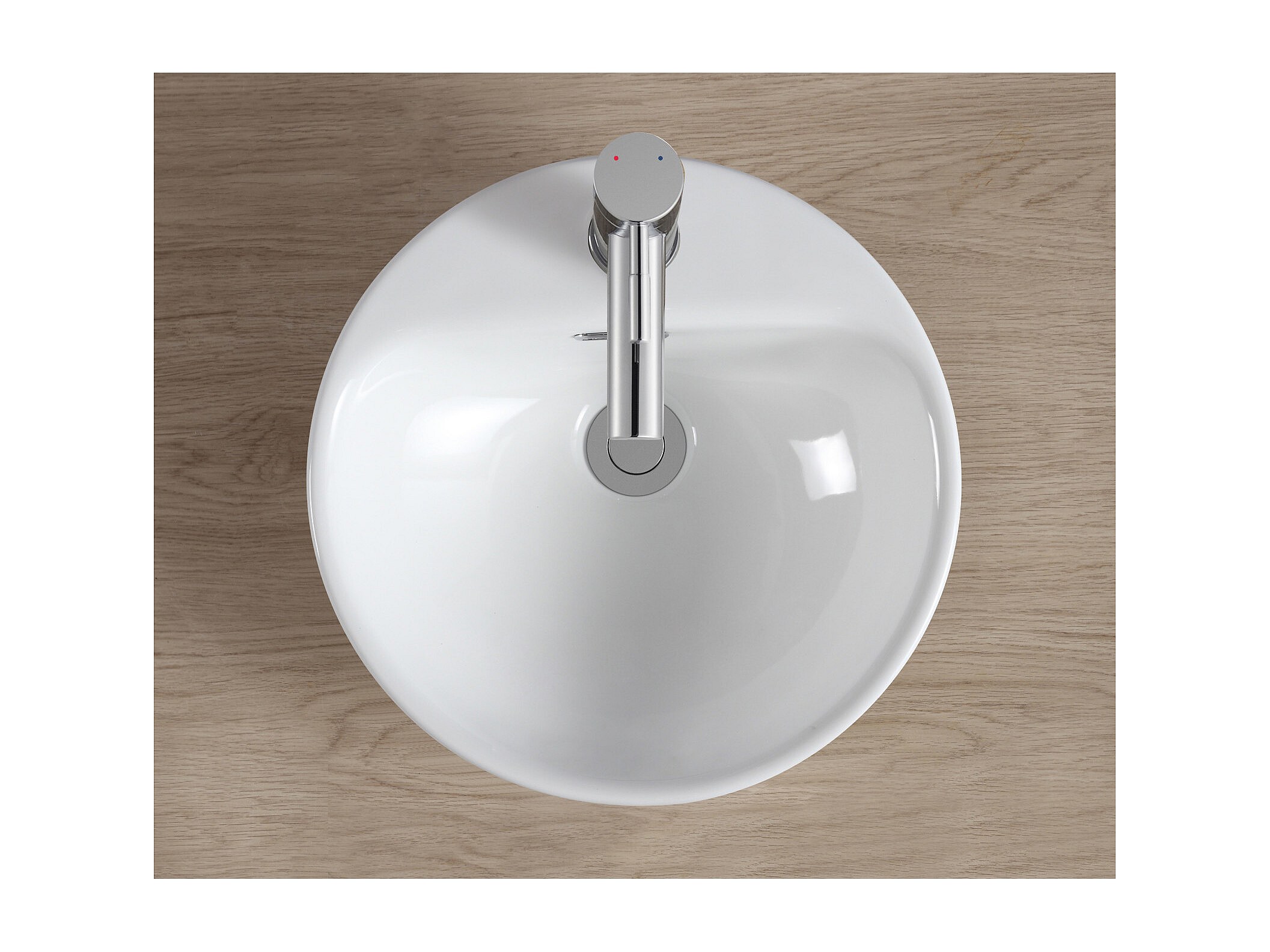 Vasque de salle de bain semi-encastrée ronde en céramique - 46 cm - Blanc - CATONAC II
