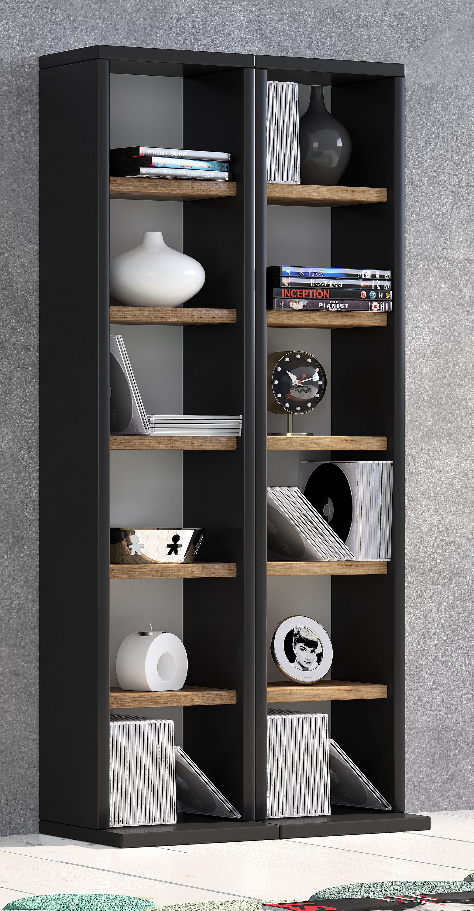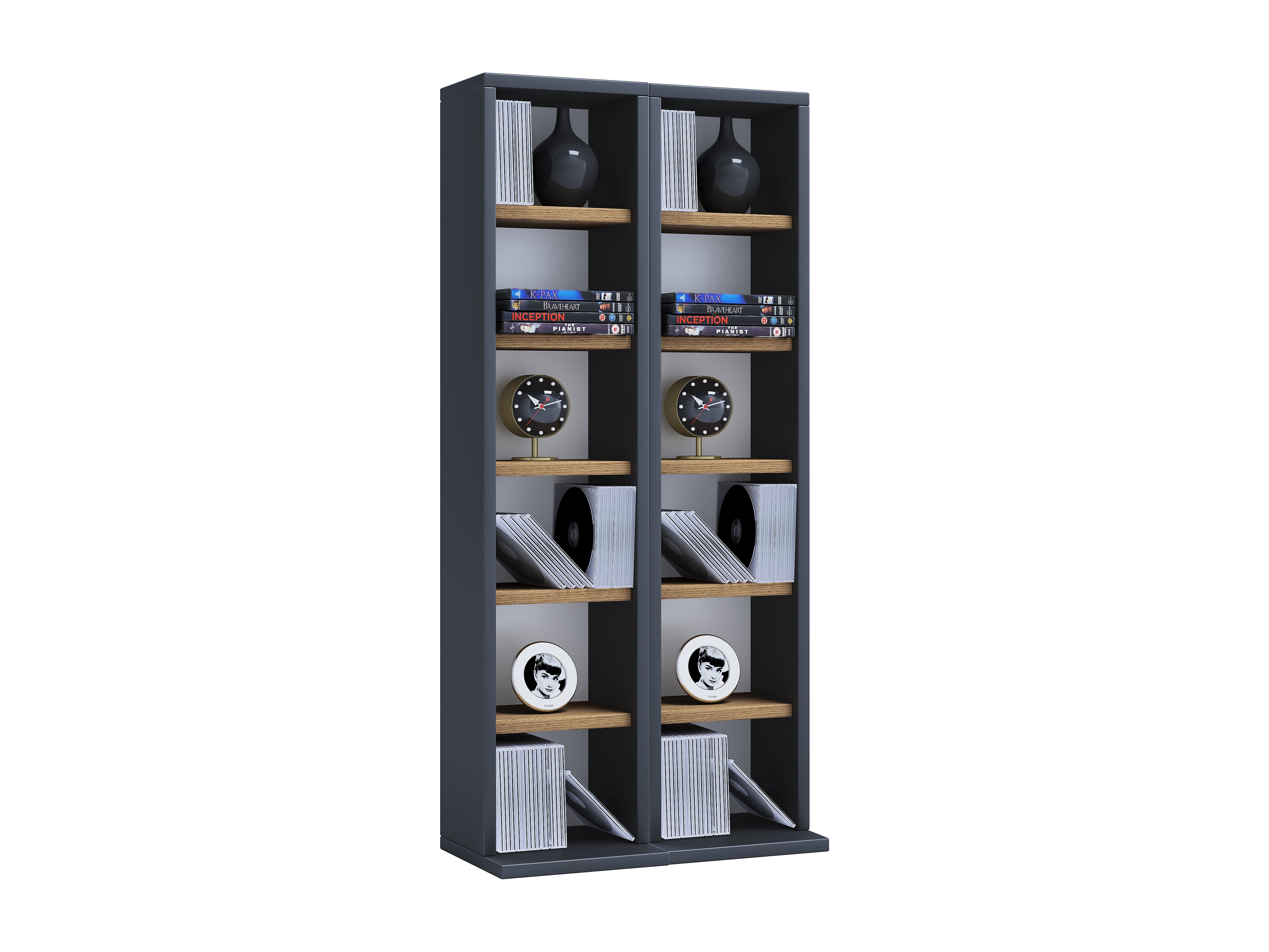 CD / DVD Media Shelf Almera Anthracite / honey oak H. 183 x W. 42 x D. 20 cm