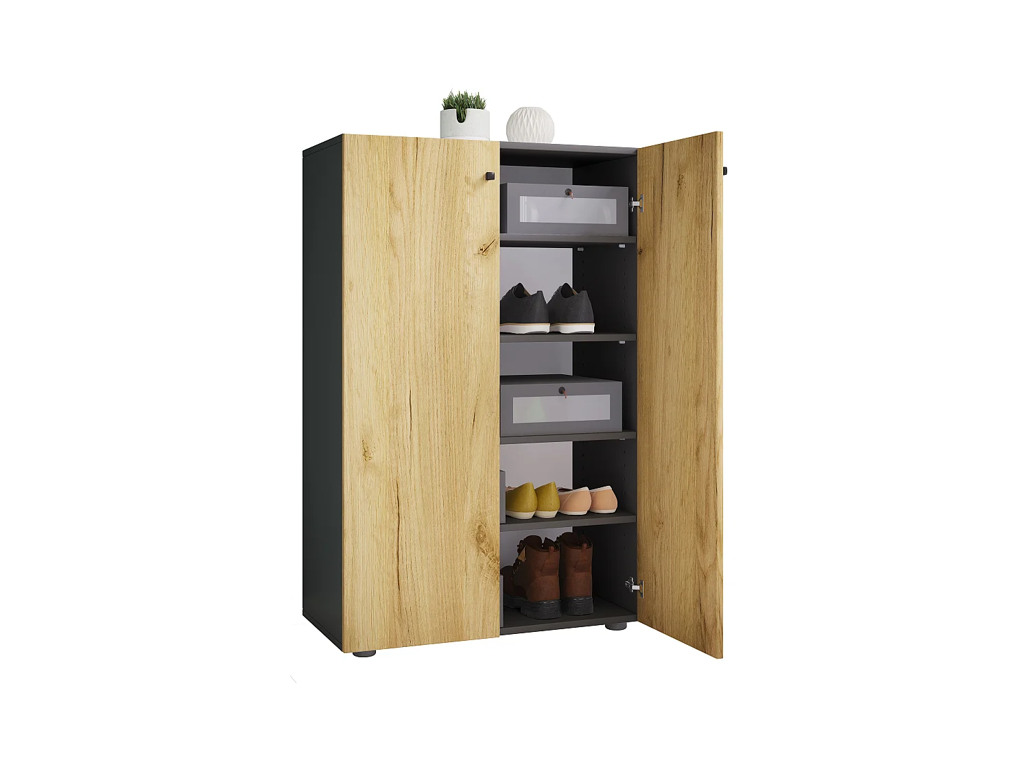 Shoe cabinet Lona Anthracite / honey oak H. 110 x W. 70 x D. 39 cm