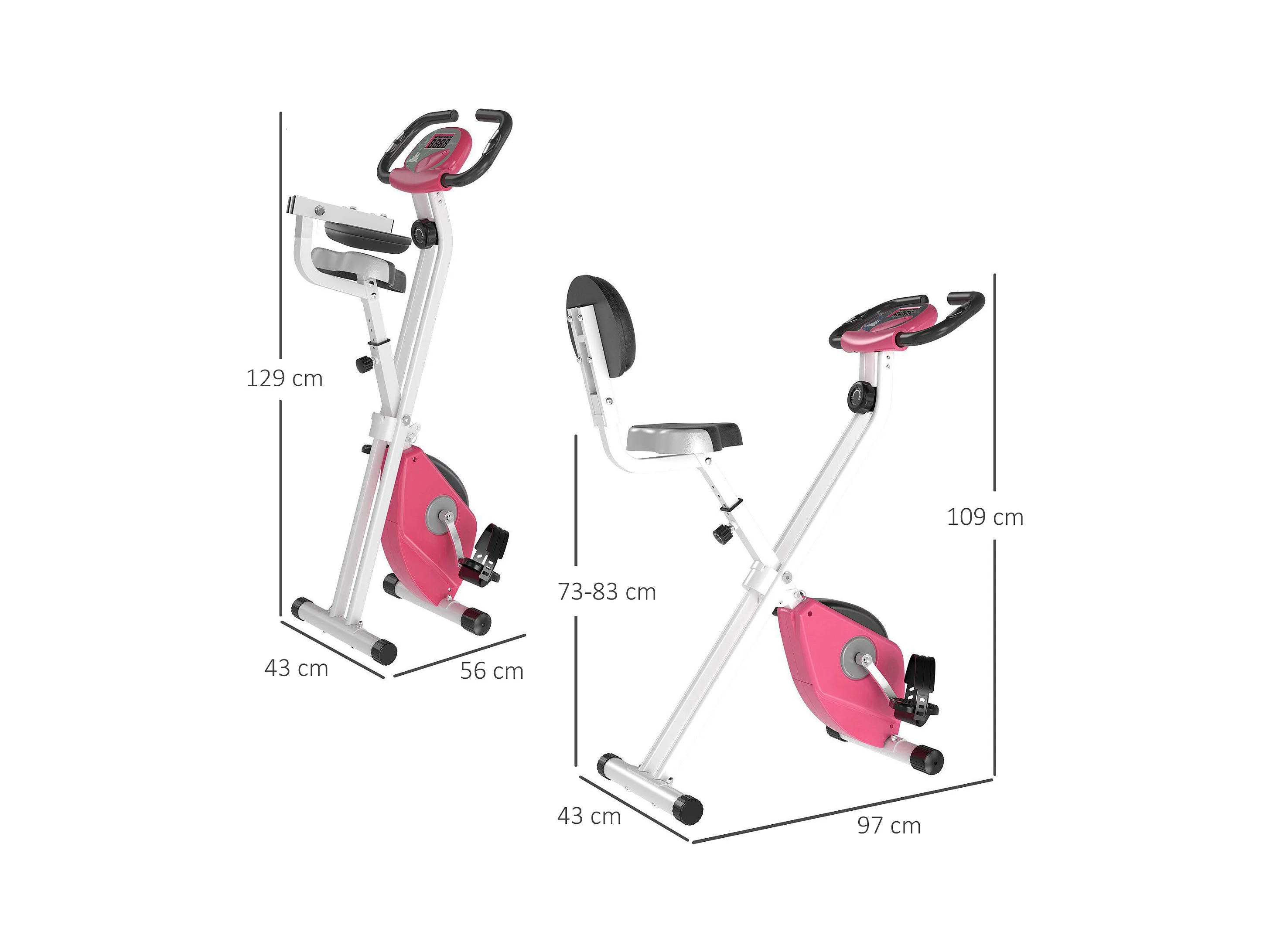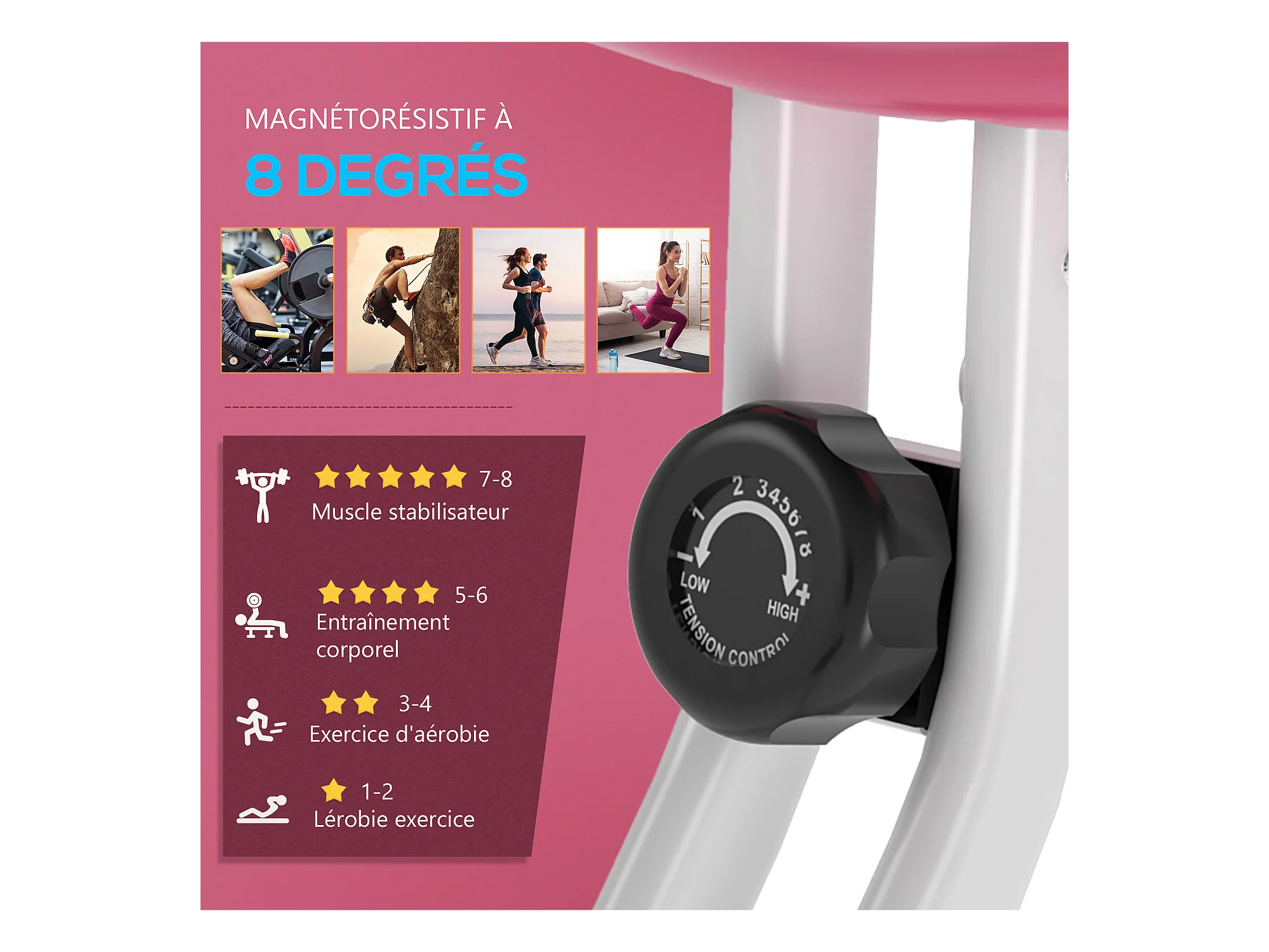 Vélo d'appartement pliable avec résistance magnétique 8 niveaux, réglable en hauteur, acier, rose et blanc (43x97x109 cm)
