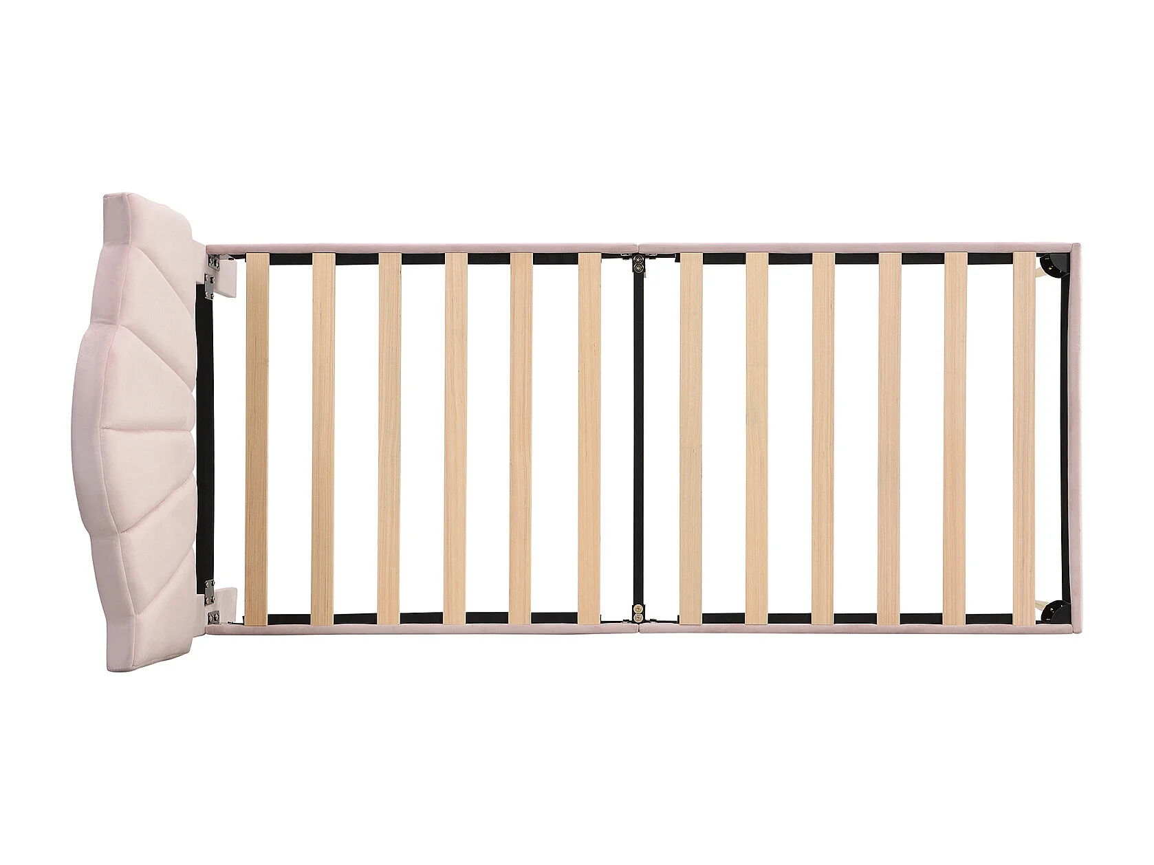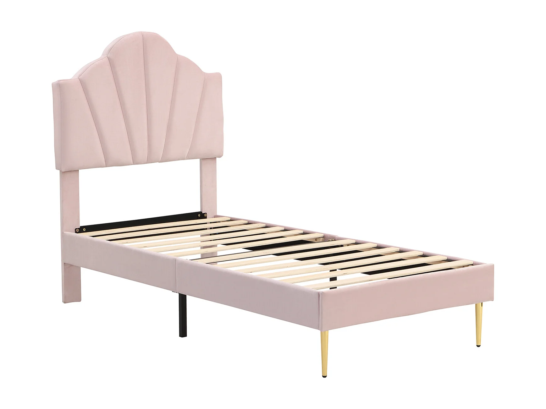 Velours, lit rembourré, 90 * 200 cm, lit en forme de coquille avec pieds en fer doré, tête de lit réglable en hauteur, grille à lattes en bois, rose