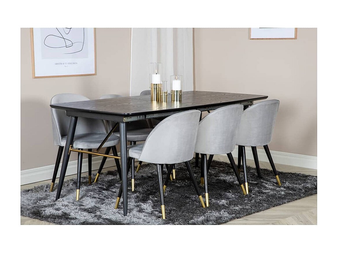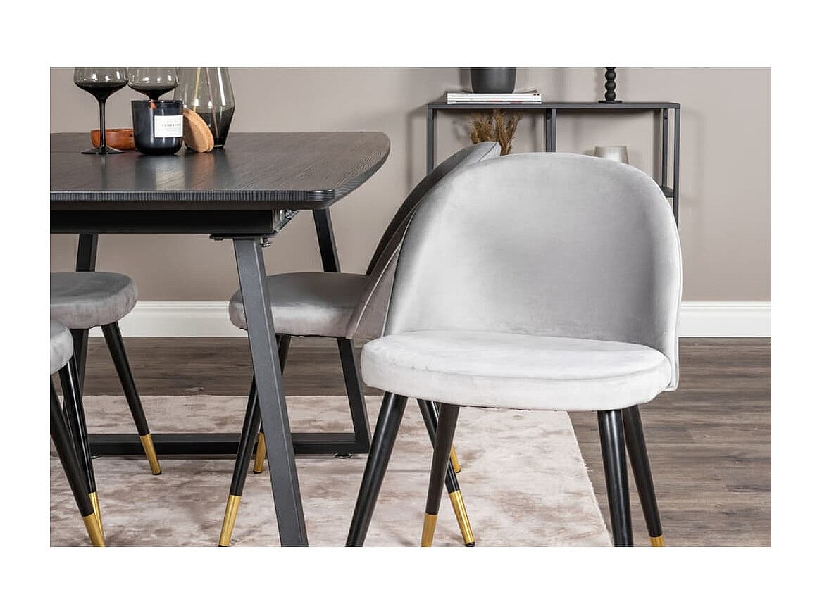 Chaises à manger lot de 2 Velvet noir, laiton et gris