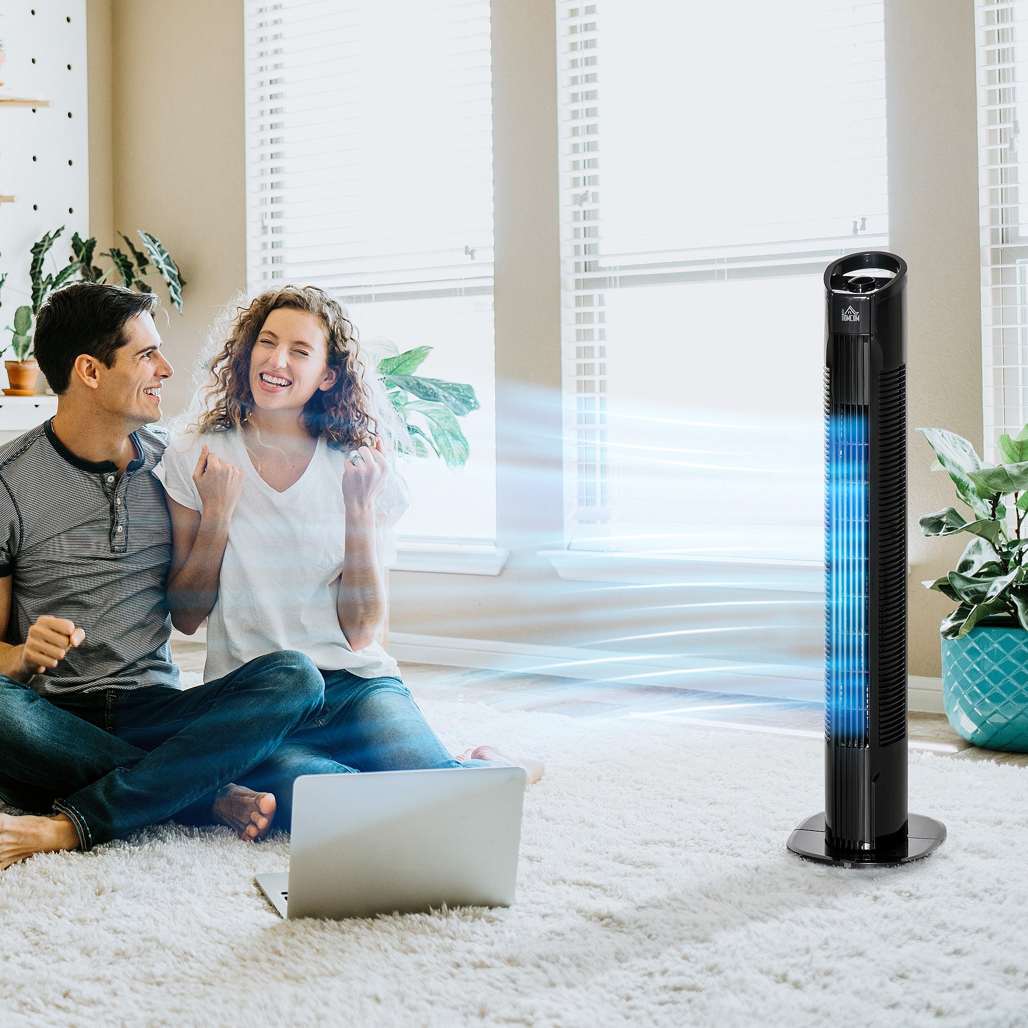 Ventilateur colonne tour oscillant silencieux 50W 3 vitesses Ø 20 x 78,5H cm noir