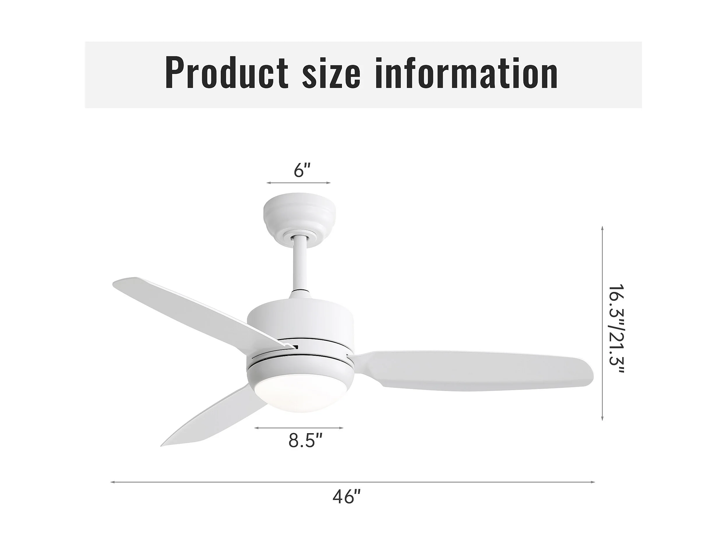 Ventilateur de plafond 116.8cm 3 ABS pales avec LED, 6 vitesses, Moteur DC réversible, blanc