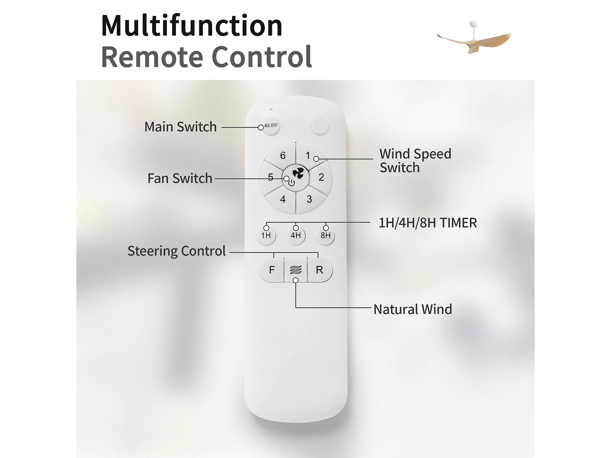 Ventilateur de plafond en bois de 52 pouces – Ventilateur de plafond avec télécommande à 6 vitesses et trois pales – pour salon