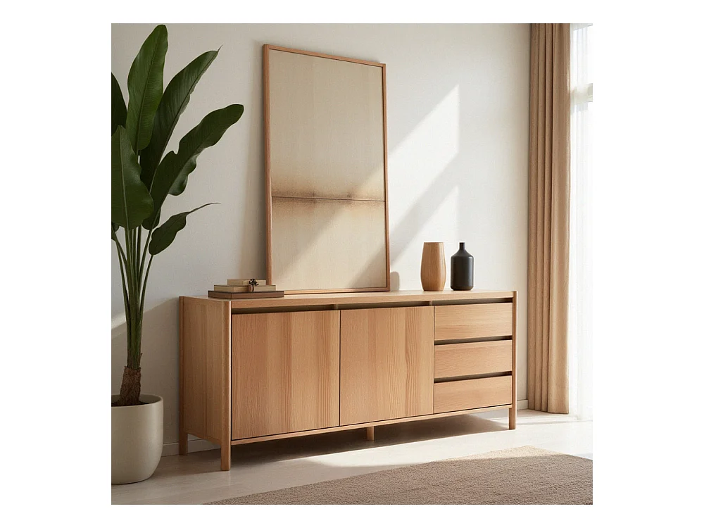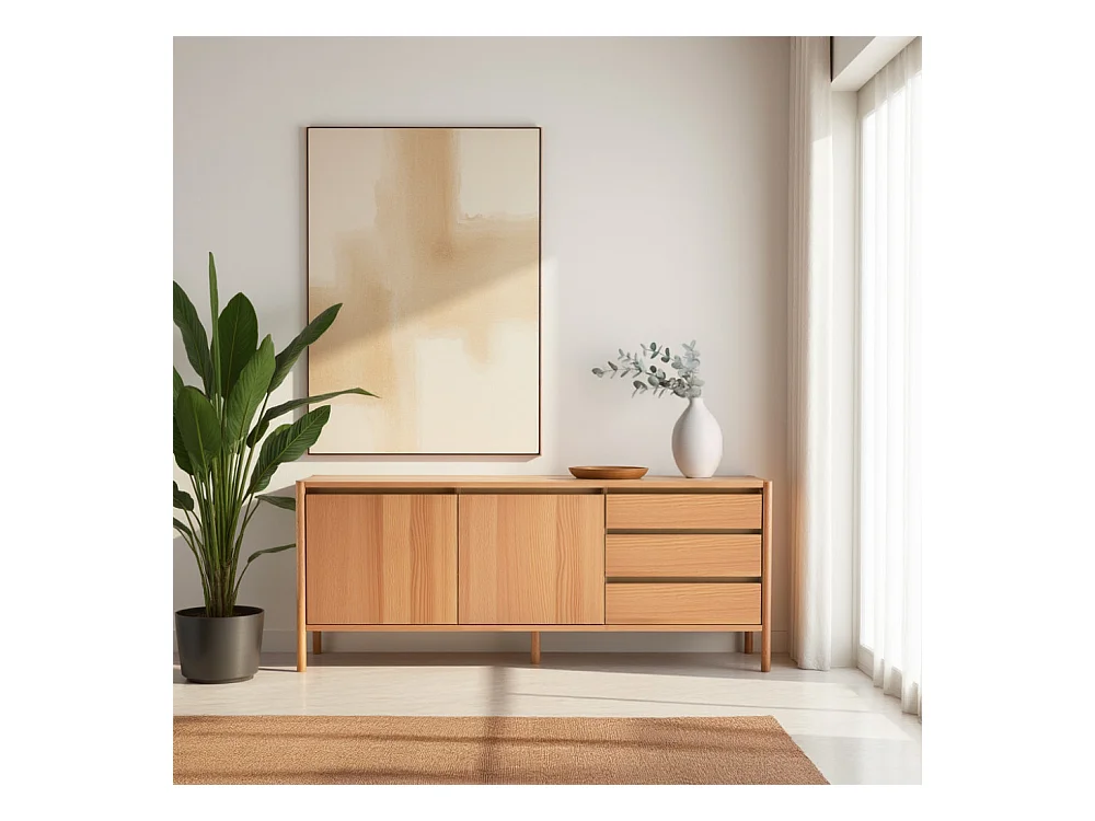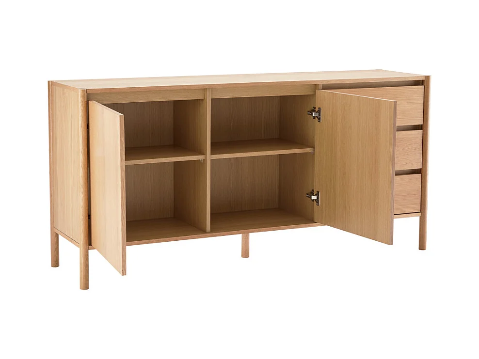 Verade - Buffet 2 portes 3 tiroirs en bois L160cm - Bois clair
