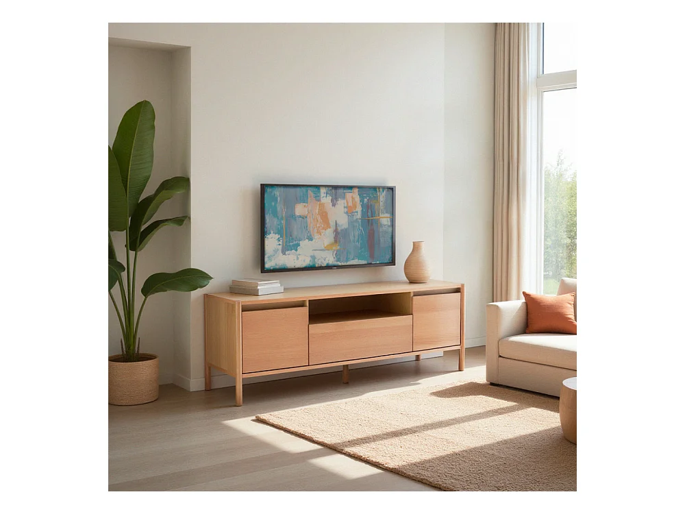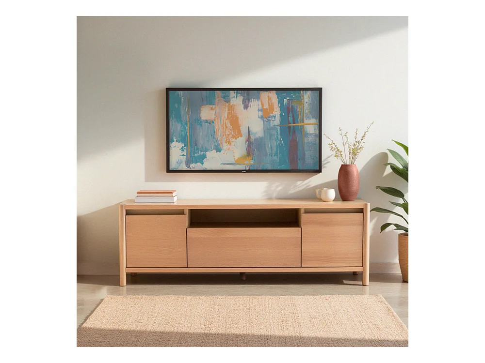 Verade - Meuble TV 2 portes 1 tiroir en bois L180cm - Bois clair