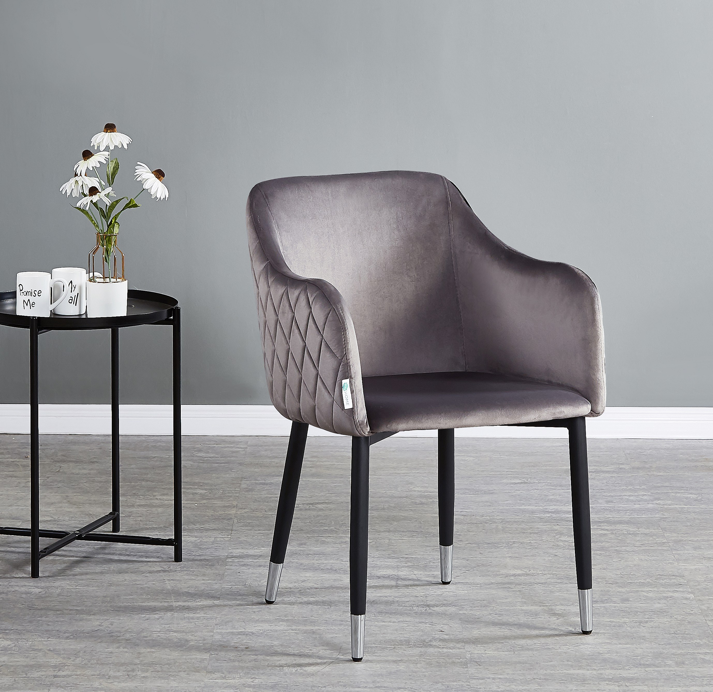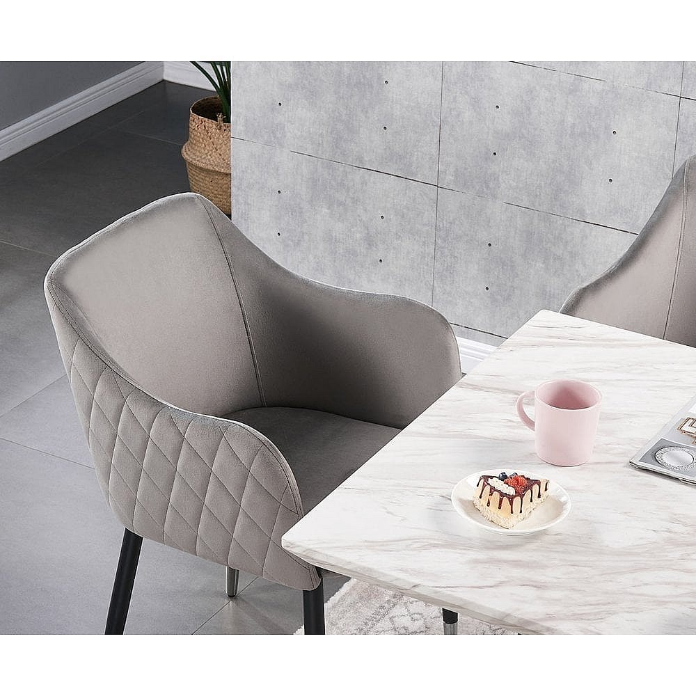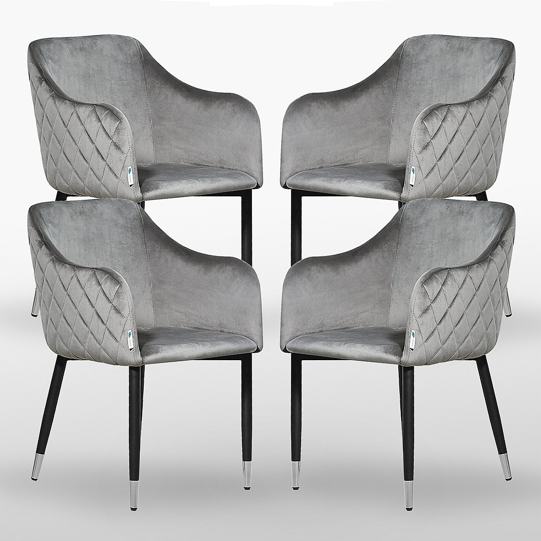 VERONA - Lot de 4 Chaises de Salle à Manger en Velours - Style Vintage - Gris