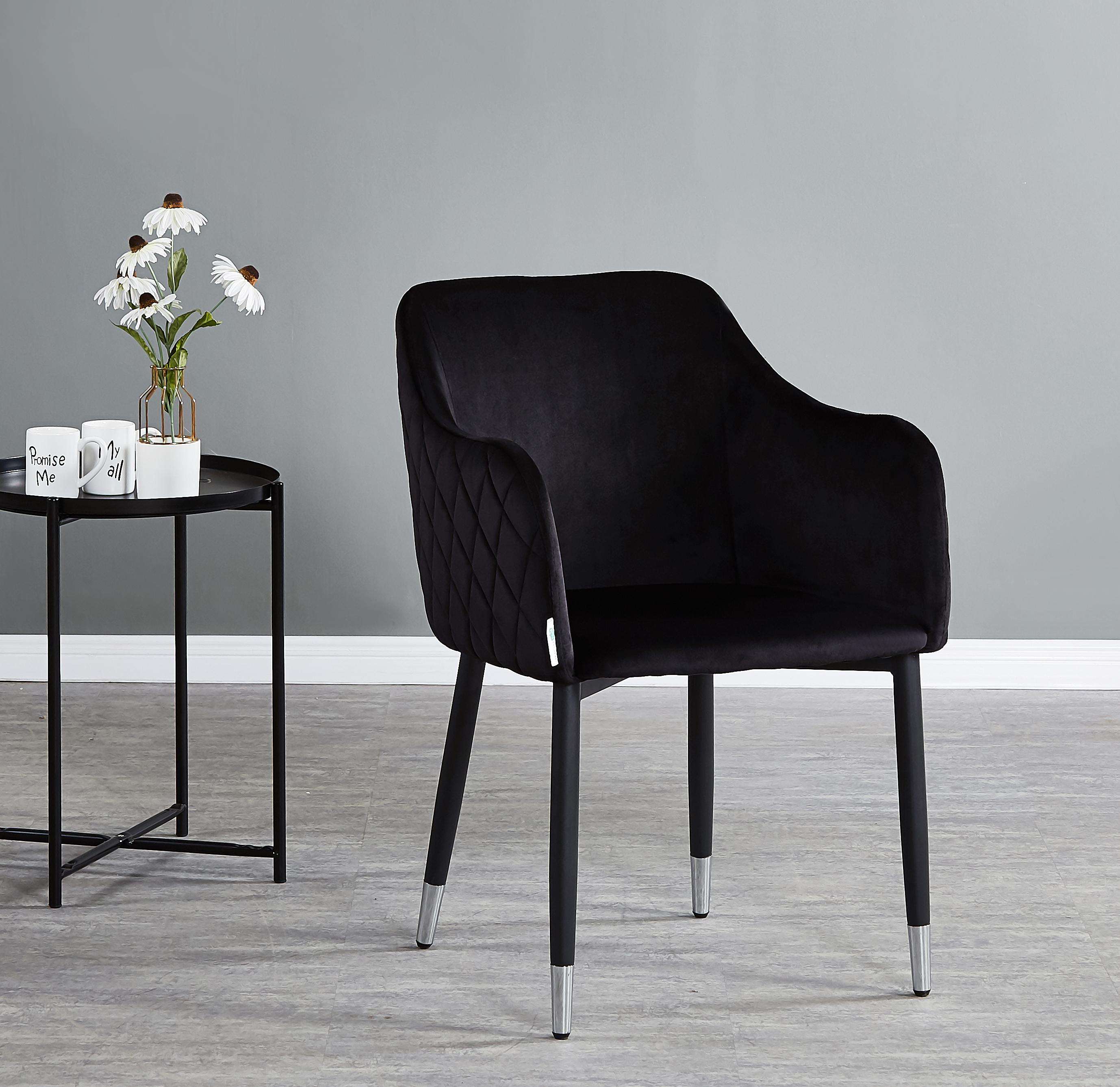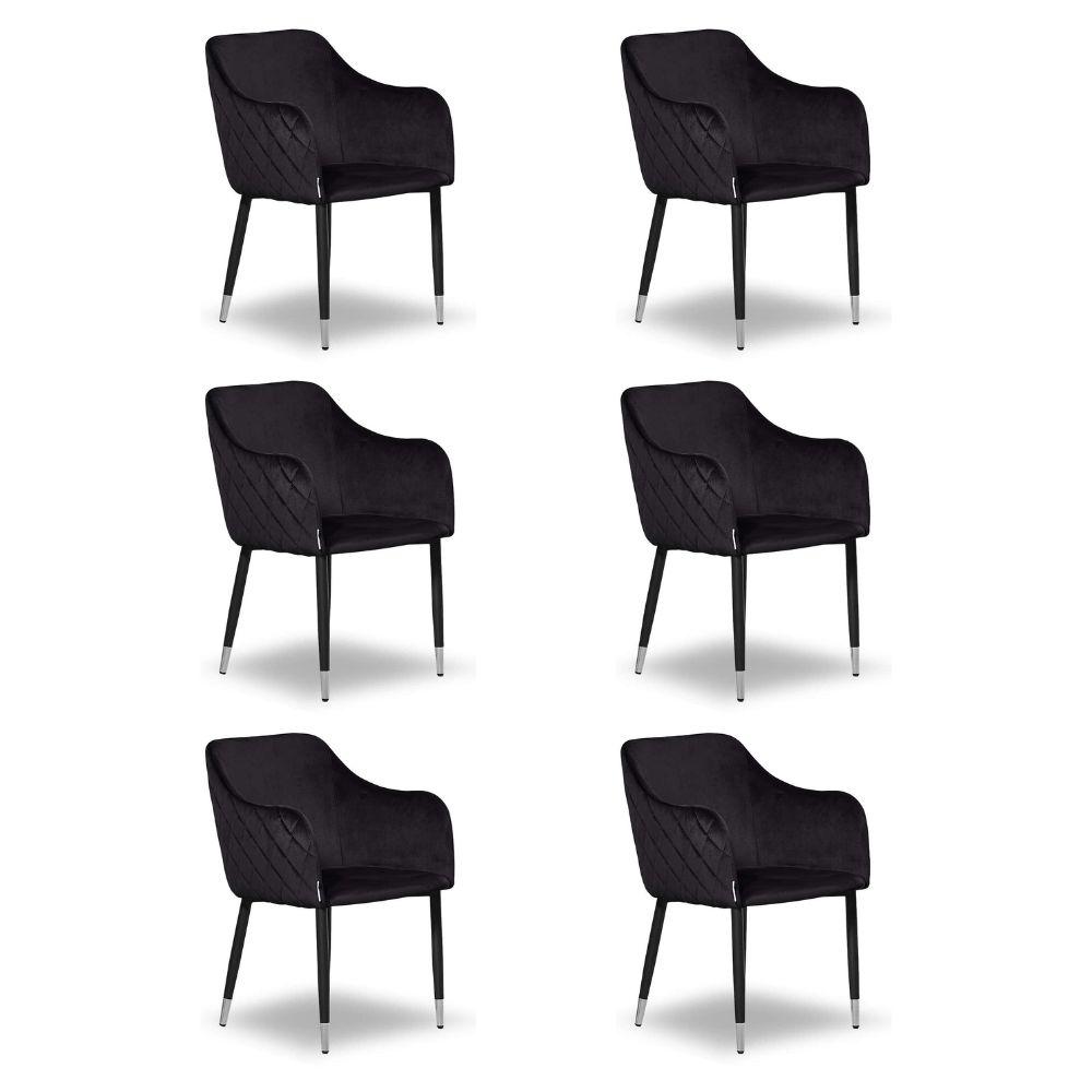 VERONA - Lot de 6 Chaises de Salle à Manger en Velours - Style Vintage - Noir