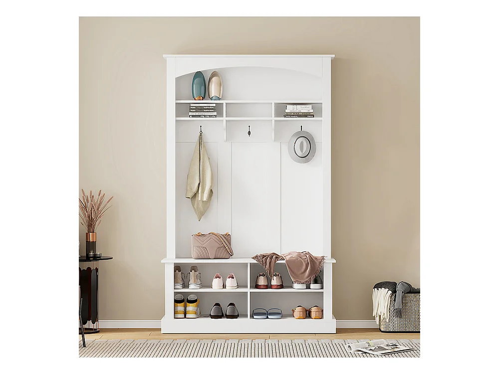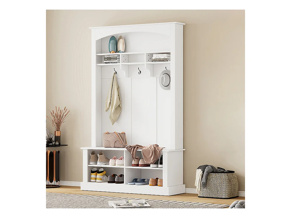 Vestiaire blanc banc rangement chaussures multifonctionnel 3 crochets suspendus espace rangement ouvert étagères couloir