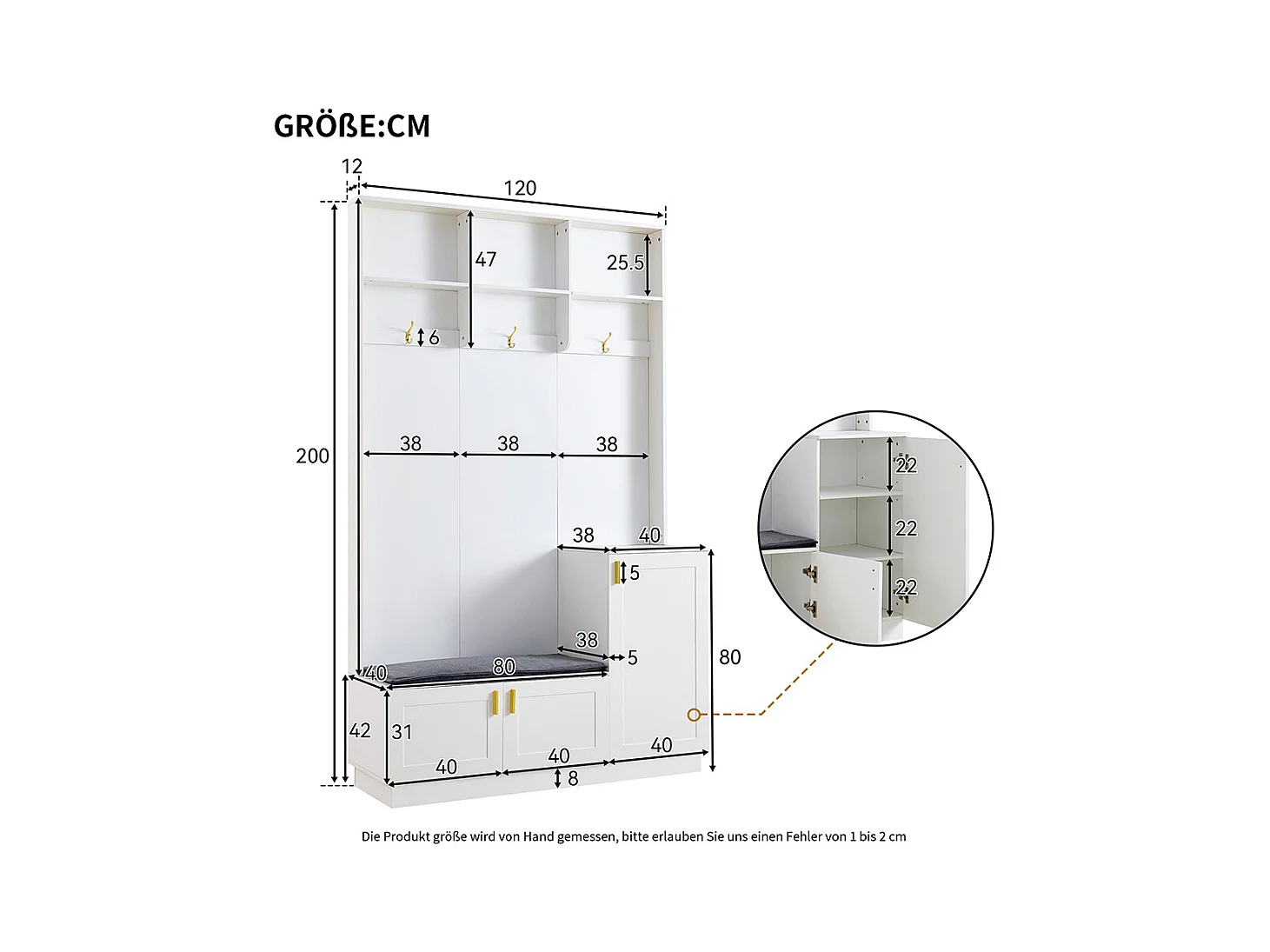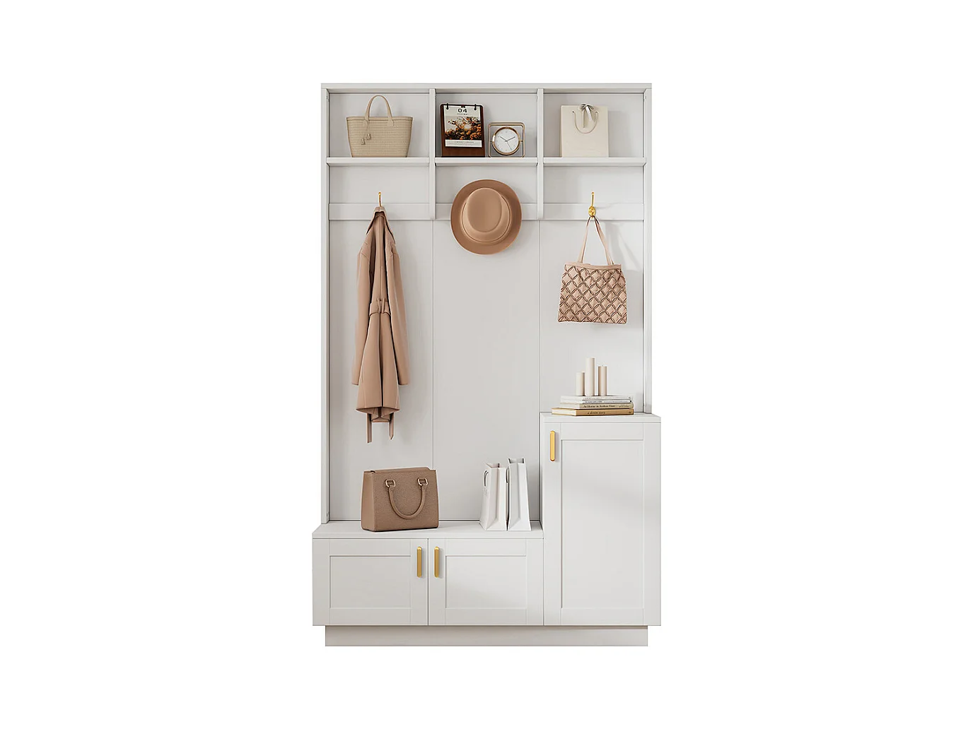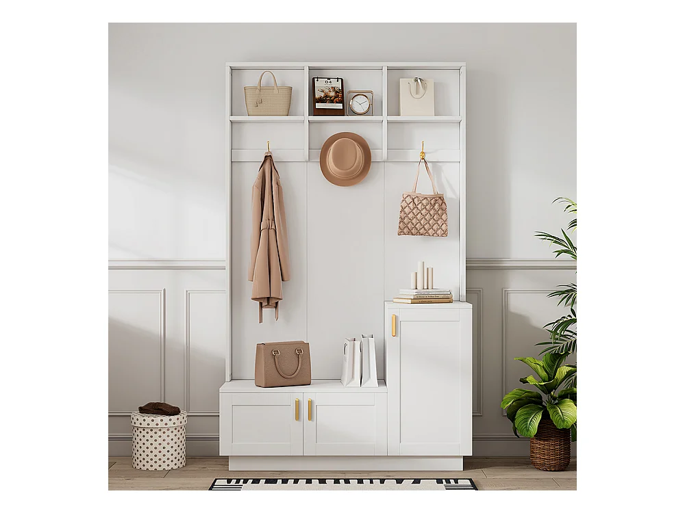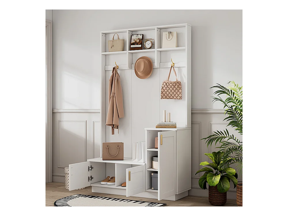 Vestiaire blanc banc rangement chaussures multifonctionnel 3 crochets suspendus espace rangement ouvert étagères couloir