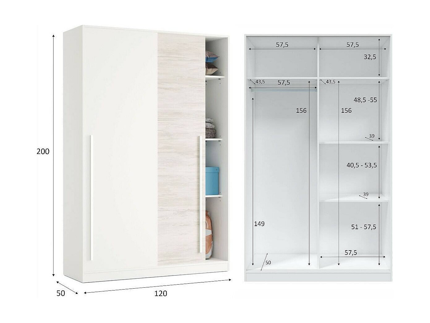 Dcelesi Armoire, Armoire de Chambre avec 2 Portes coulissantes, Armoire avec Barre de Suspension et 3 étagères, 120x50h200 cm, Blanc Antique