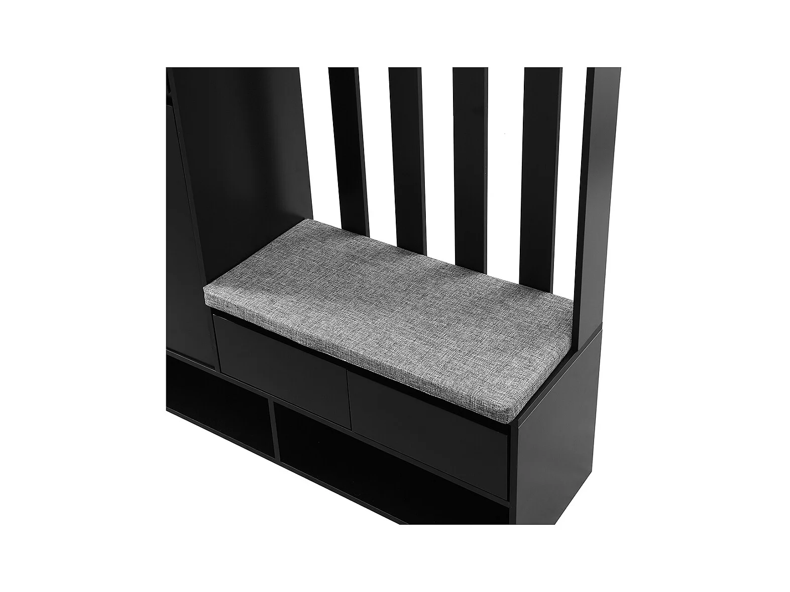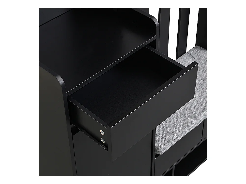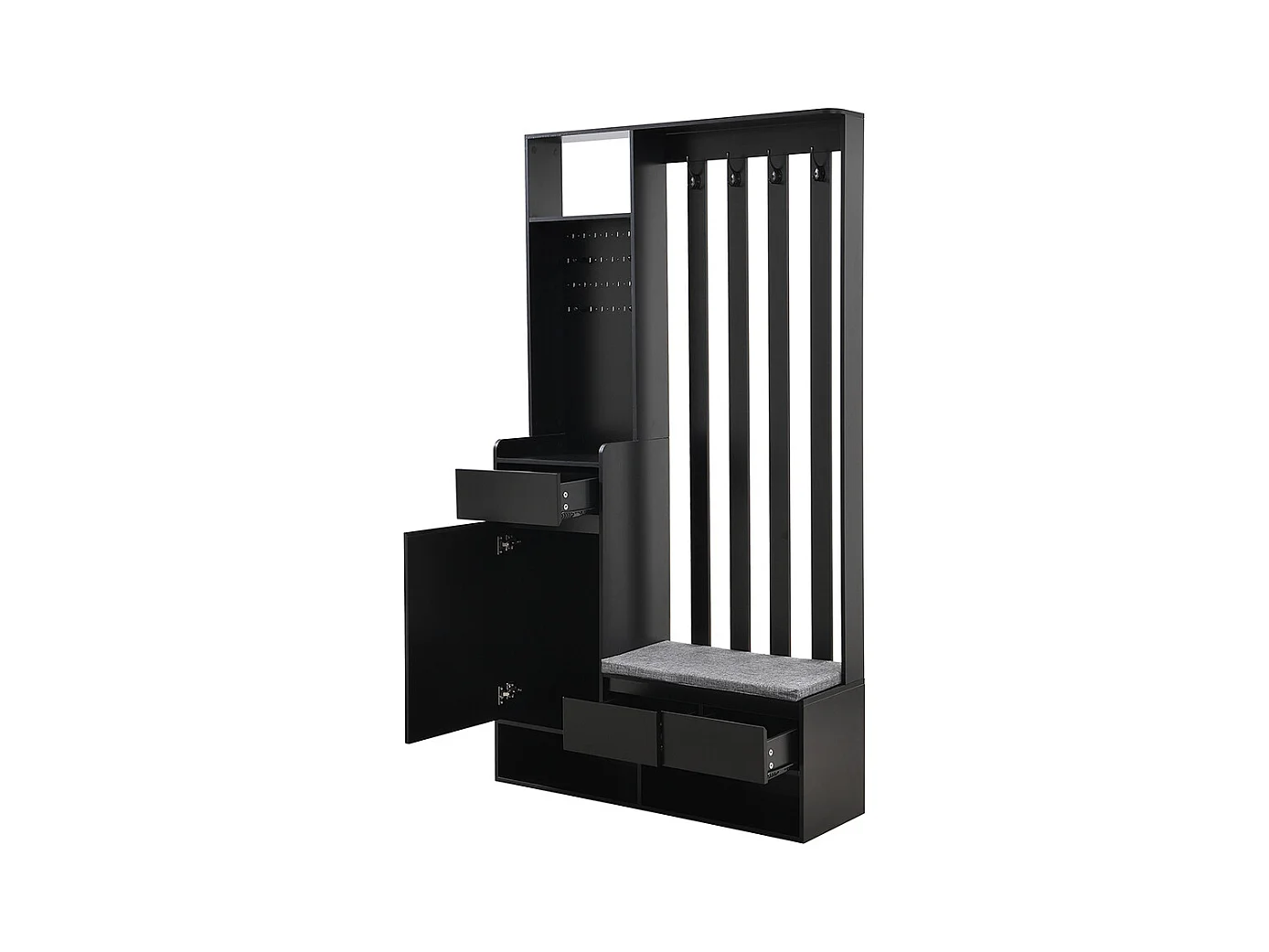 Vestiaire noir porte-manteau entrée banc rangement rembourré meuble à chaussures multifonctionnel tableau à fiches 4 crochets buanderie