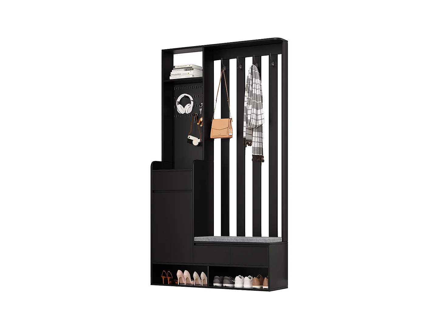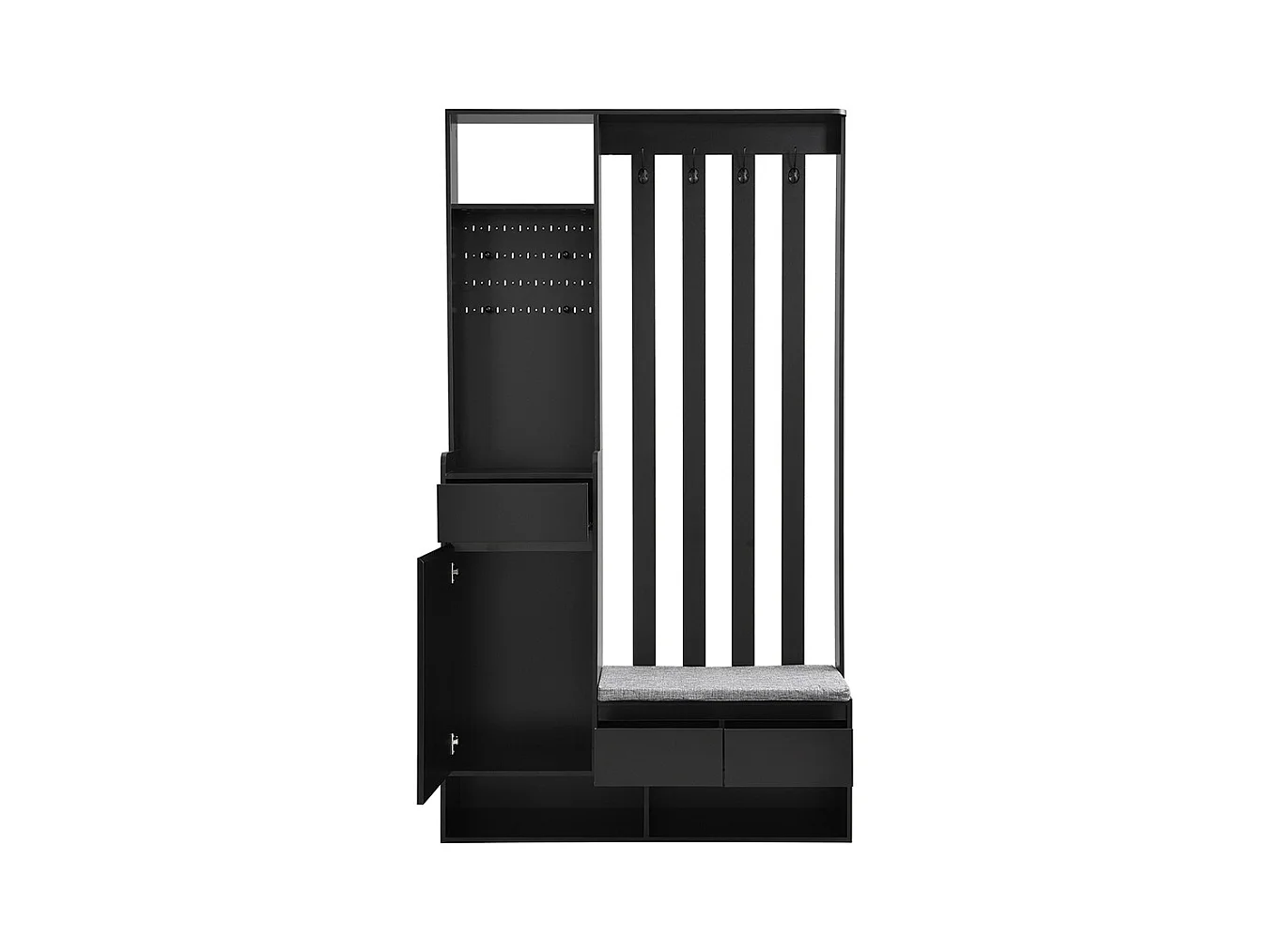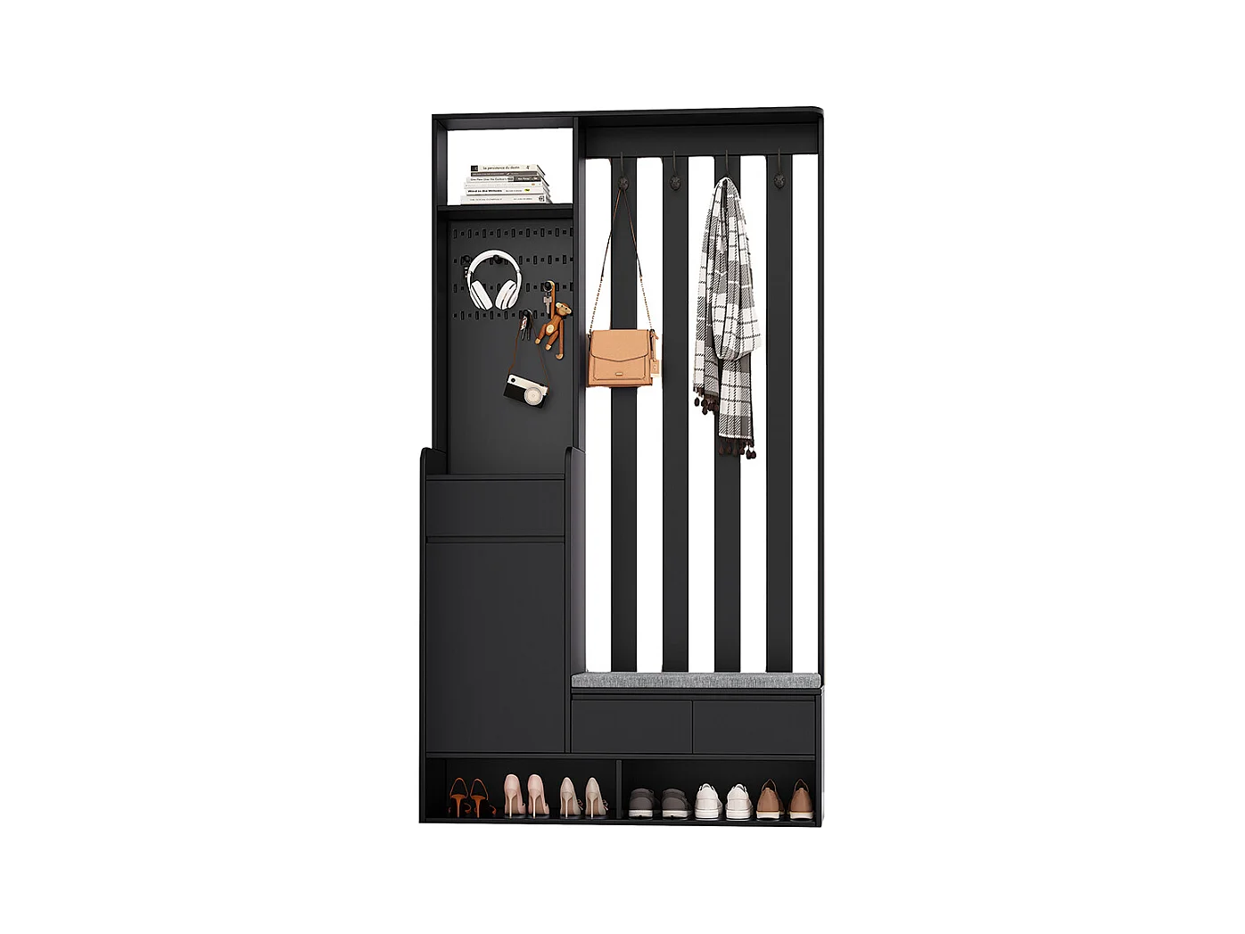 Vestiaire noir porte-manteau entrée banc rangement rembourré meuble à chaussures multifonctionnel tableau à fiches 4 crochets buanderie
