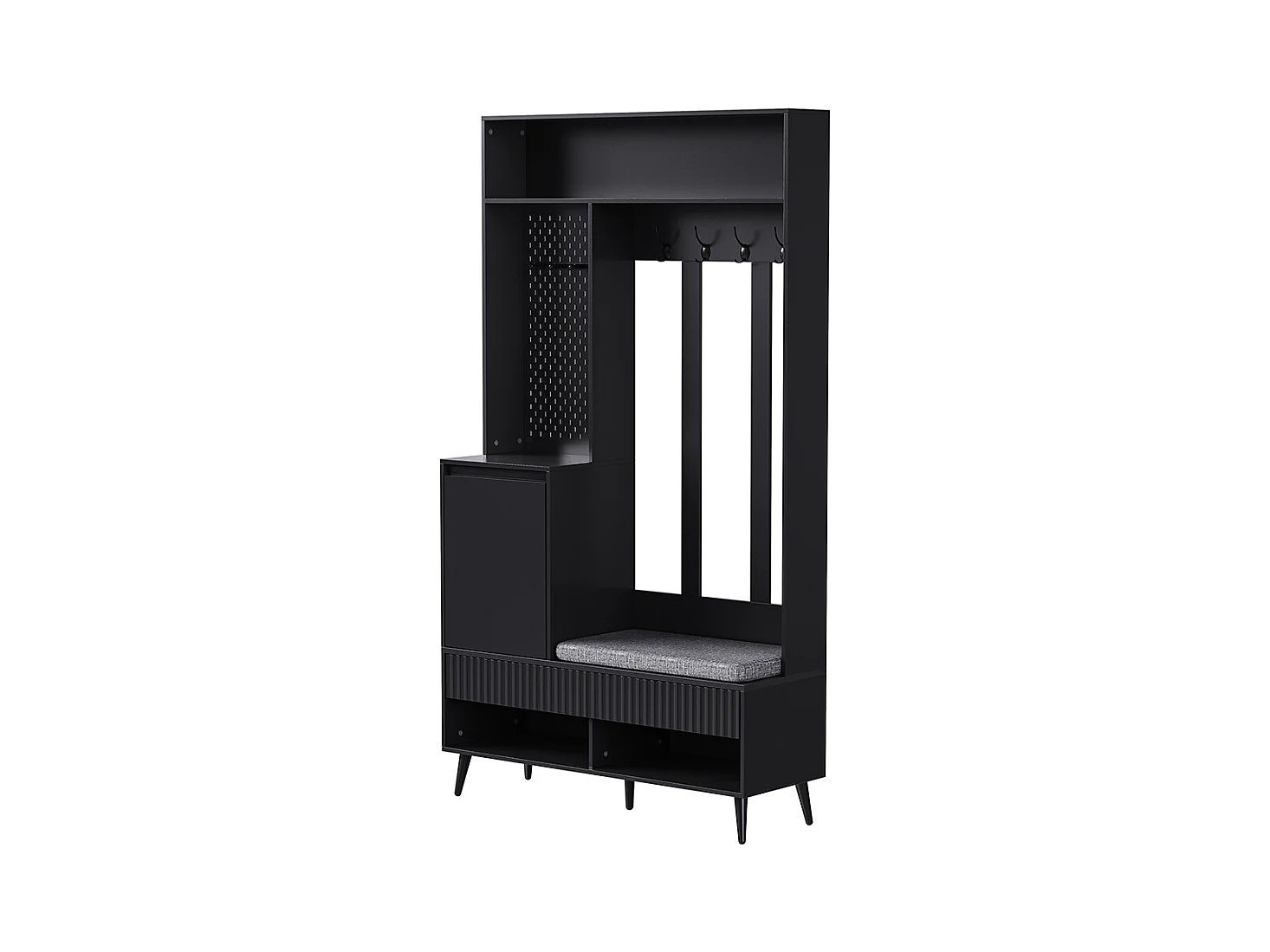 Vestiaire noir porte-manteau banc à chaussures 6 crochets triples indépendant entrée couloir