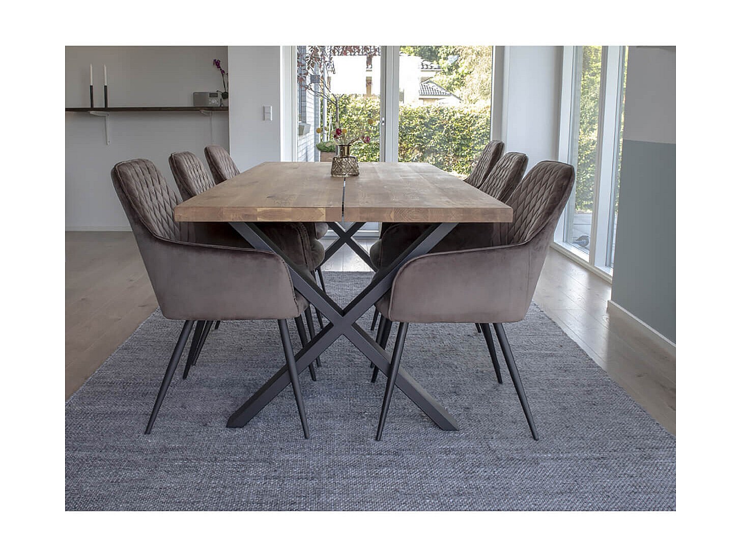 VIBY - Lot de 6 Fauteuils Velours Taupe et Piétement Acier Noir