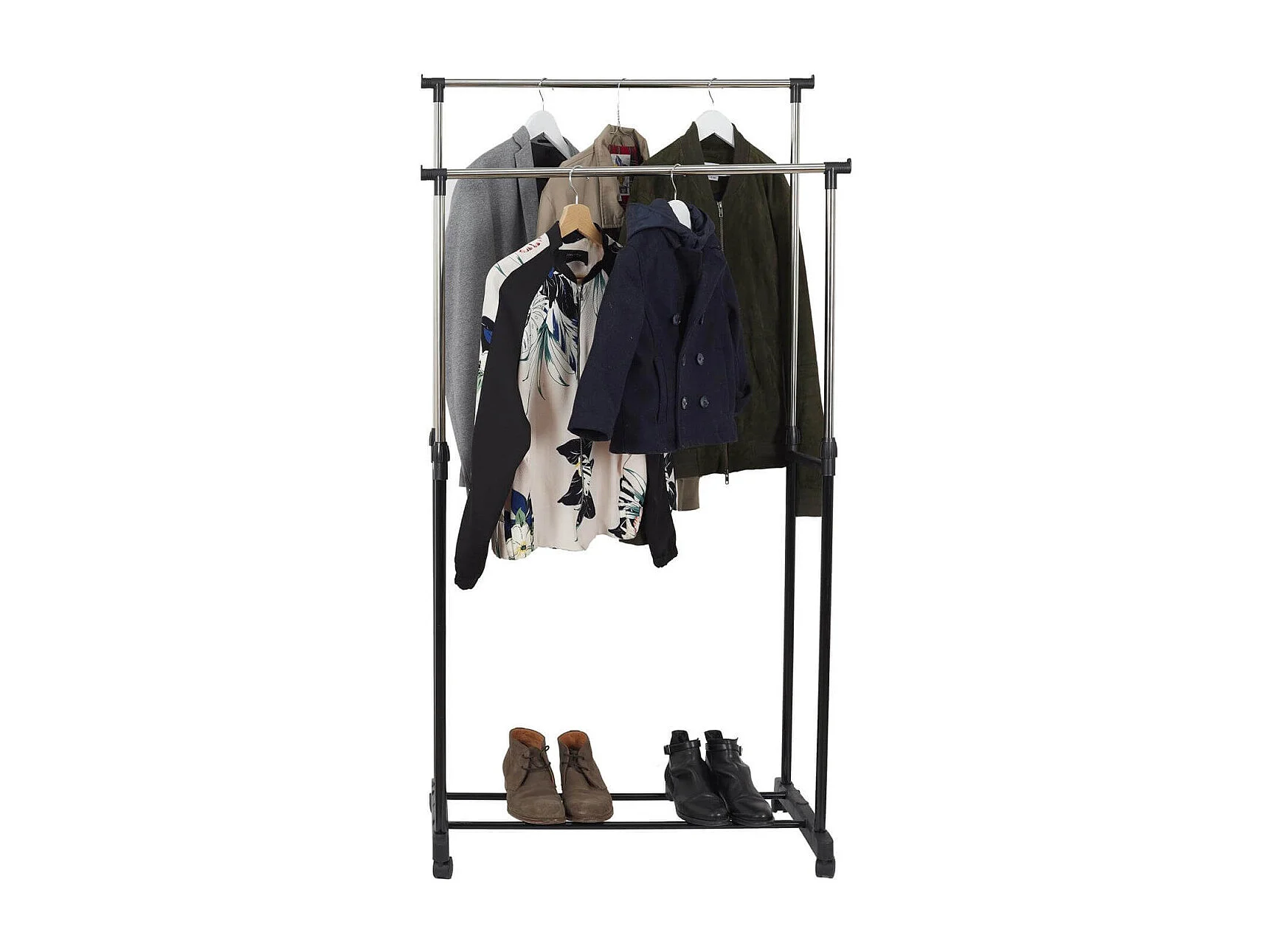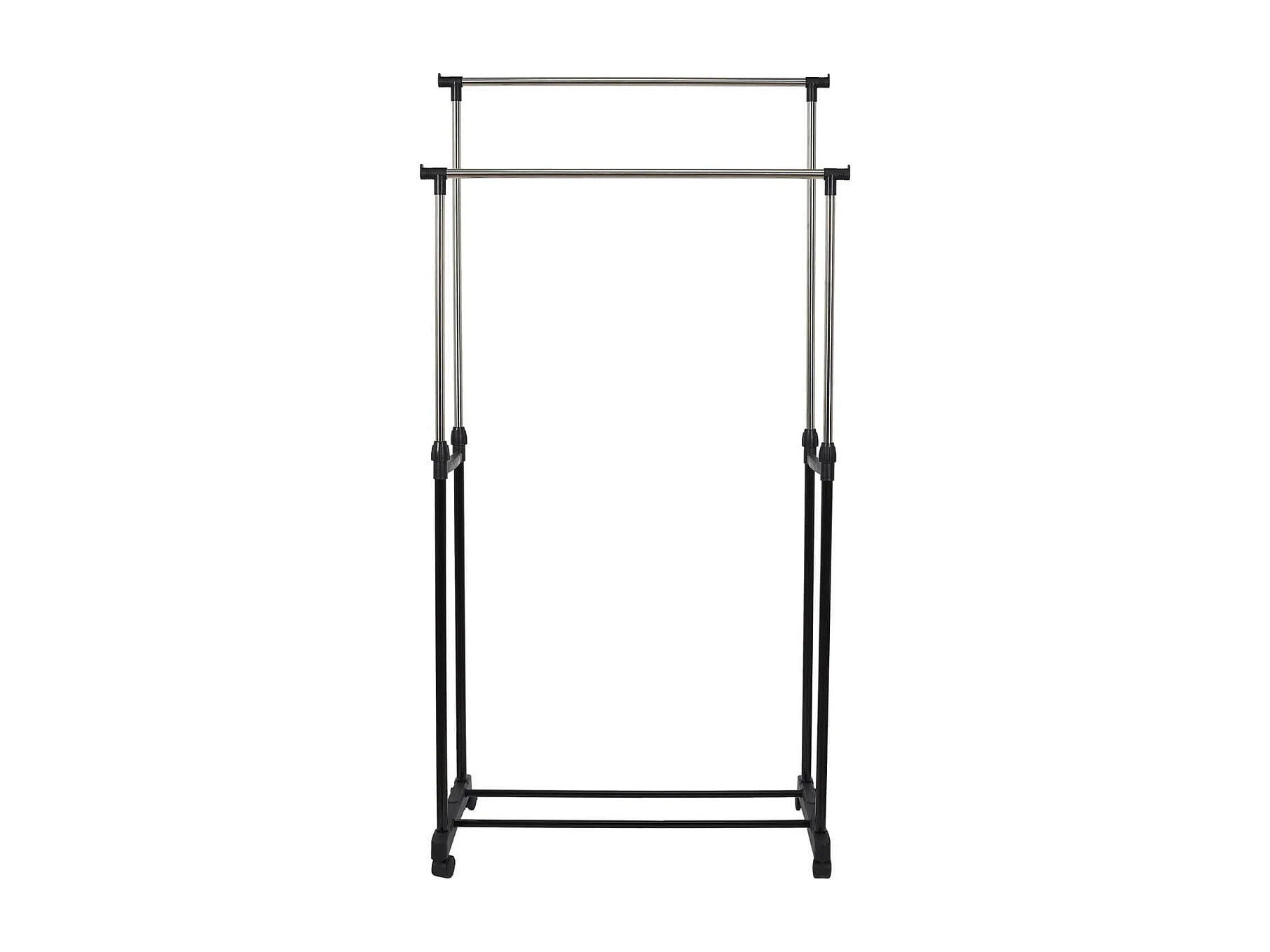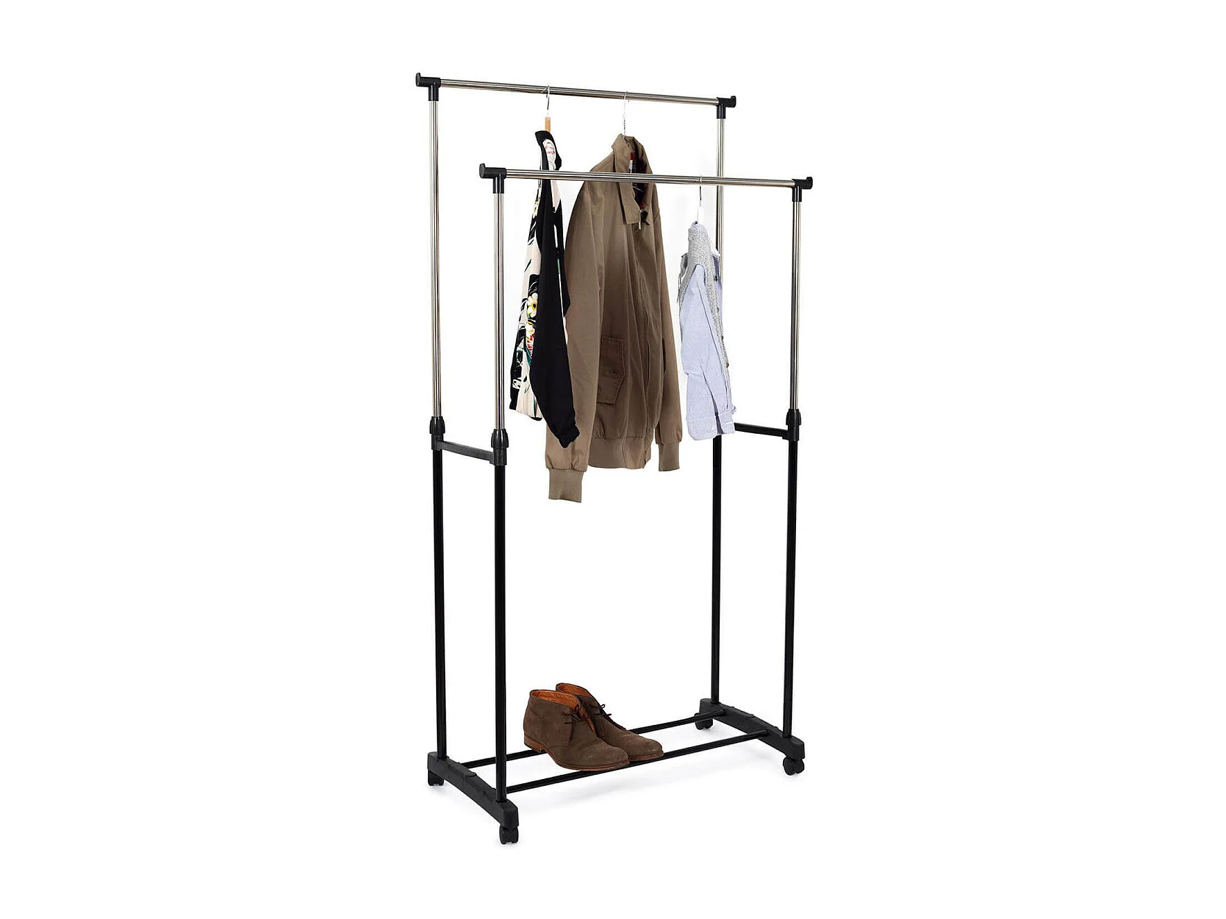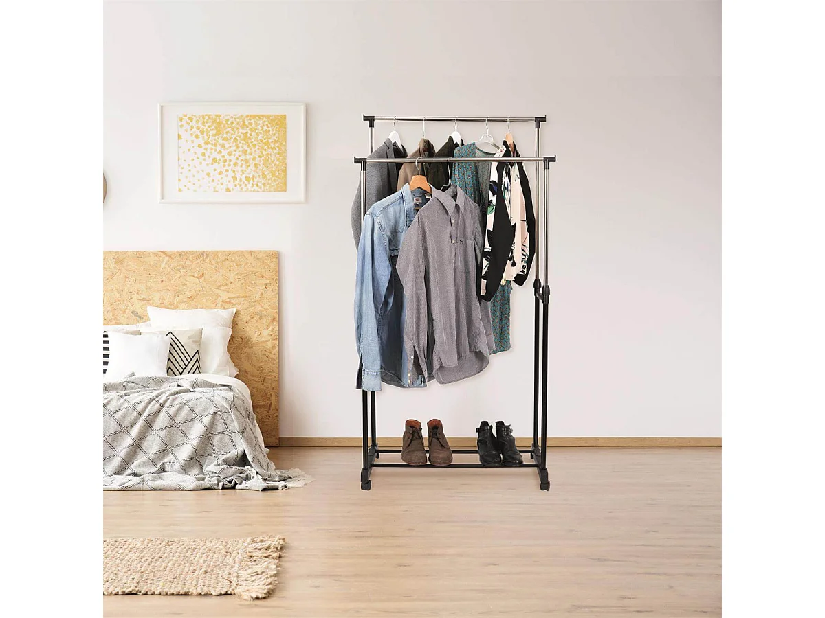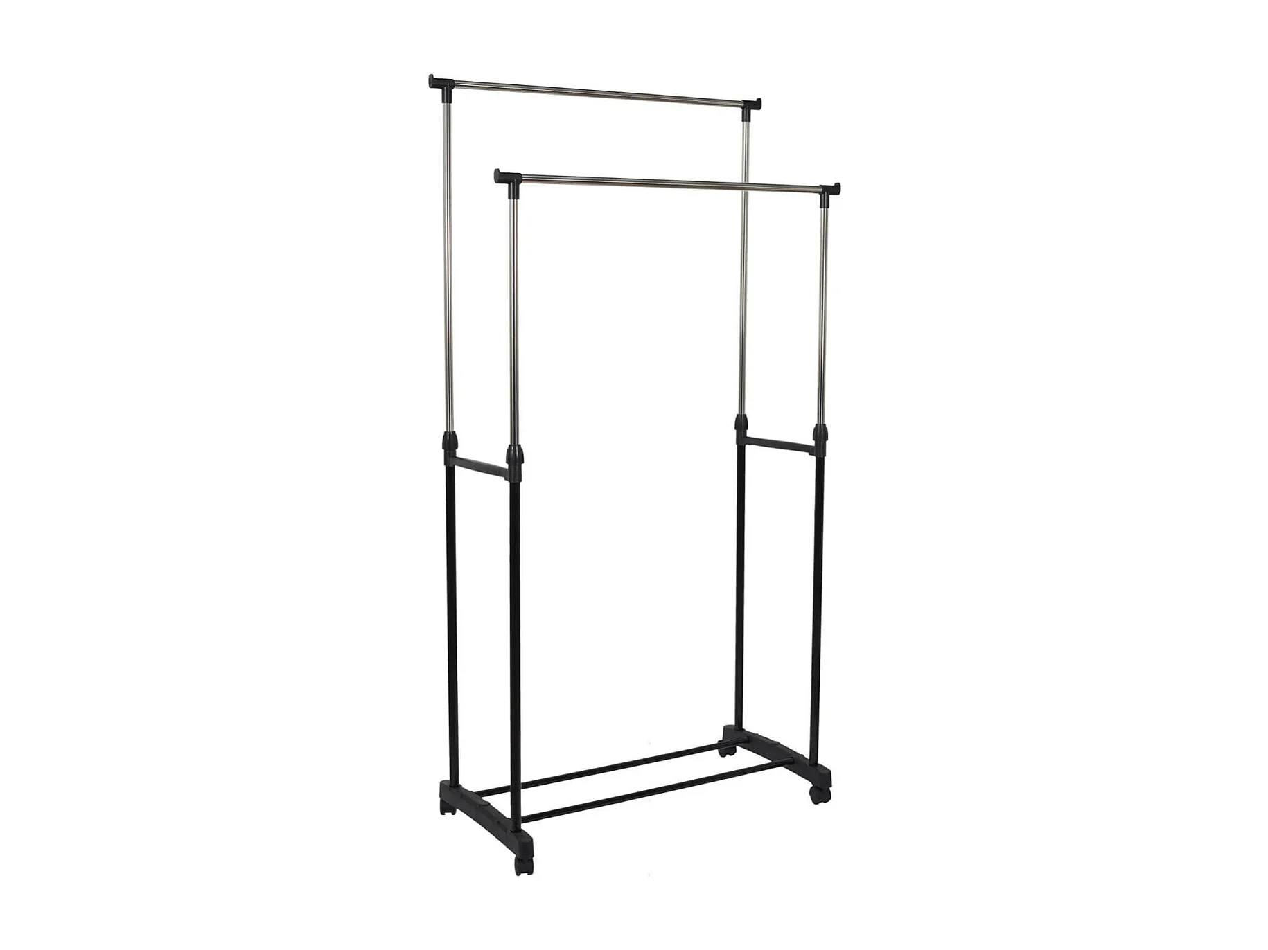 Portant Double sur Roulettes Hauteur Réglable Noir et Chrome - NEHO