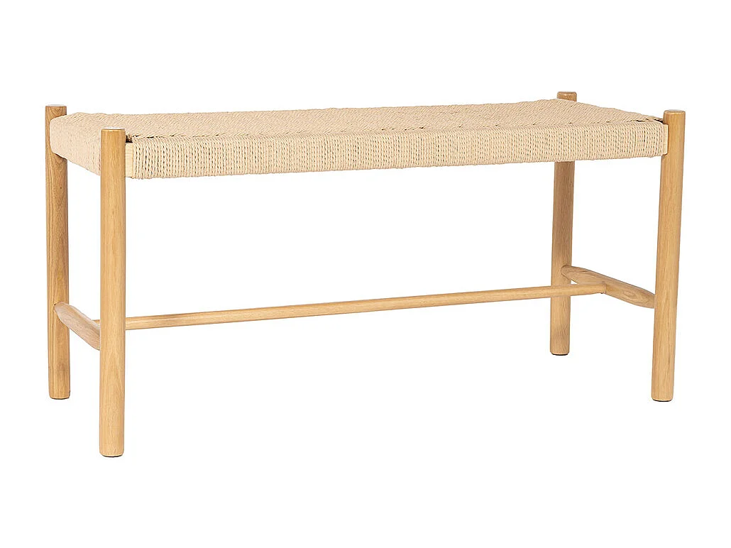 Victor - Banc en corde tressée et bois L90cm - Bois clair