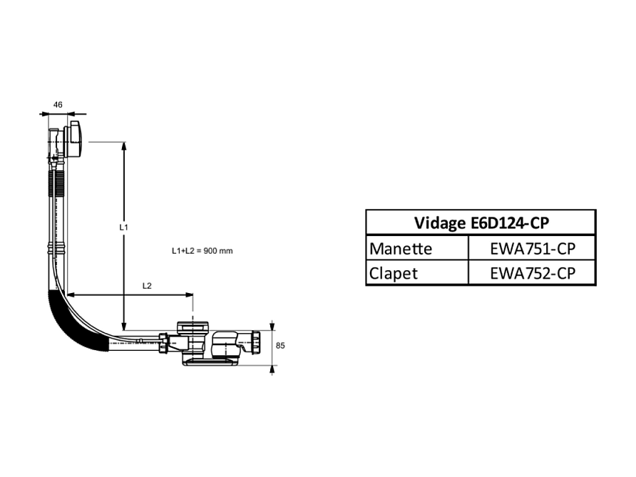 Vidage JACOB DELAFON avec siphon extra-plat, câble long et trop pleins réglable