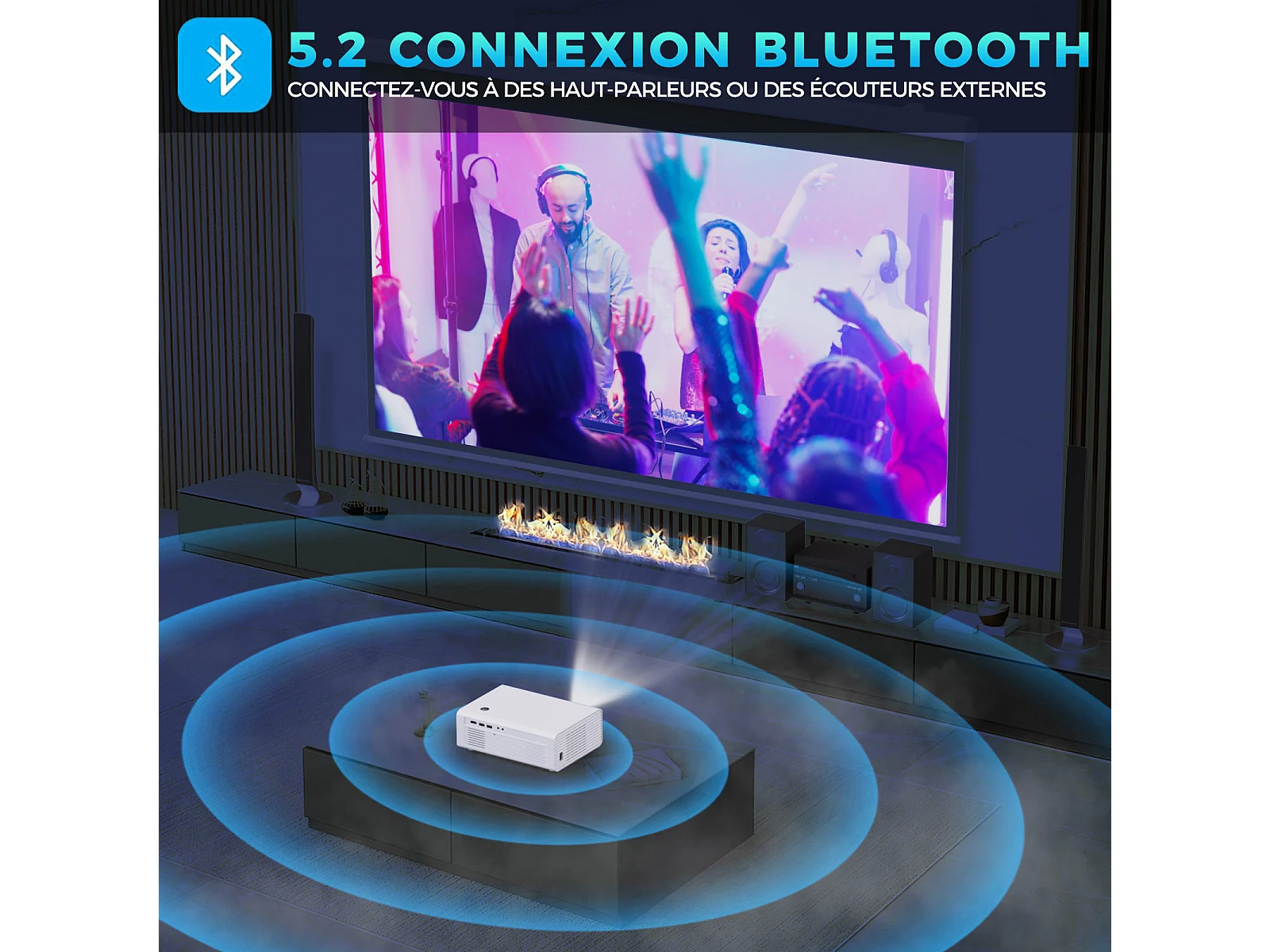 Videoprojecteur【Auto Focus】Rétroprojecteur 4K Supporté, 35000 Lumen UHD, WiFi 5G+2.4G, Screencasting iOS/Android/Windows