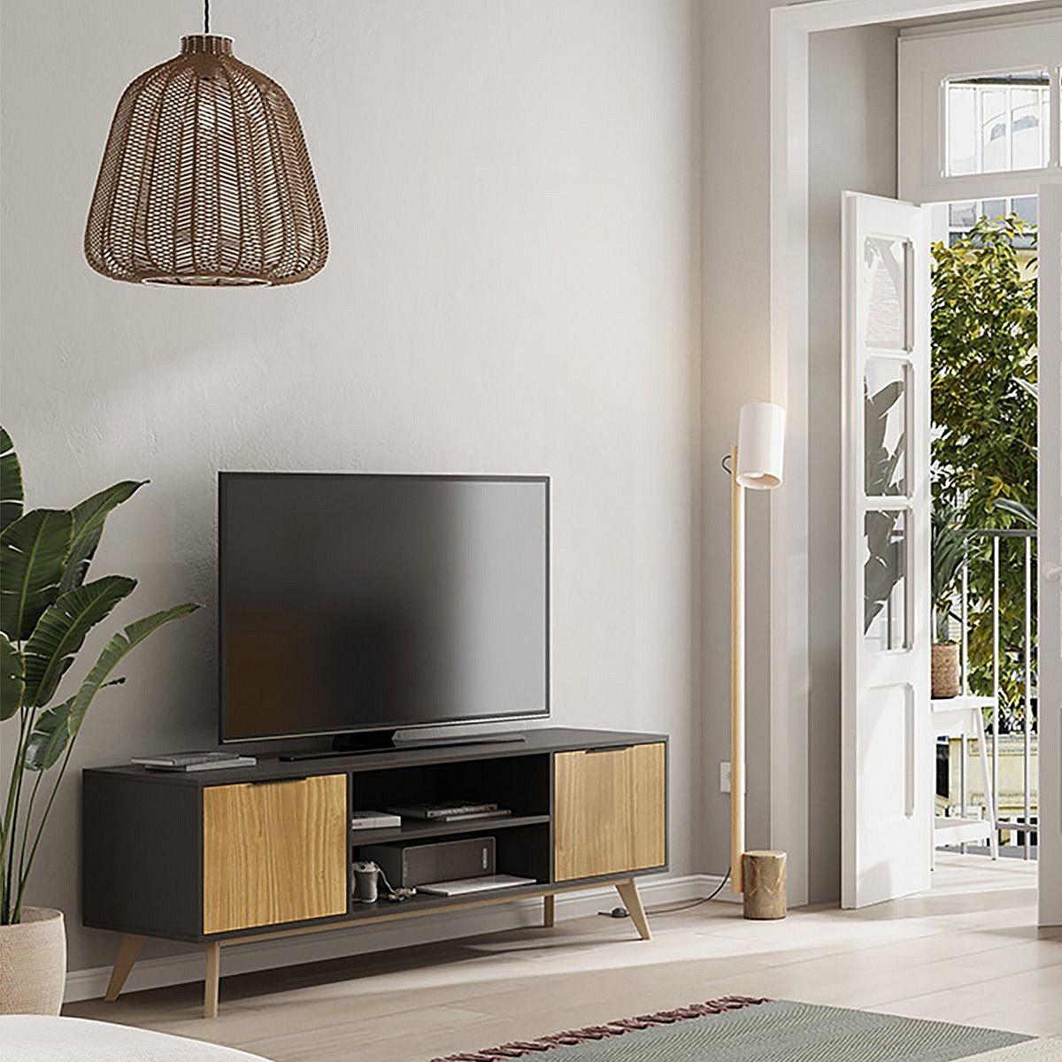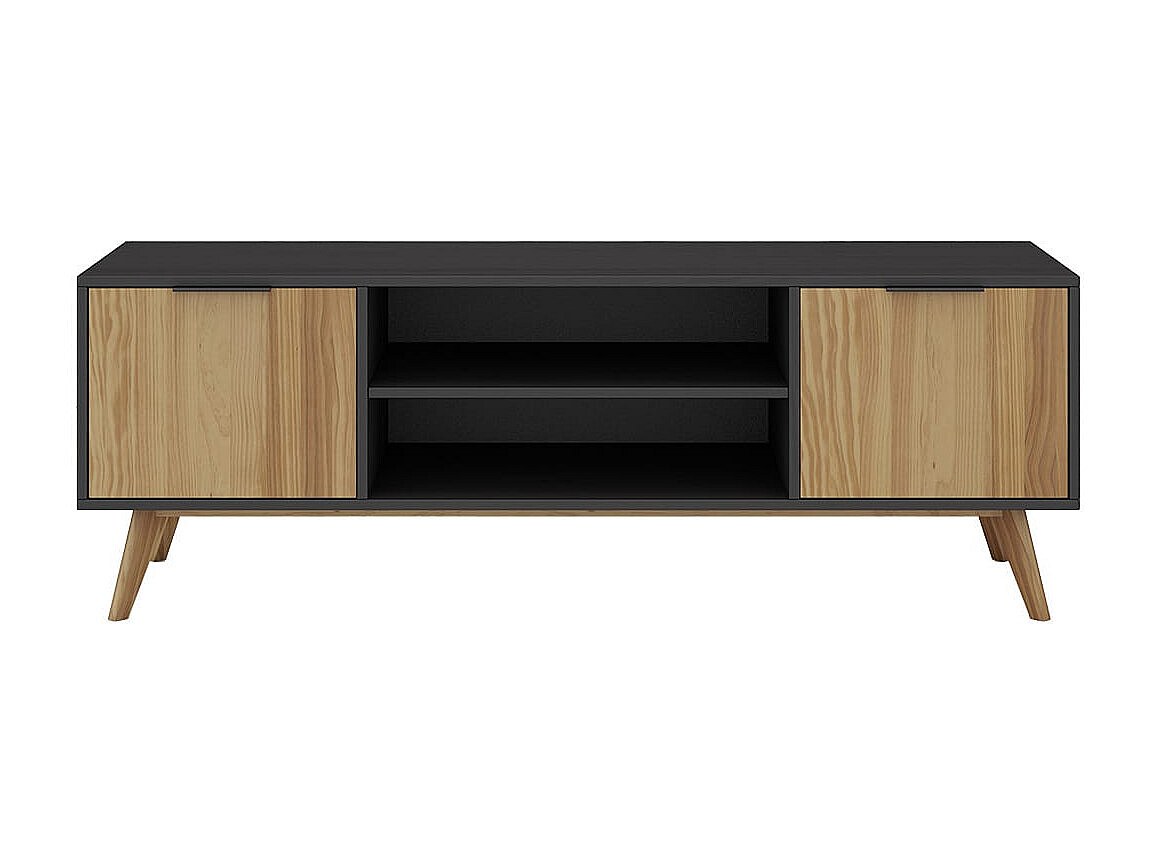 VIKOV - Meuble TV 140cm 2 Portes Scandinave en Pin Massif Ciré