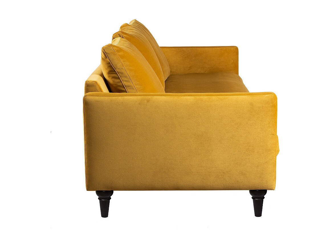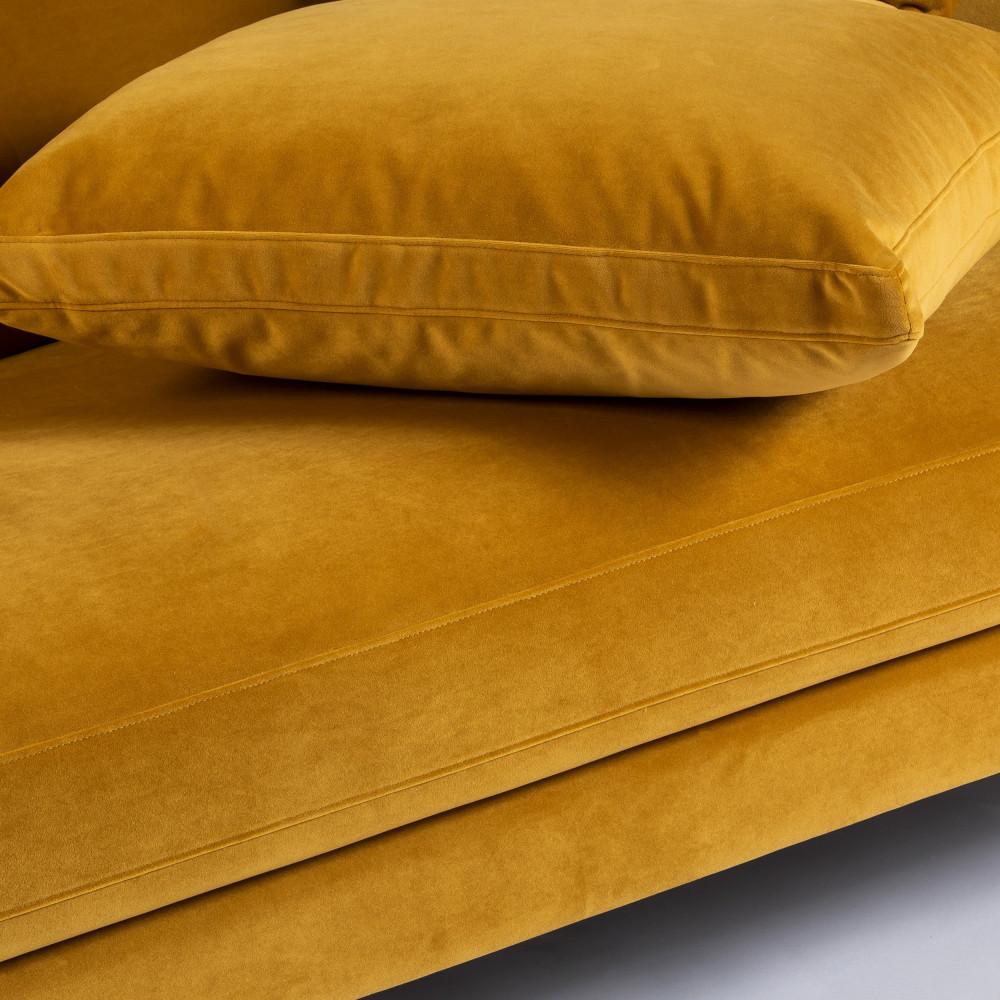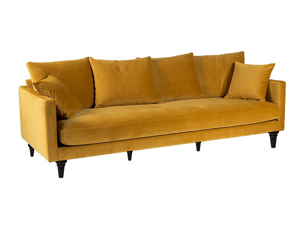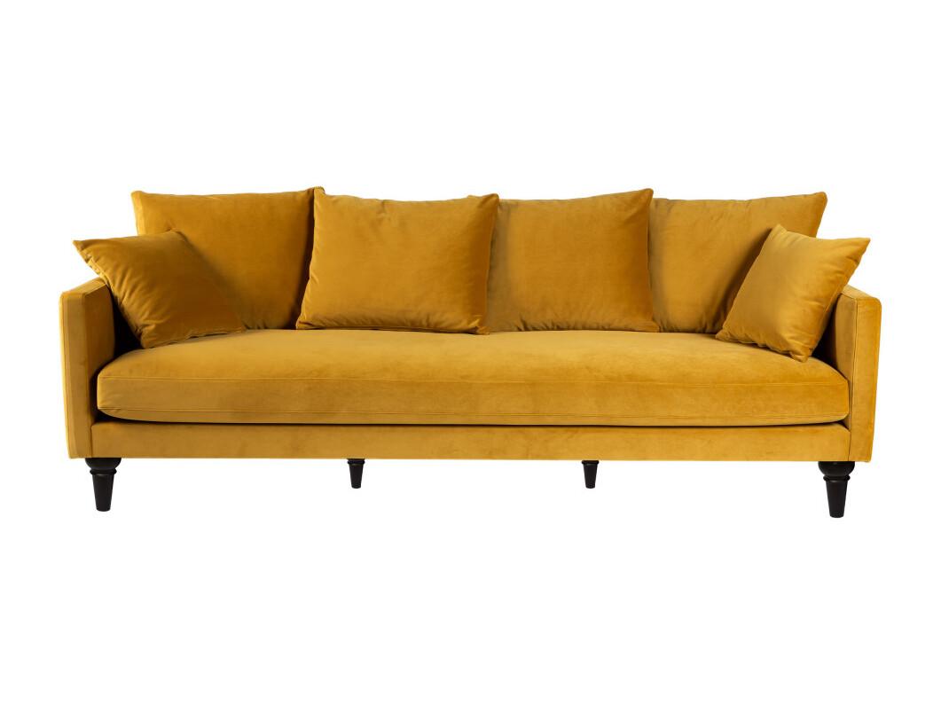 Villabon - Canapé 4 places en velours pieds tournés - Jaune moutarde