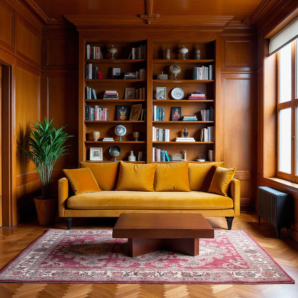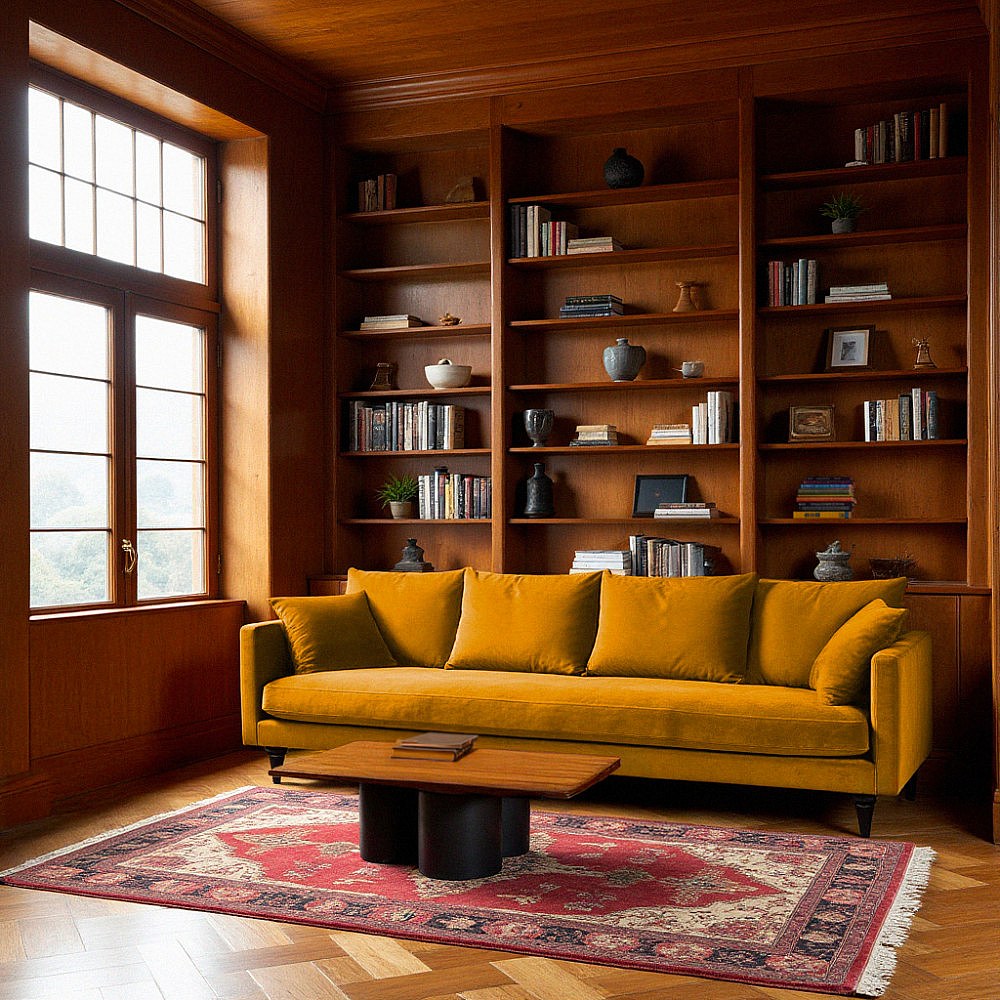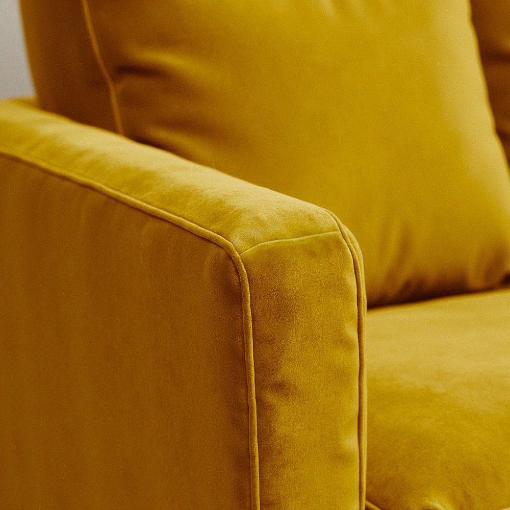 Villabon - Canapé 4 places en velours pieds tournés - Jaune moutarde