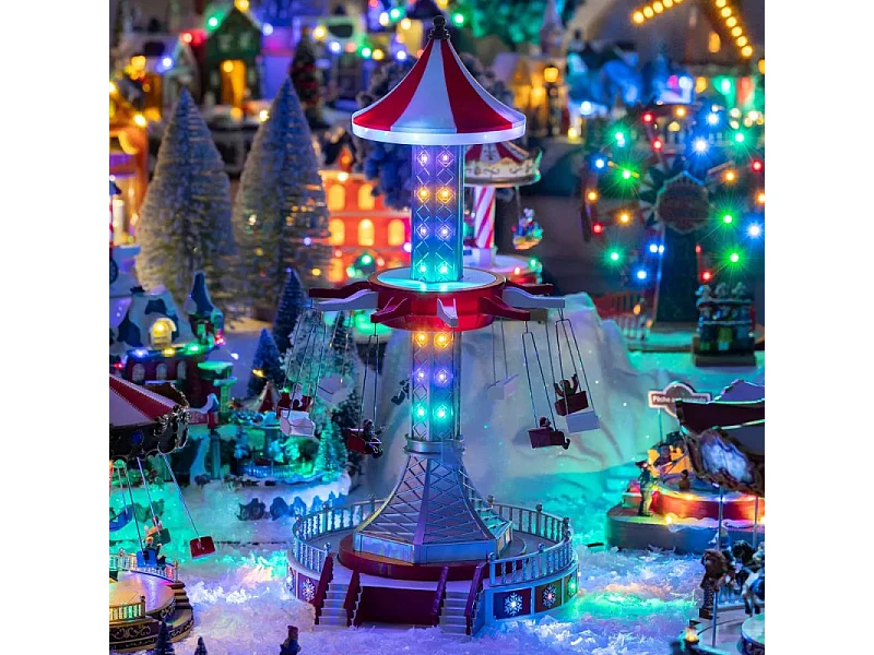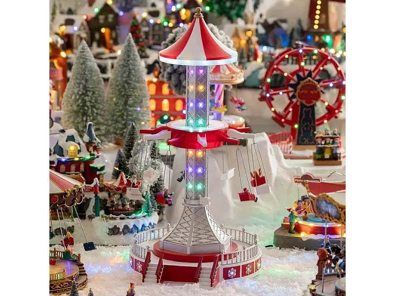 Village de Noël manège chaises volantes lumineux et animé