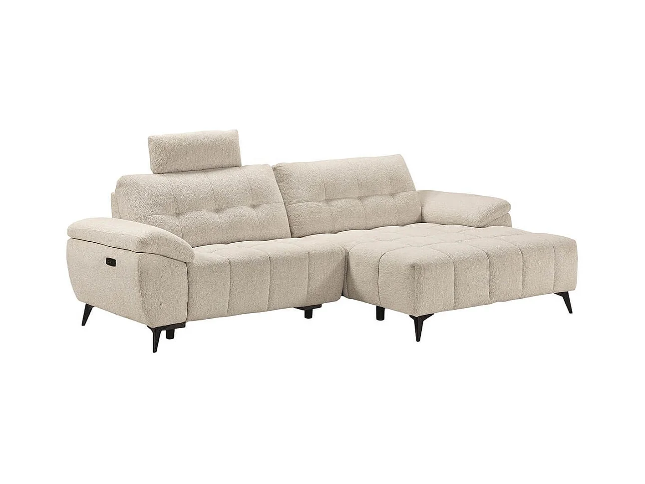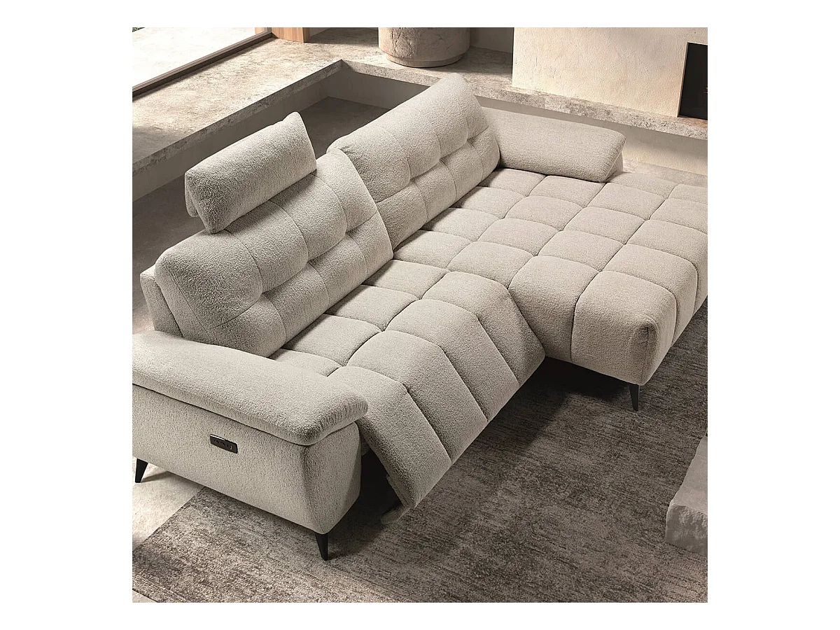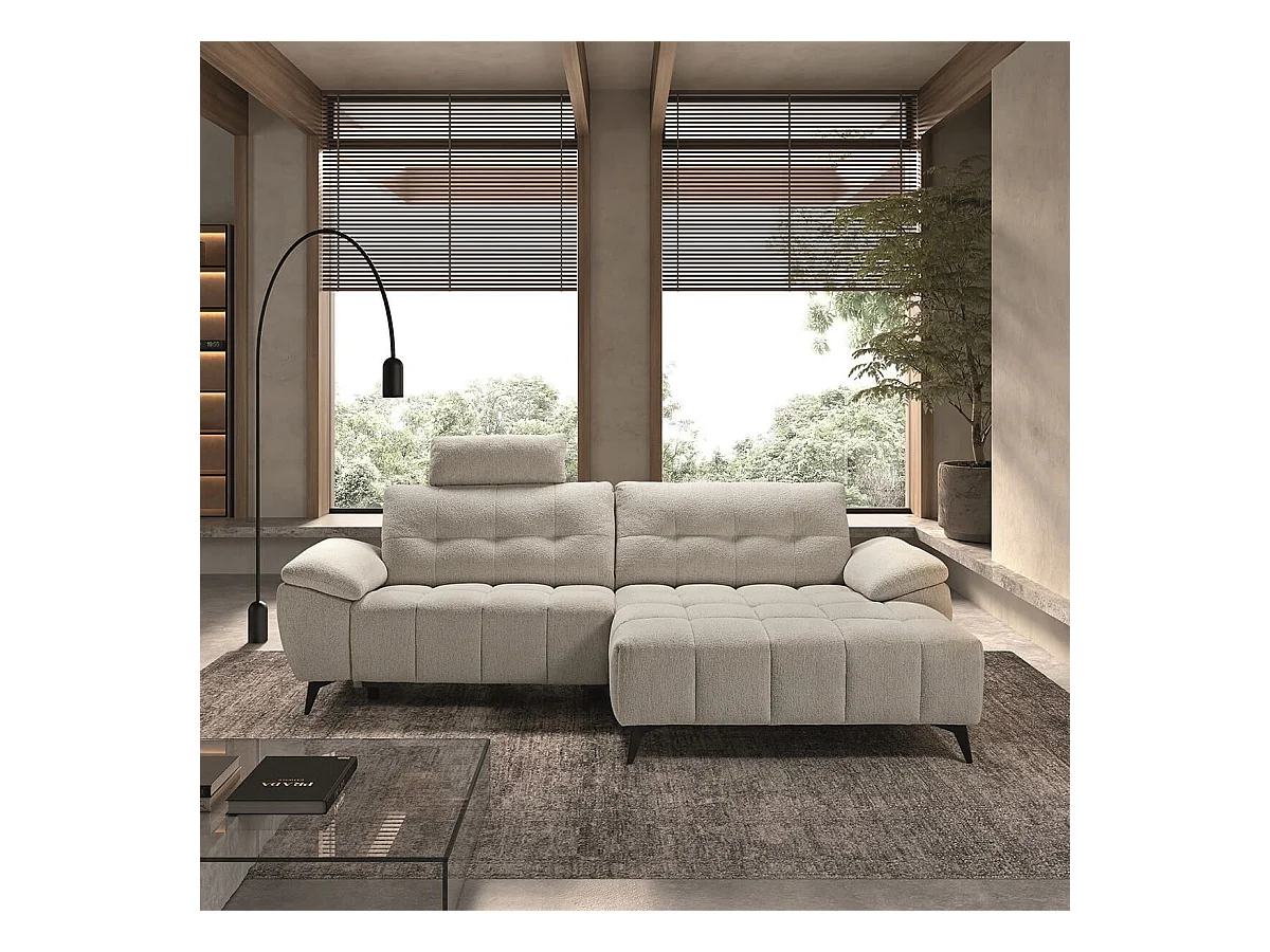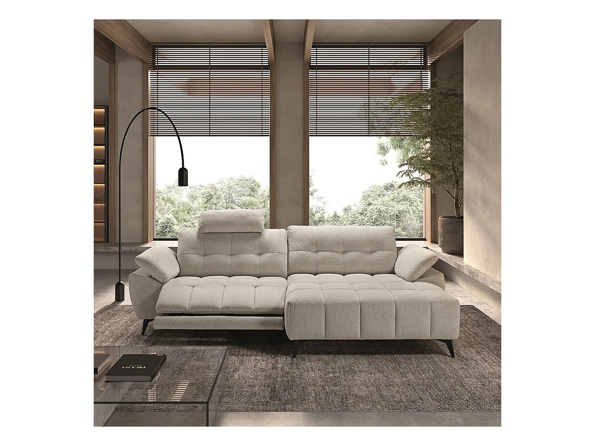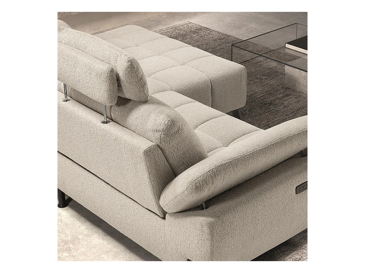 VILLALBA - Canapé Relax Méridienne droite Têtières Réglables Tissu Bubble Beige