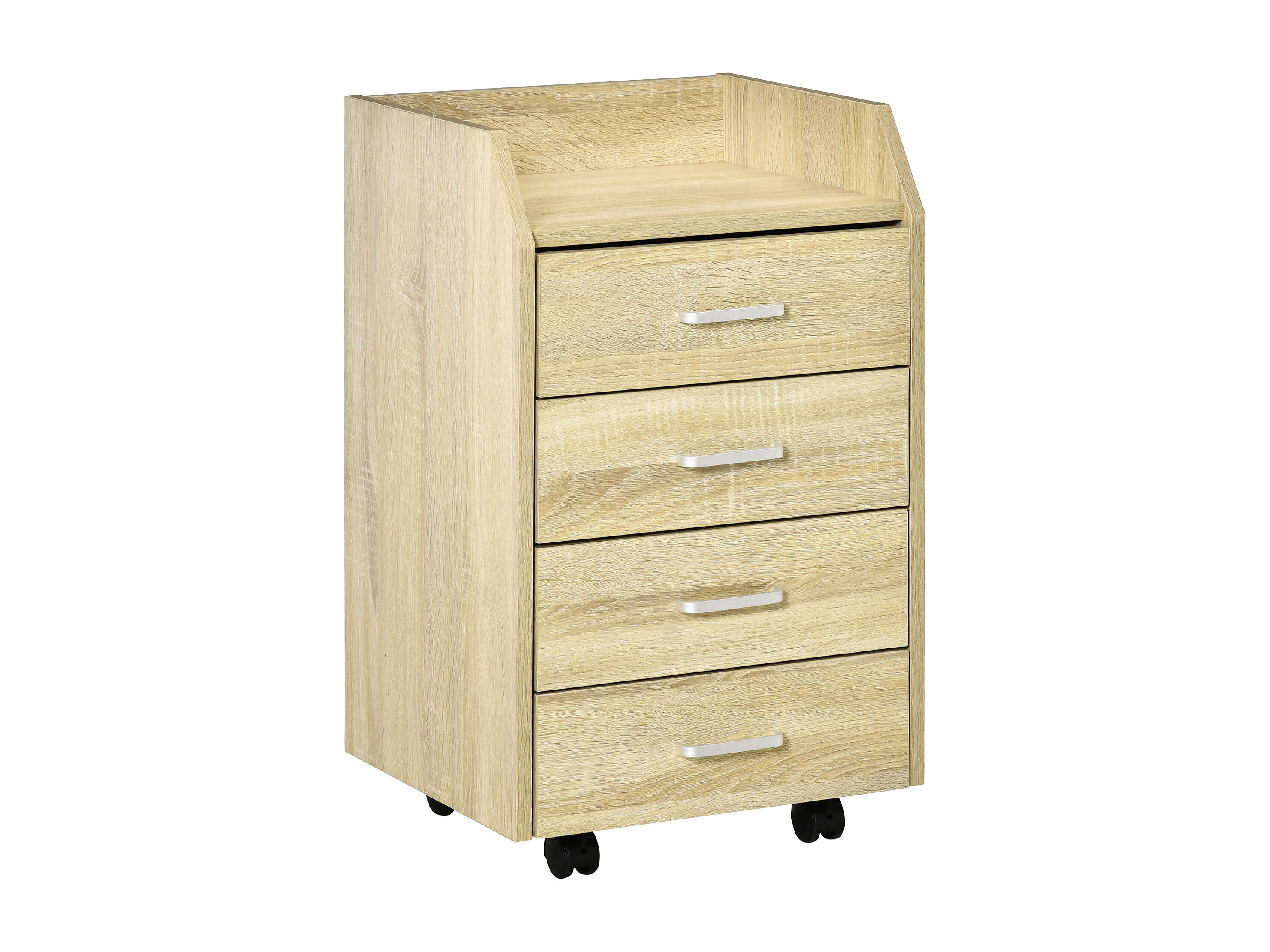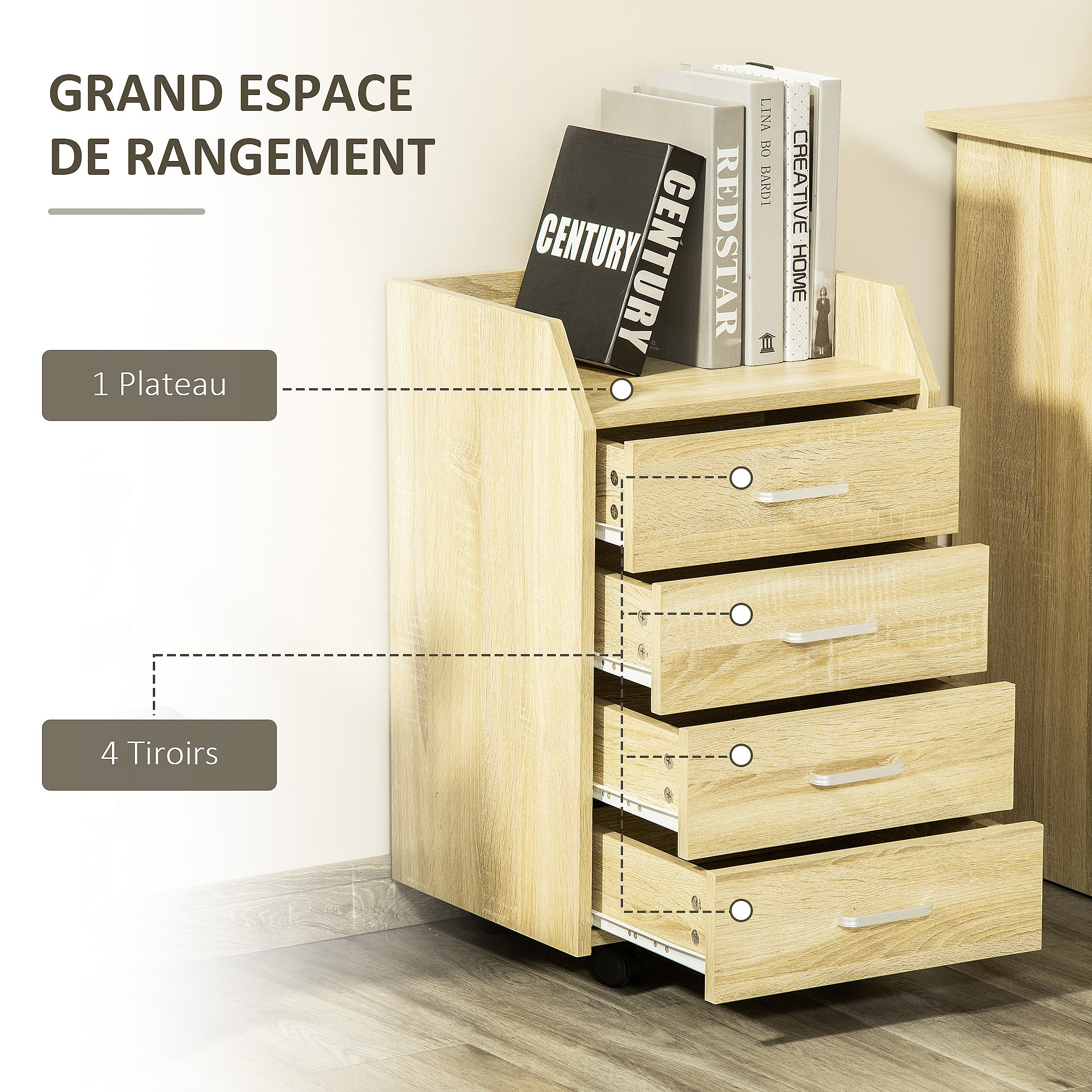 Vinsetto Caisson de bureau rangement bureau sur roulettes 4 tiroirs coulissants plateau à rebord MDF panneaux particules aspect chêne clair
