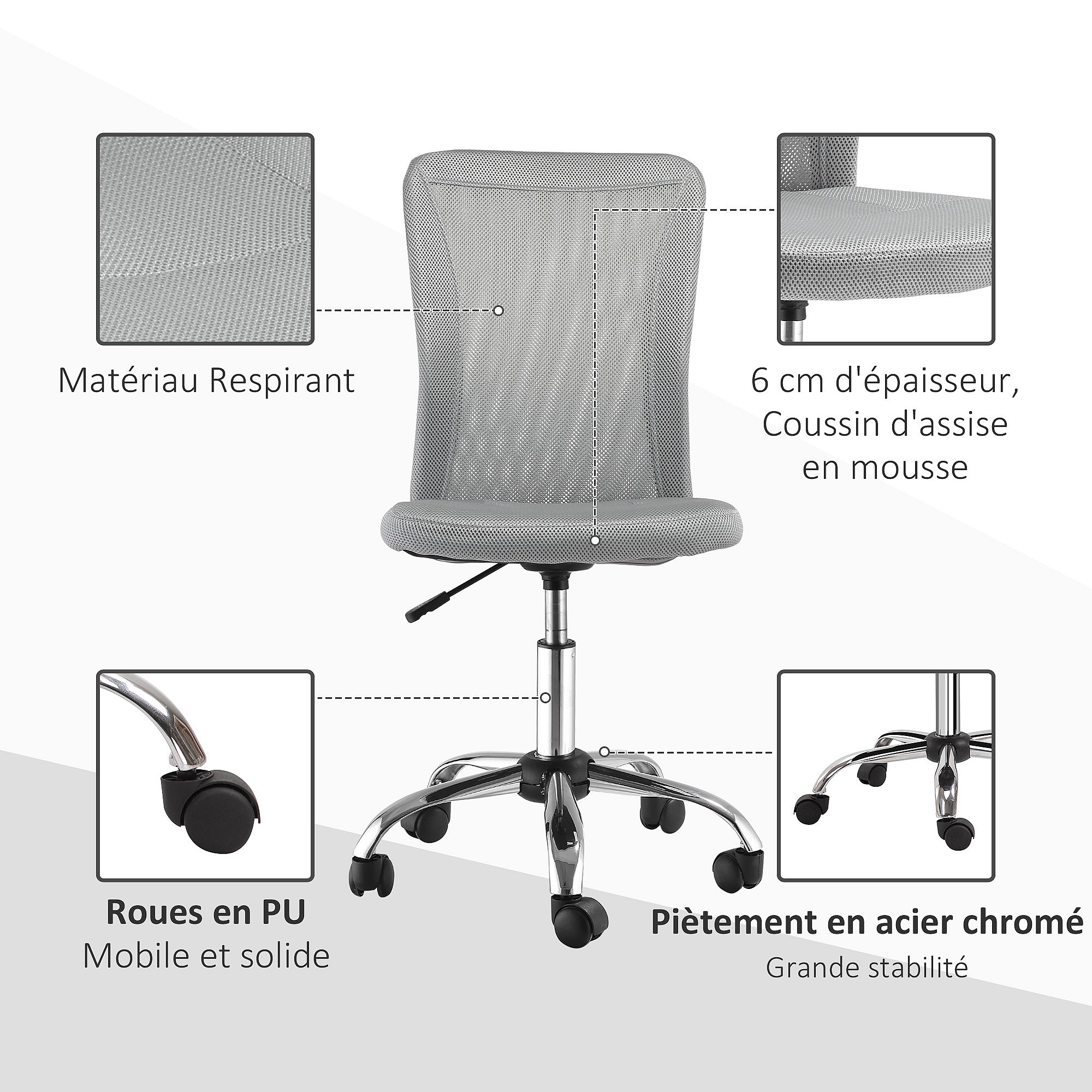 Vinsetto Chaise de bureau ergonomique hauteur réglable piètement chromé pivotant 360° revêtement maille gris