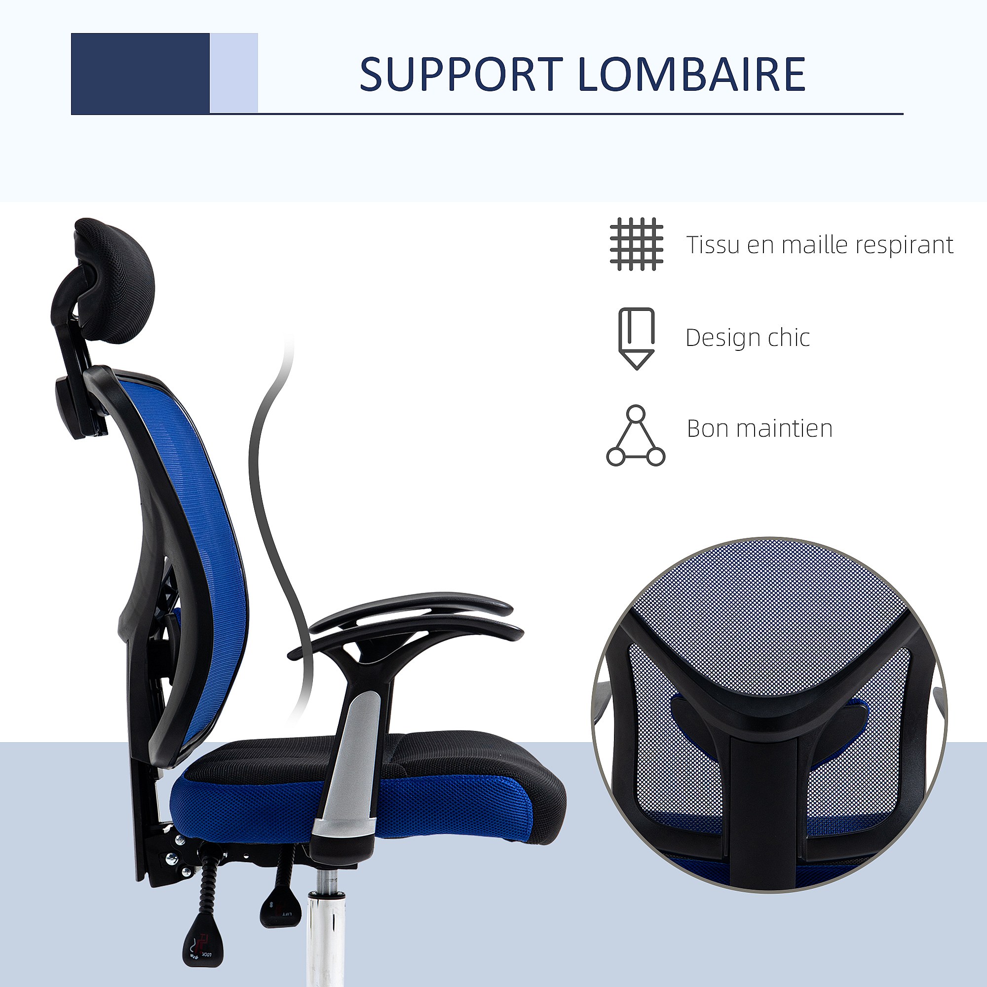 Vinsetto Chaise de bureau manager grand confort réglable dossier inclinable piètement chromé tissu maille polyester bleu noir