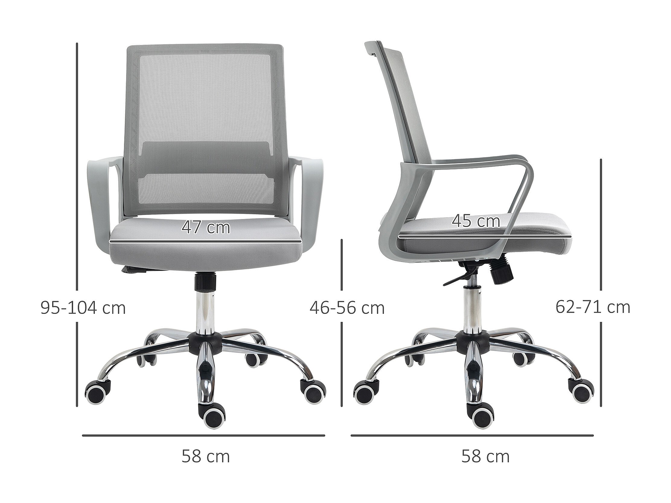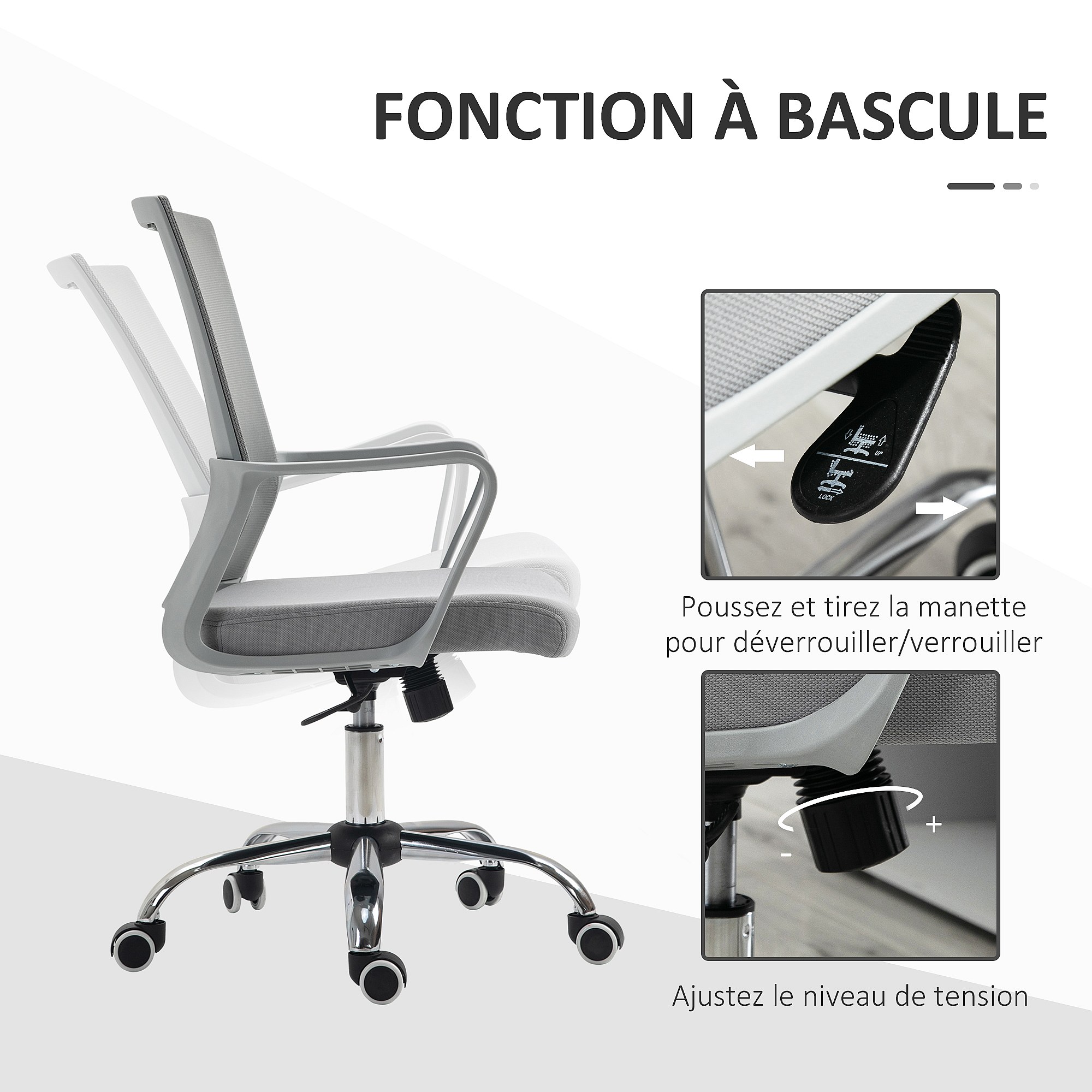 Vinsetto Fauteuil chaise de bureau ergonomique hauteur réglable pivotante 360° revêtement maille gris