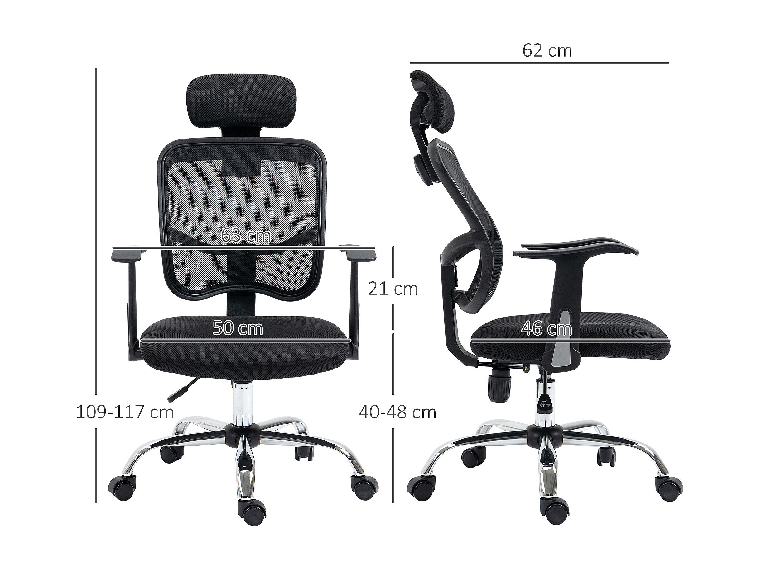 Vinsetto Fauteuil de bureau manager grand confort chaise de bureau réglable dossier inclinable piètement chromé tissu maille polyester noir