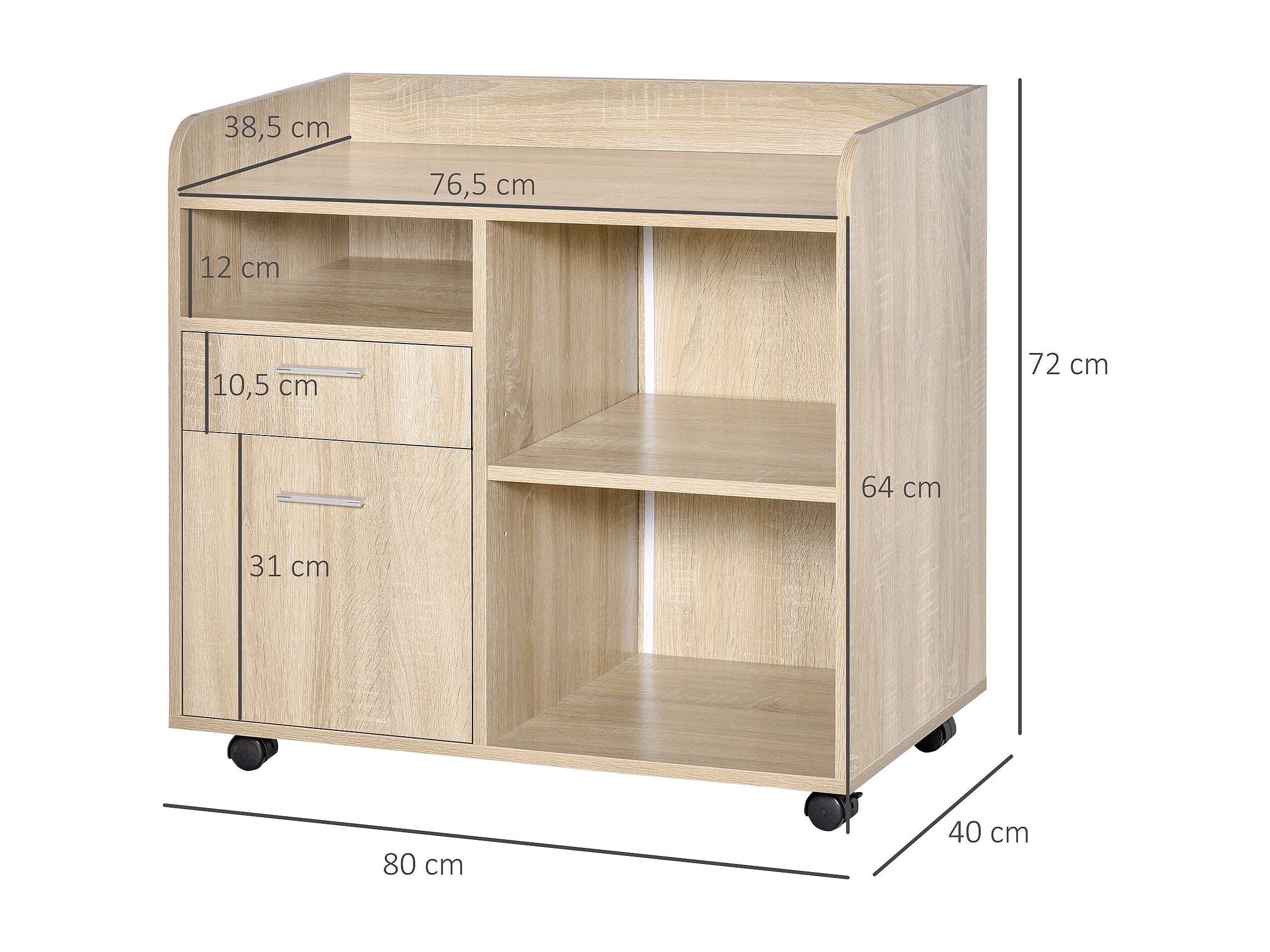 Vinsetto Support d'imprimante - caisson organiseur bureau - 3 niches, 2 tiroirs, grand plateau - panneaux particules chêne clair