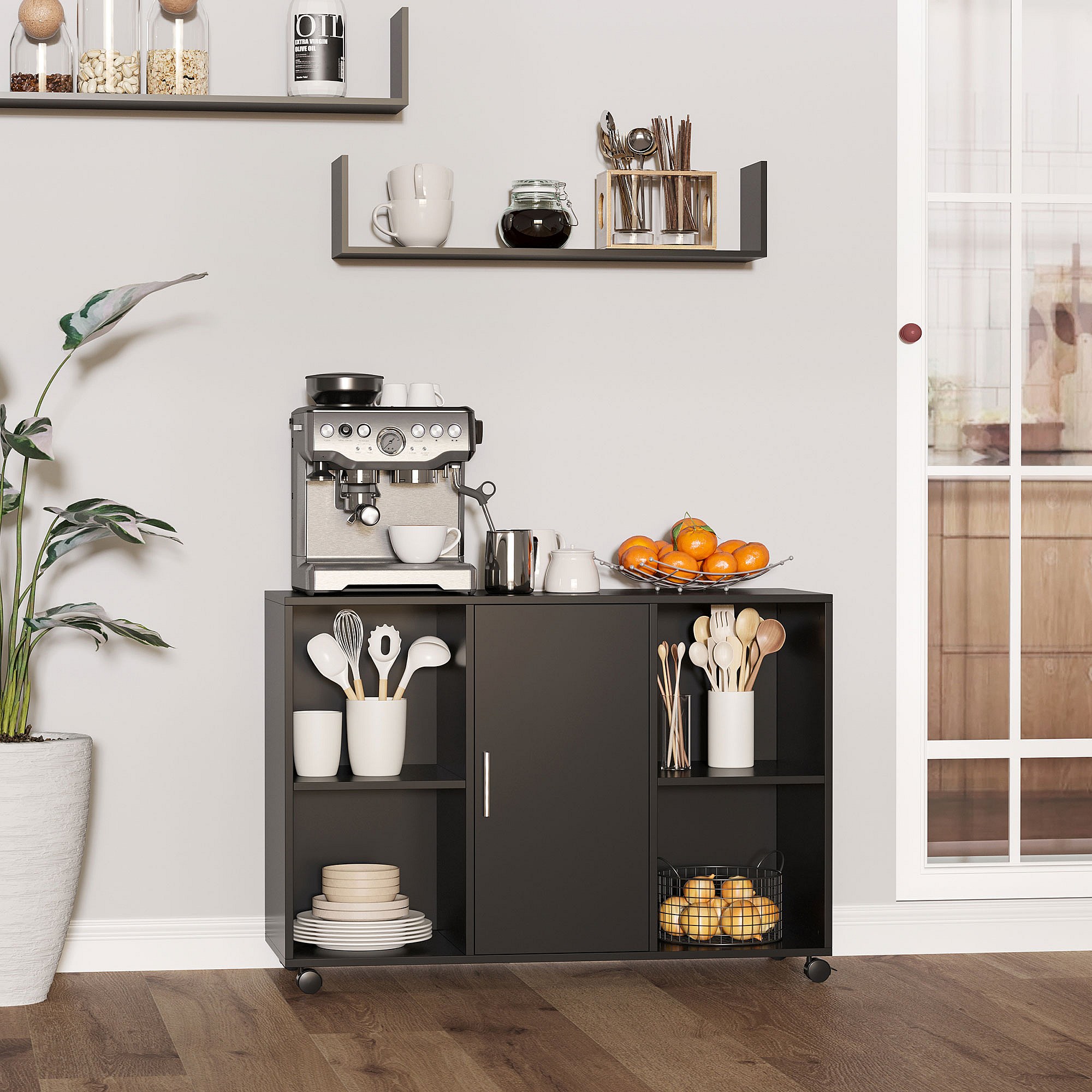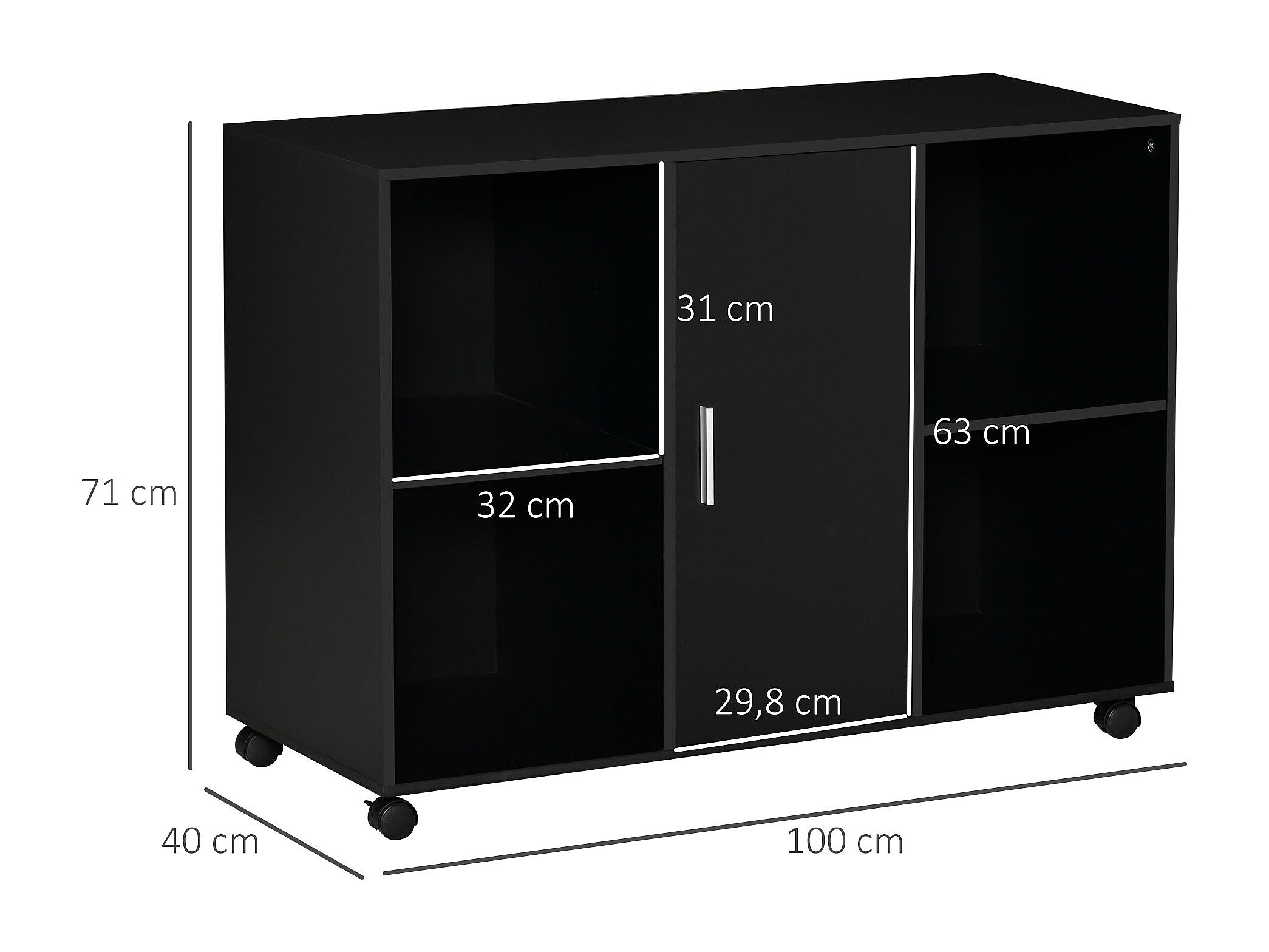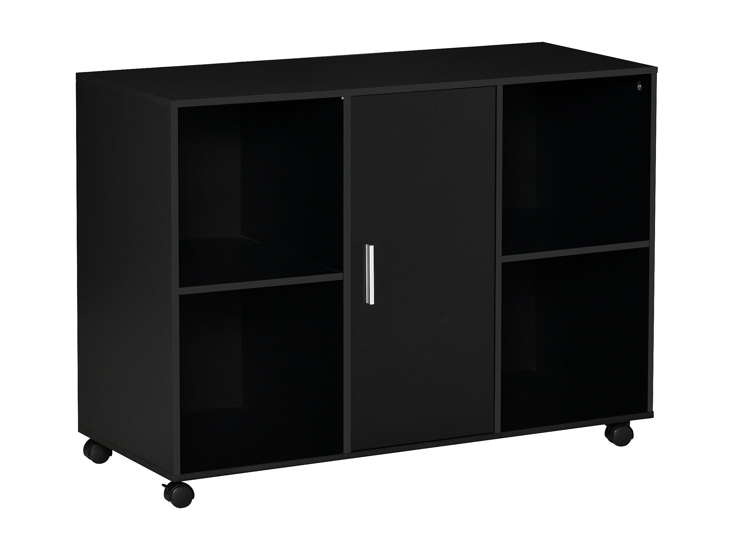 Vinsetto Support d'imprimante - caisson organiseur bureau - 4 niches, placard porte, grand plateau - panneaux particules noir