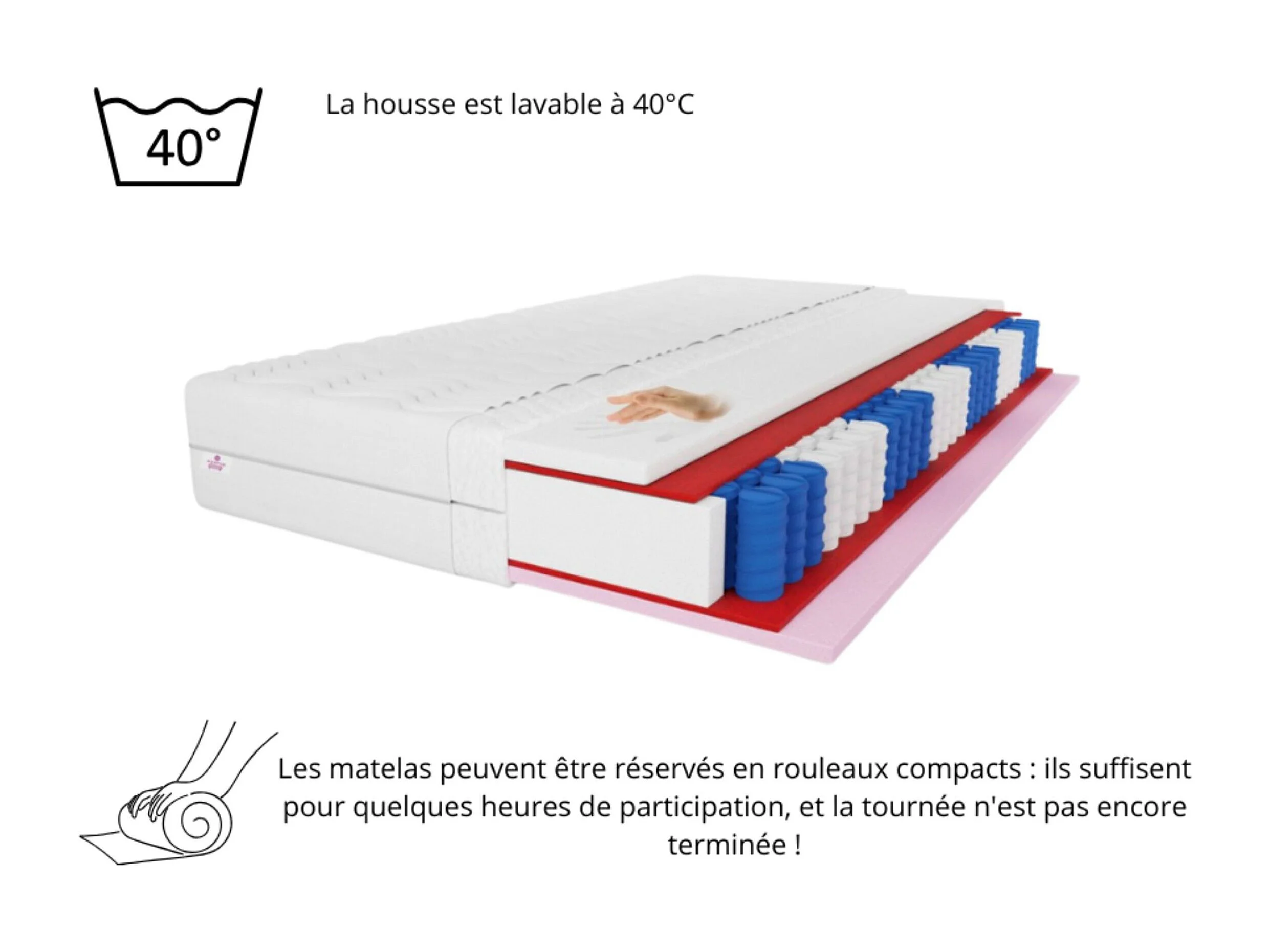 VISCO - Matelas à ressorts ensachés 7 zones Cailano, 100x200 cm, hauteur du matelas env. 25 cm, degré de fermeté H3, couleur : aloe vera, housse incluse