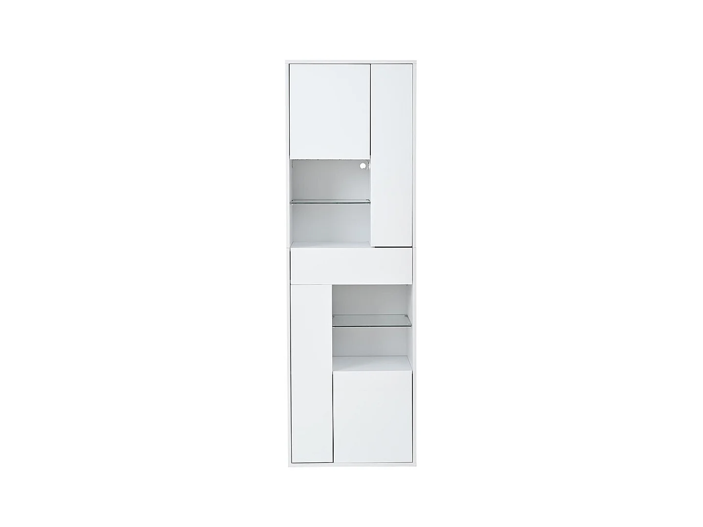 Vitrine armoire haute 1 tiroir 4 placards verre LED brillante design buffet salon présentoir blanc