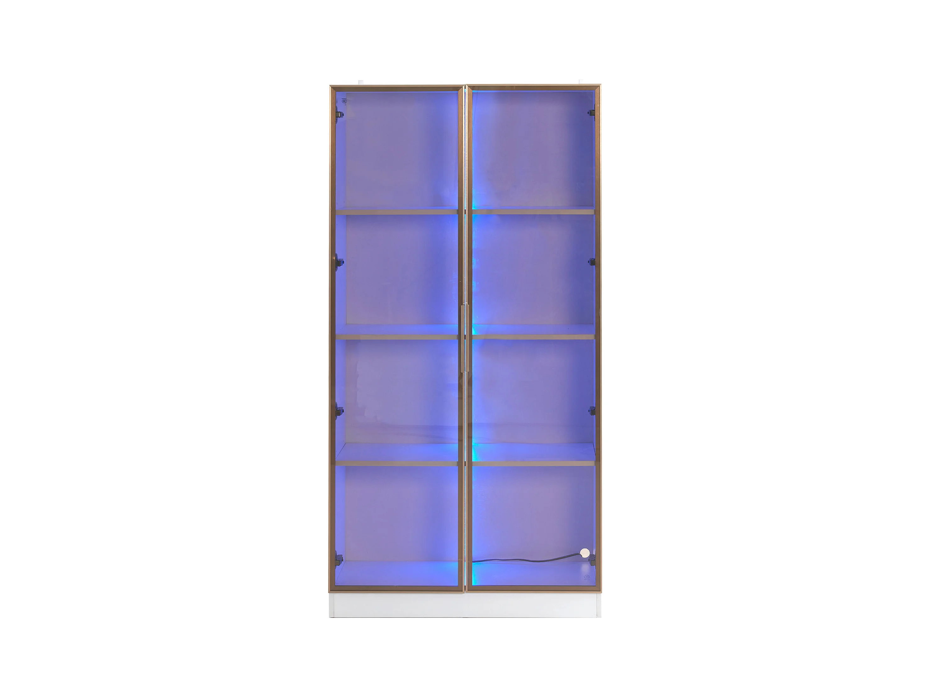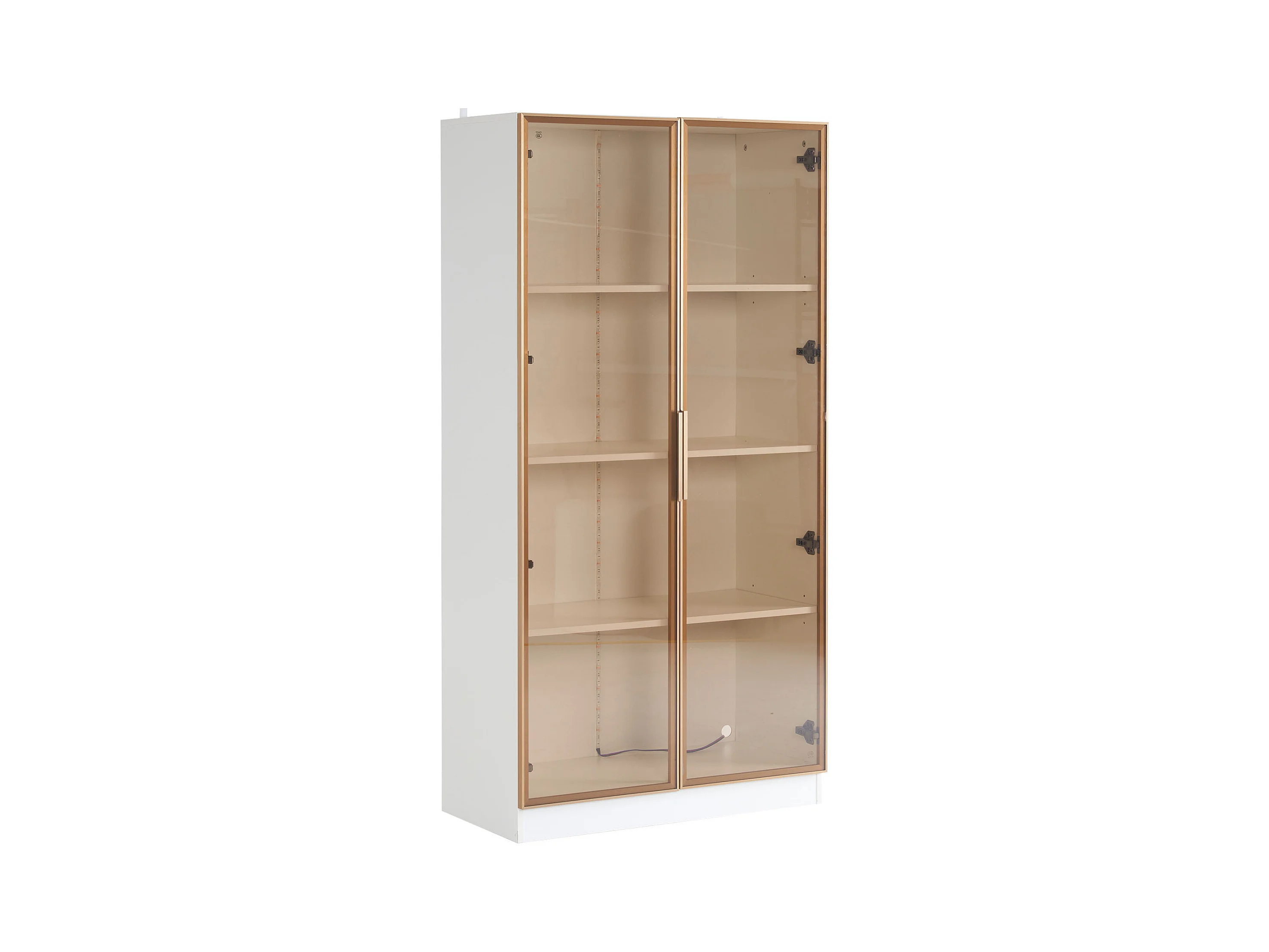 Vitrine blanc avec 2 portes en verre brun et 3 tablettes, LED inclus - 80x40x160cm