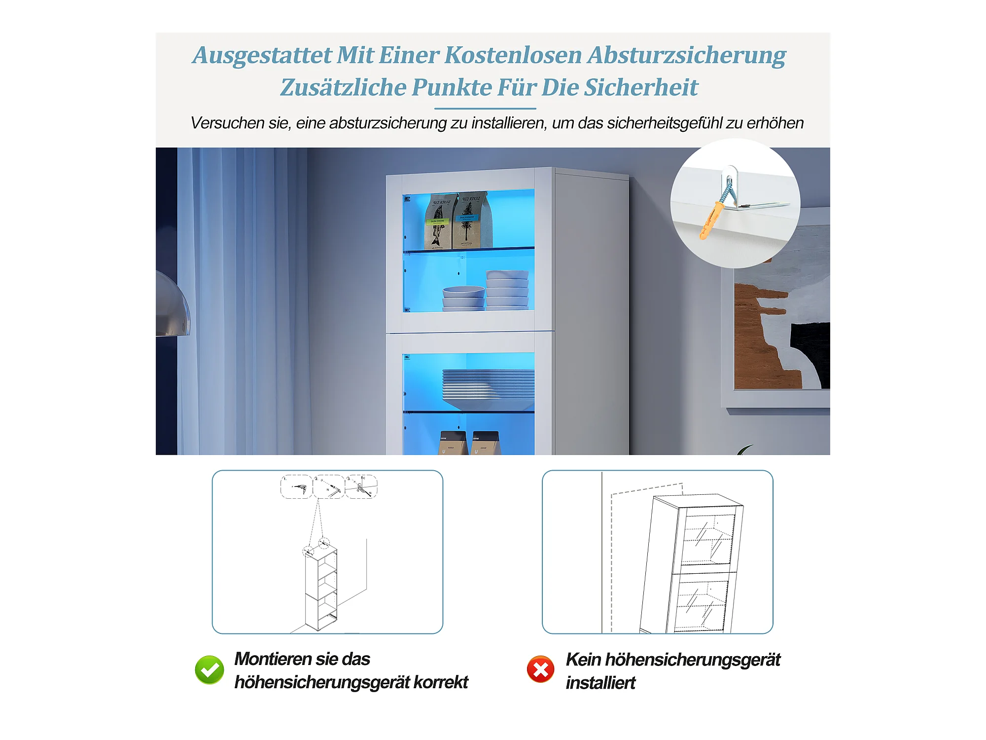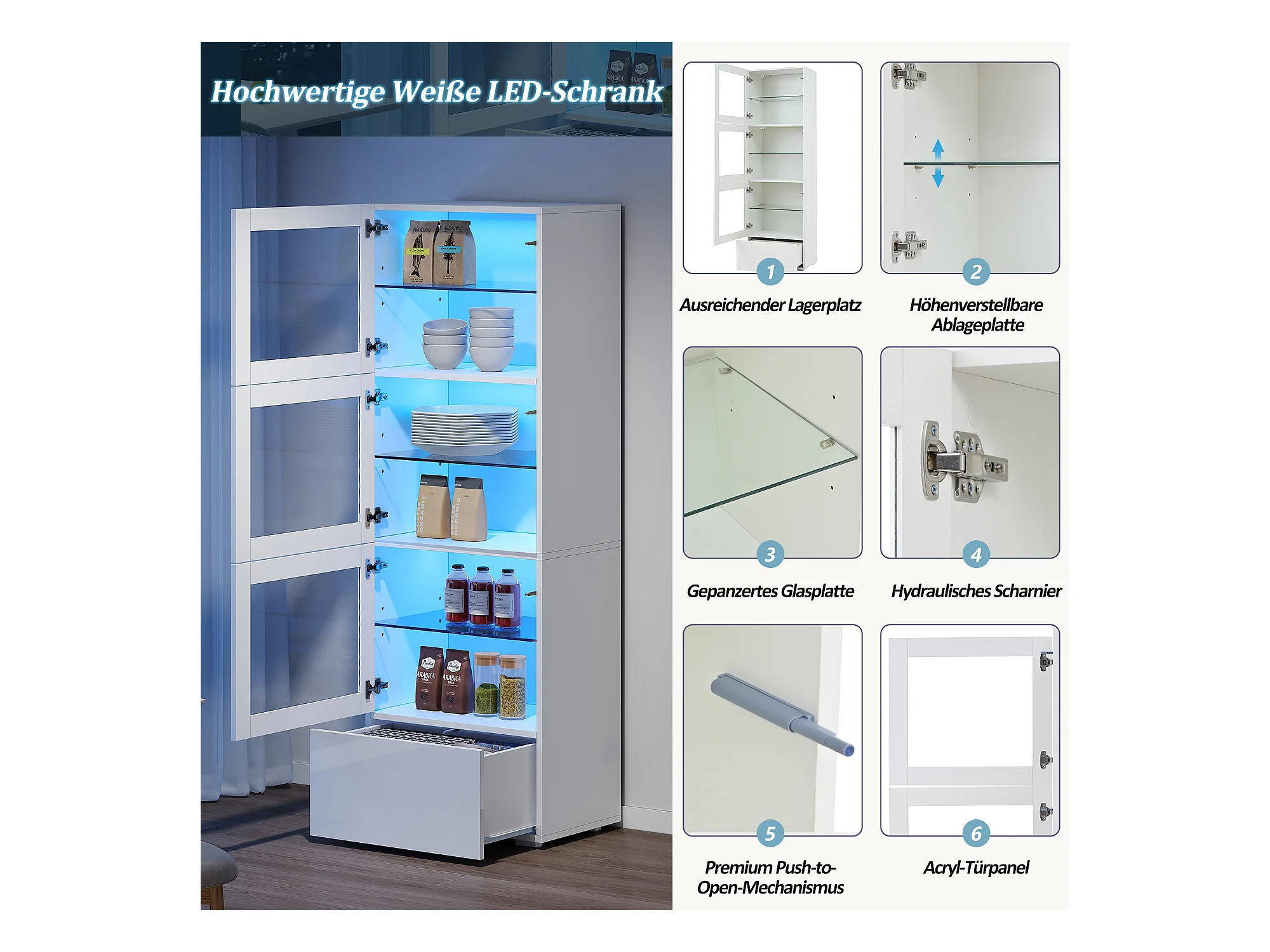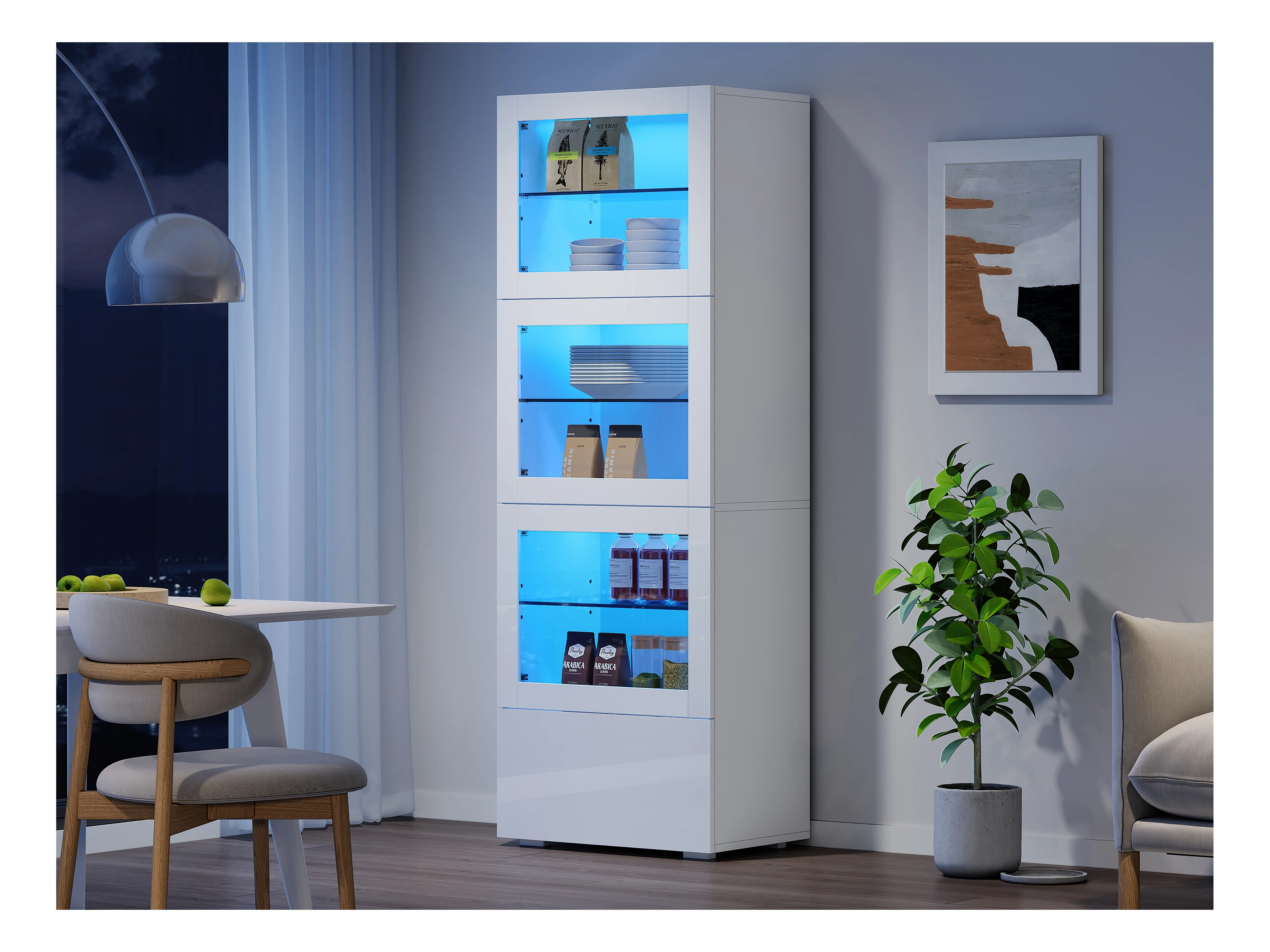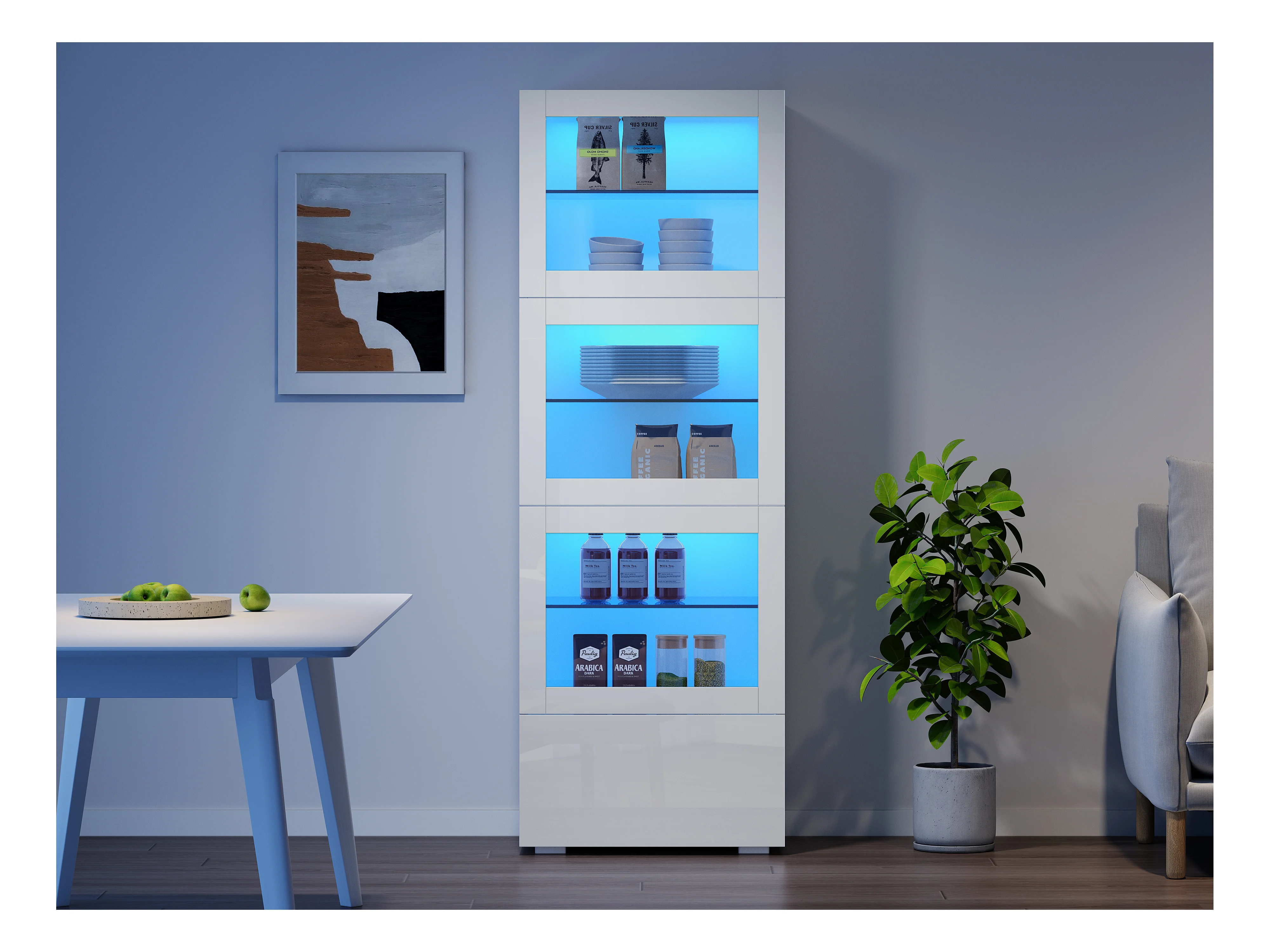 Vitrine brillant avec Leds + 3 étagères en verre + 1 tiroir - 60 x 40 x 173 cm - MDF + verre - blanc