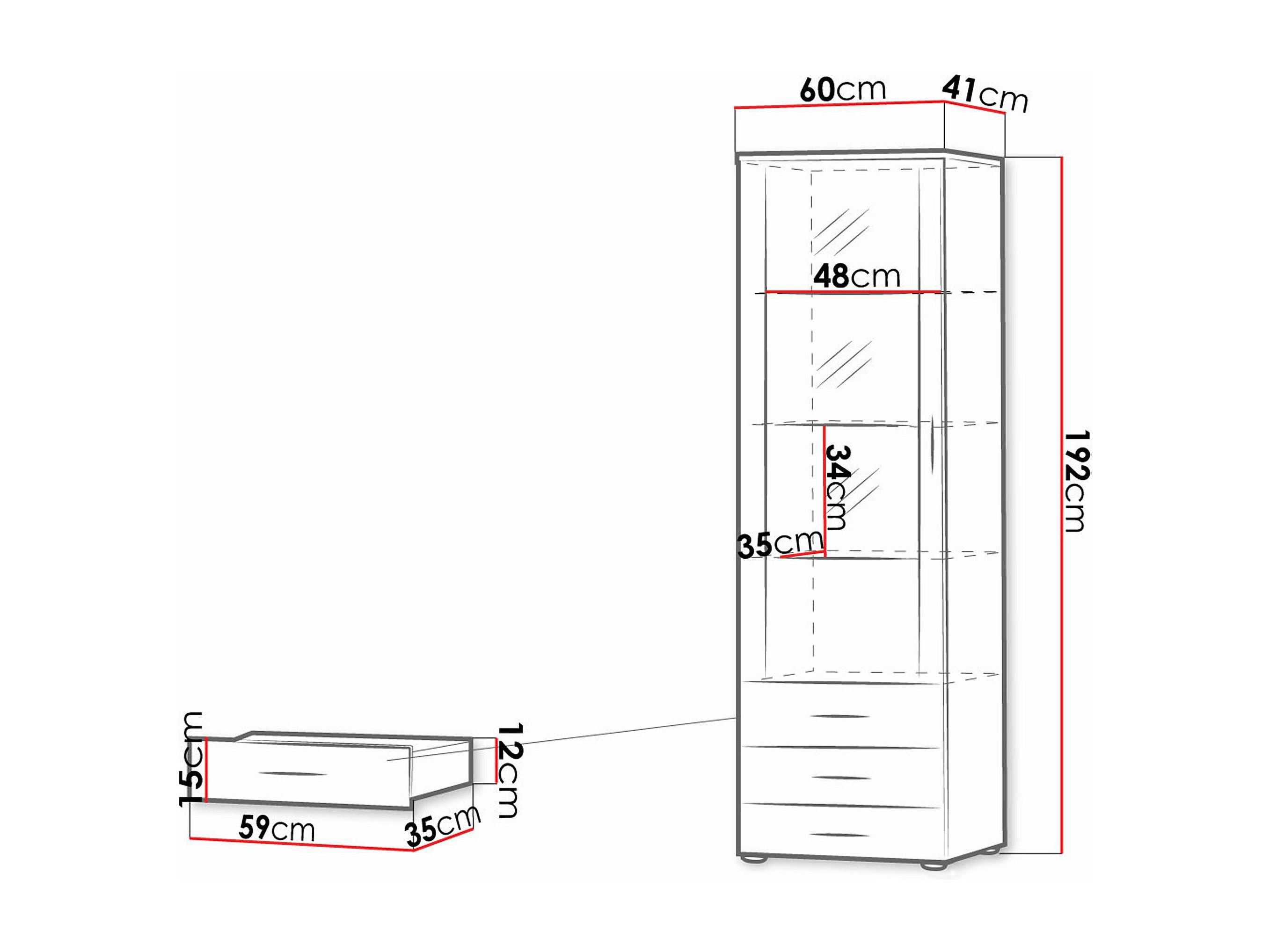 Étagère Tornola 102, Avec des portes|Fermé|Avec tiroirs, Stratifié|Verre, 192x60x41cm