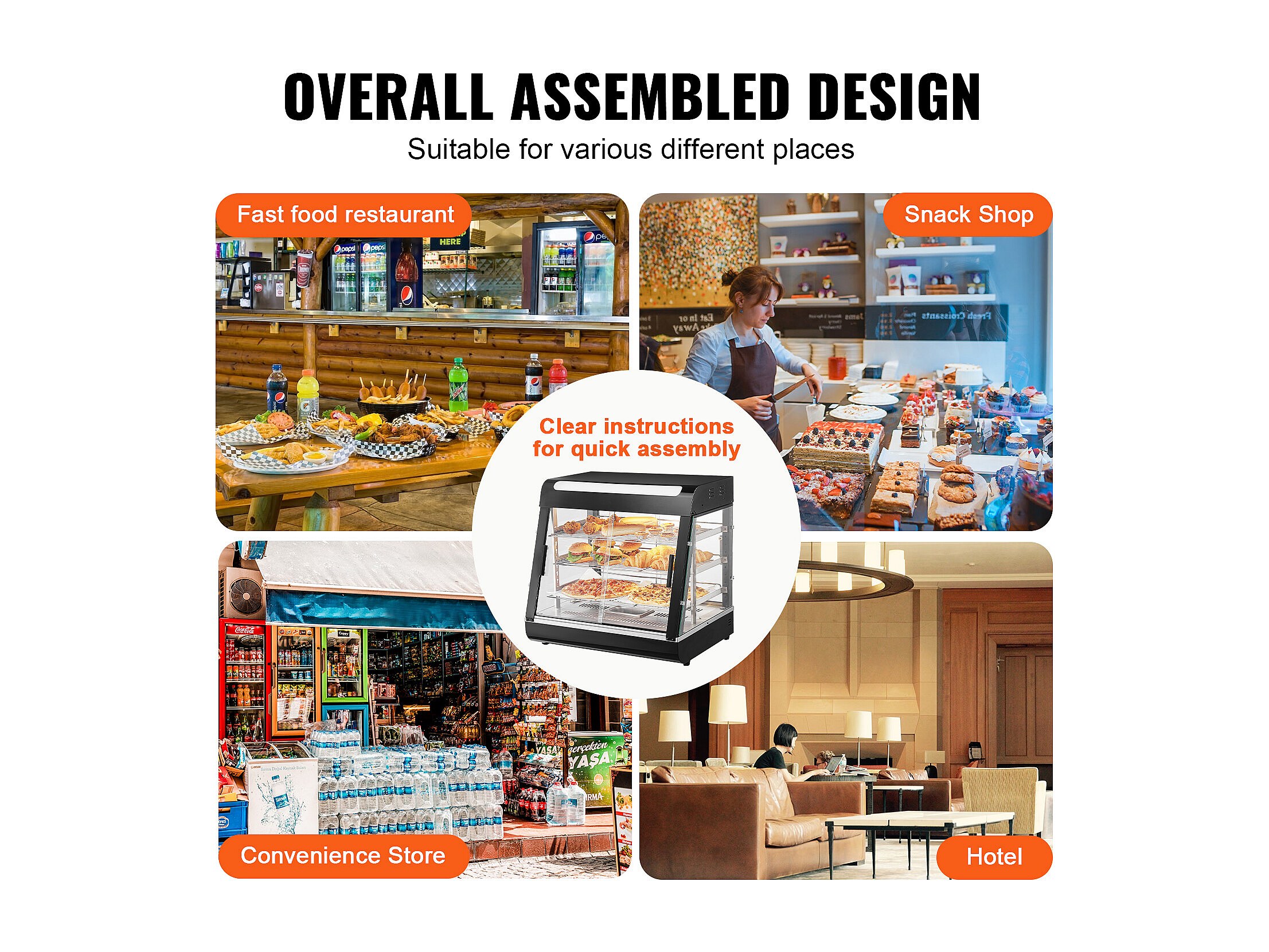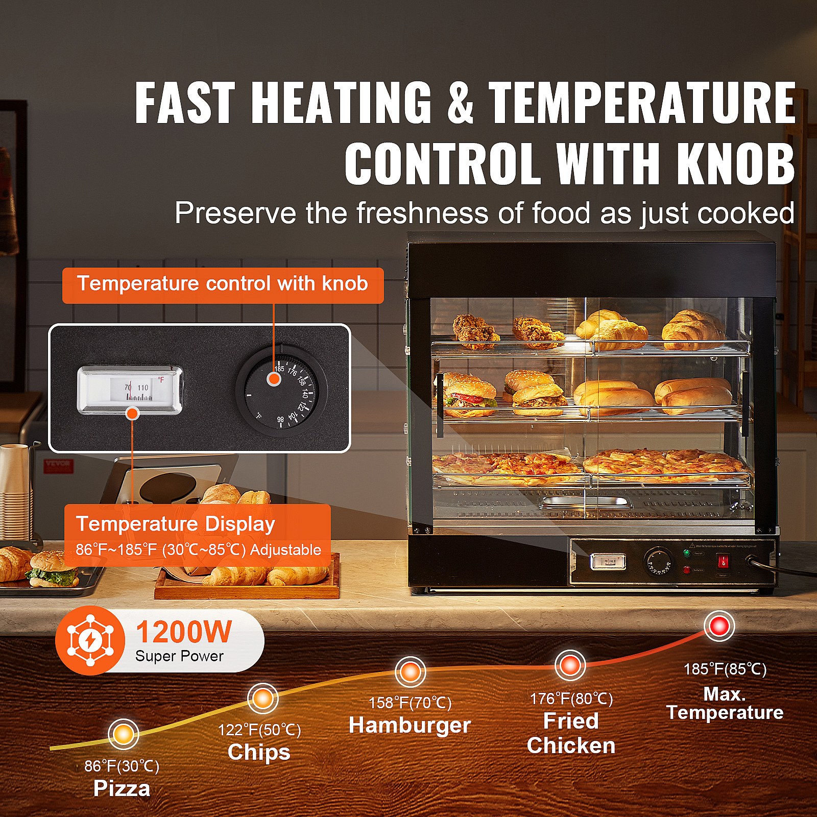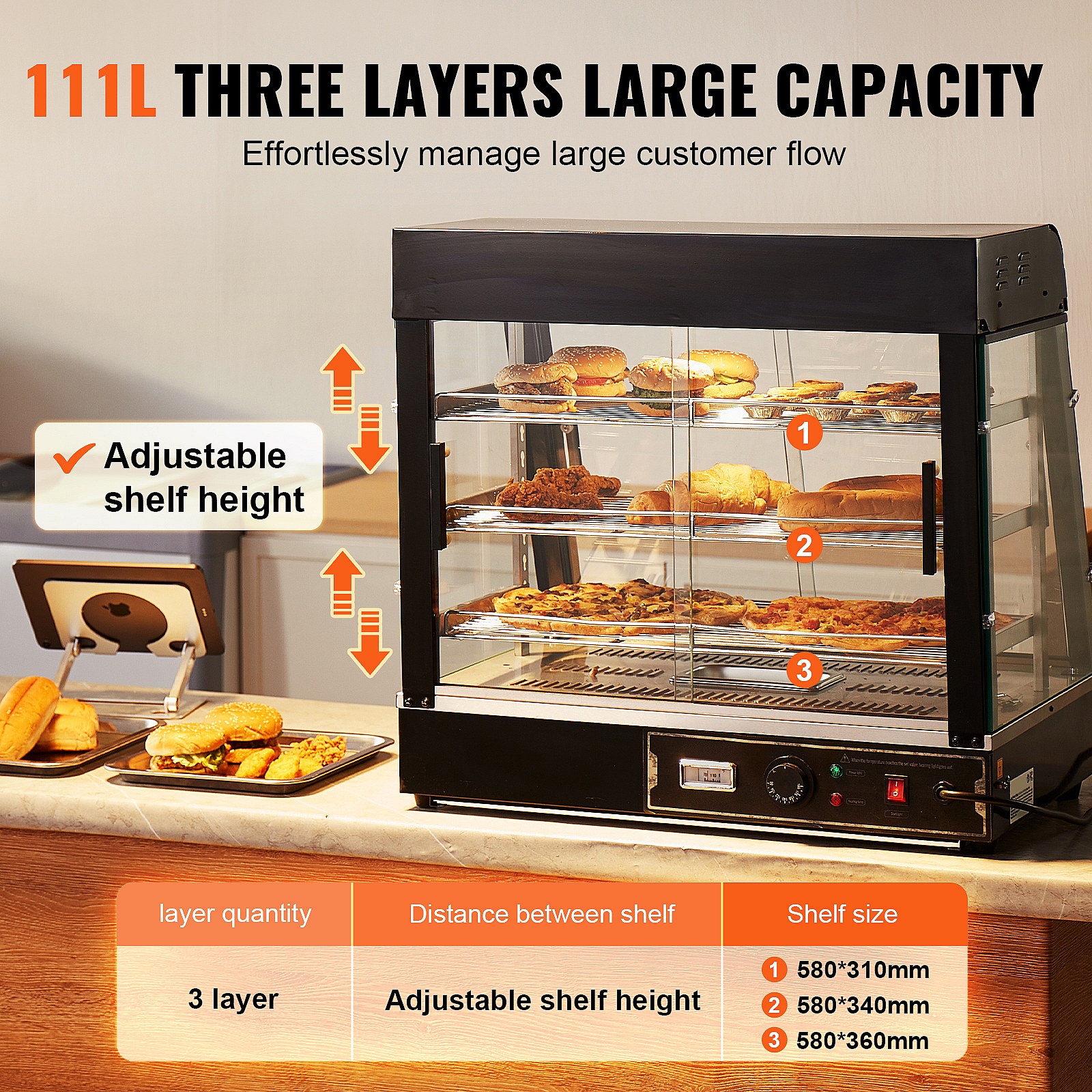 Vitrine Chauffante SucceBuy, Armoire à Pizza Commerciale à 3 Niveaux, pour Réchauffeur de Nourriture avec Lumière
