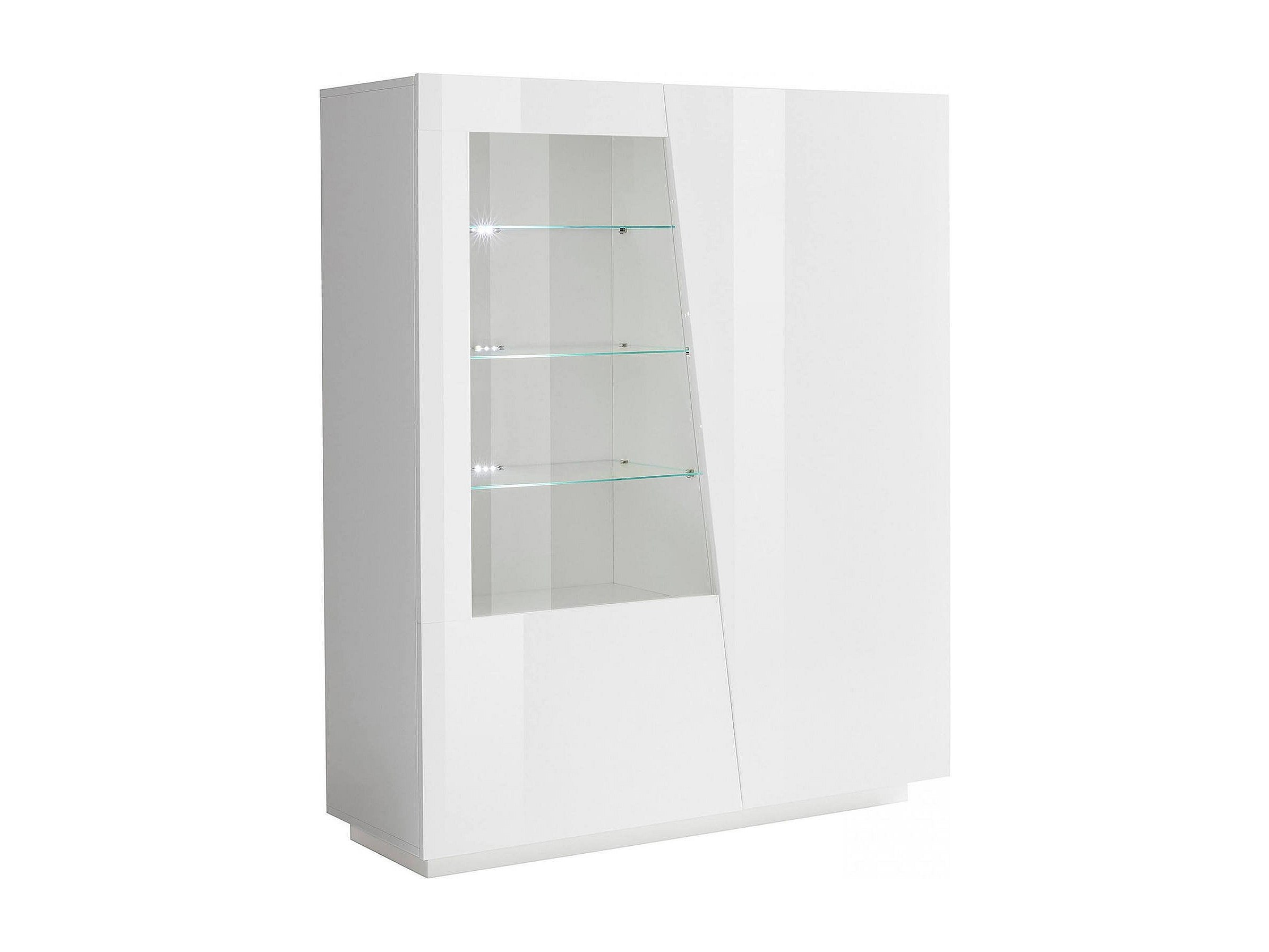 Vitrine Dkruni, Buffet avec porte vitrée, Meuble de salon polyvalent avec lumière LED, 100% Made in Italy, 120x43h146 cm, Blanc brillant