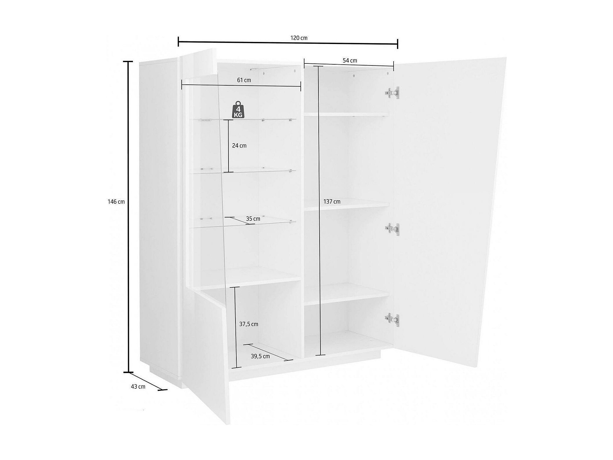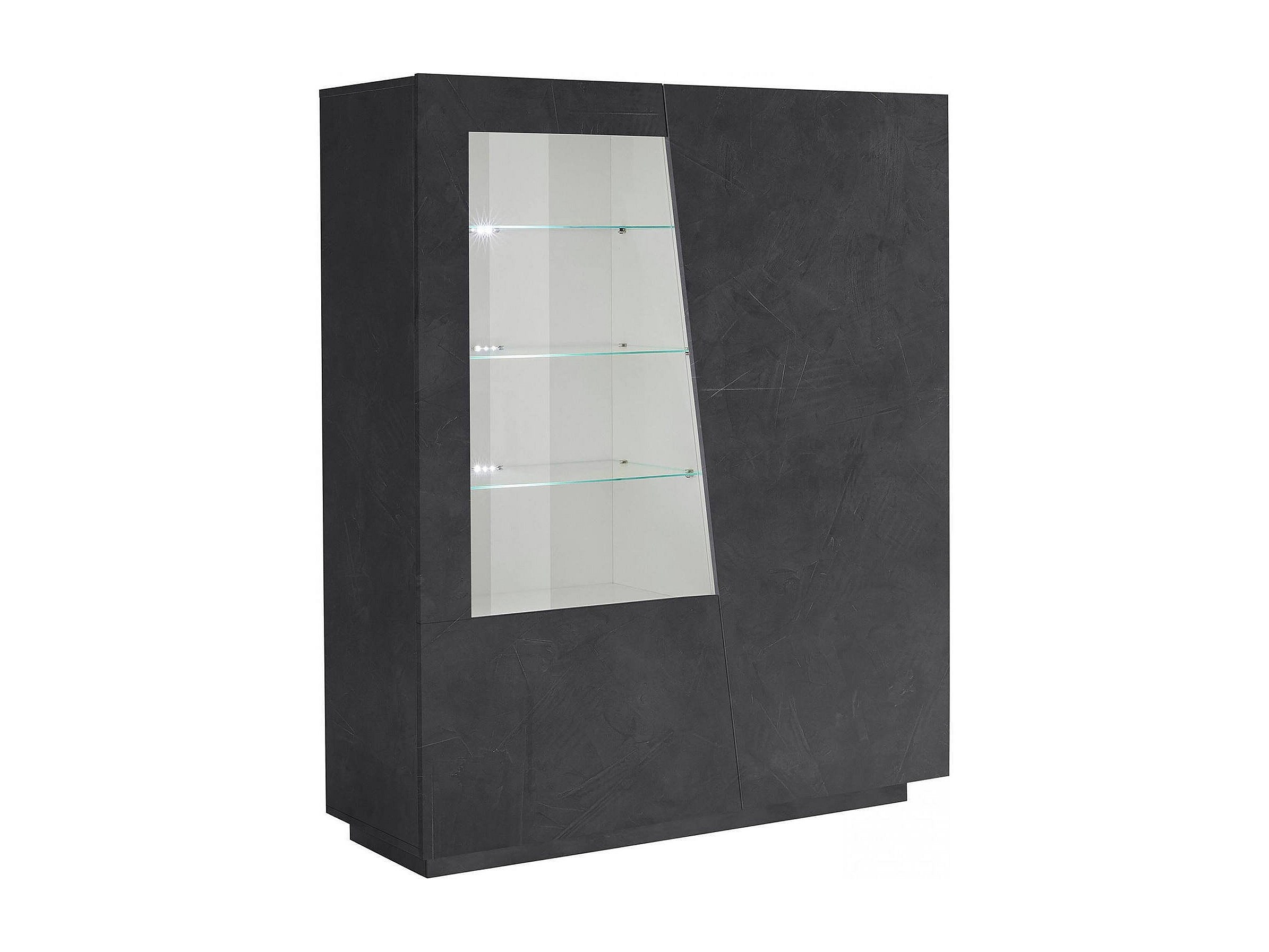 Vitrine Dkruni, Buffet avec porte vitrée, Meuble de salon polyvalent avec lumière LED, 100% Made in Italy, 120x43h146 cm, Ardoise