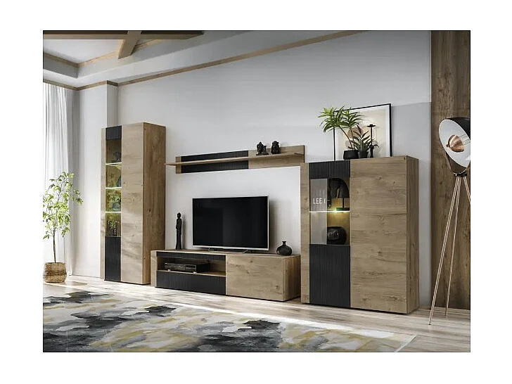 Vitrine DOUM – Chêne clair et noir – L70 x H192 x P40 cm