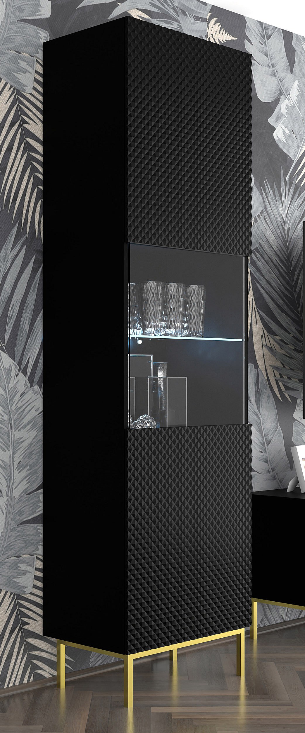 Vitrine Ravenna C 1DS 60 cm noir brillant avec cadre