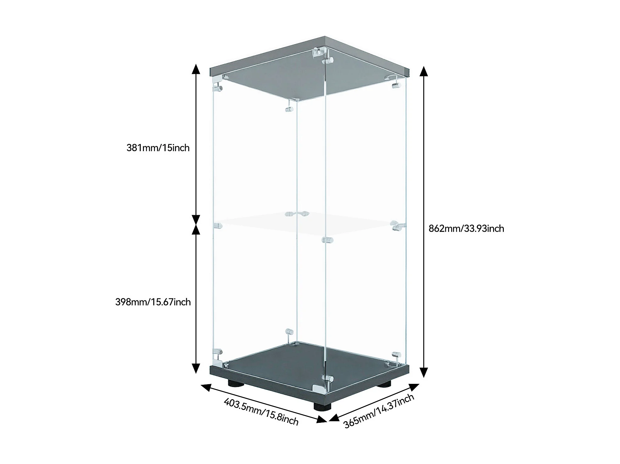 Vitrine en Verre 2 étagères, Meuble Vitrine Verre avec LED et Portes, 86x40x36 cm, Noir