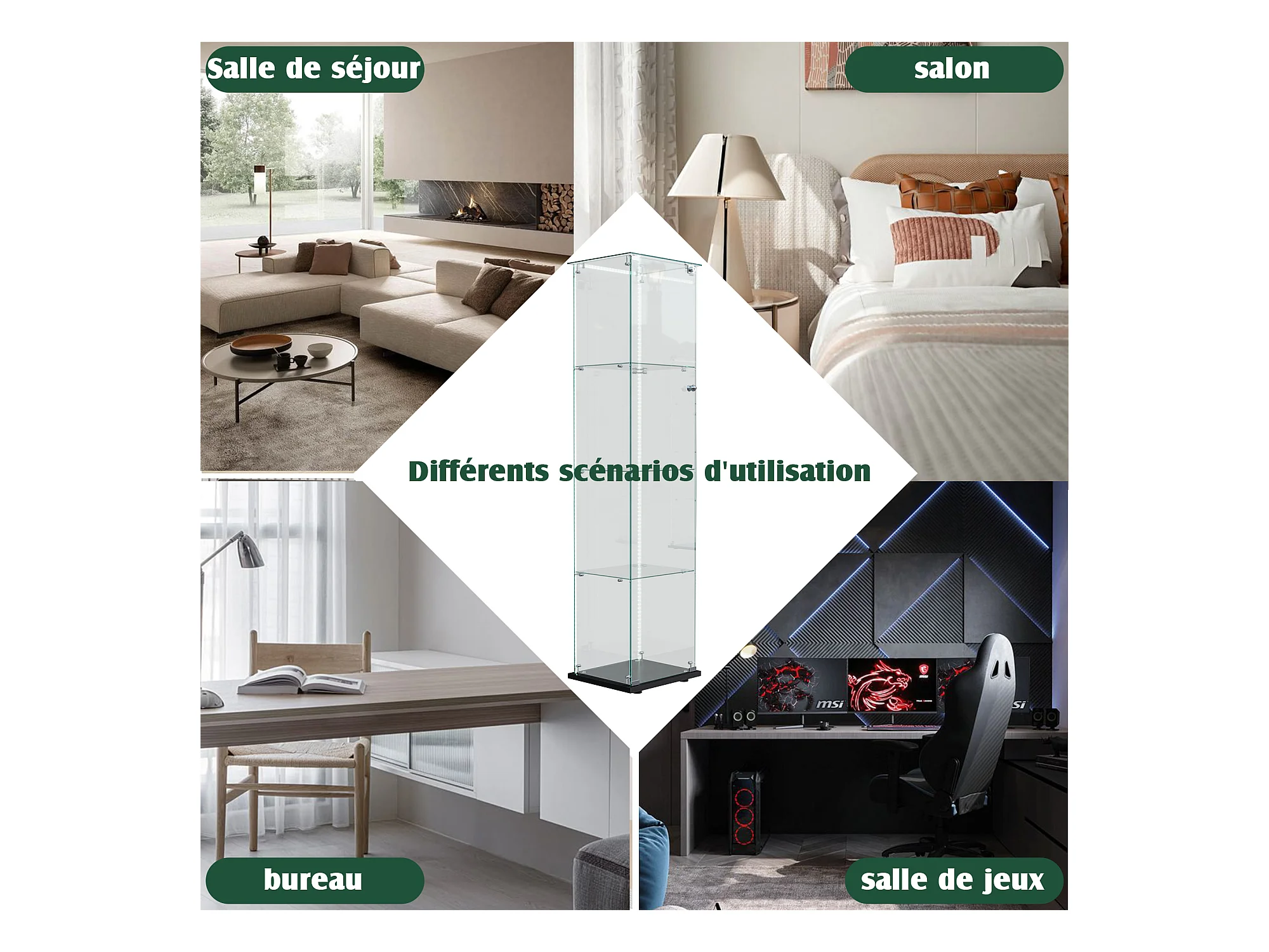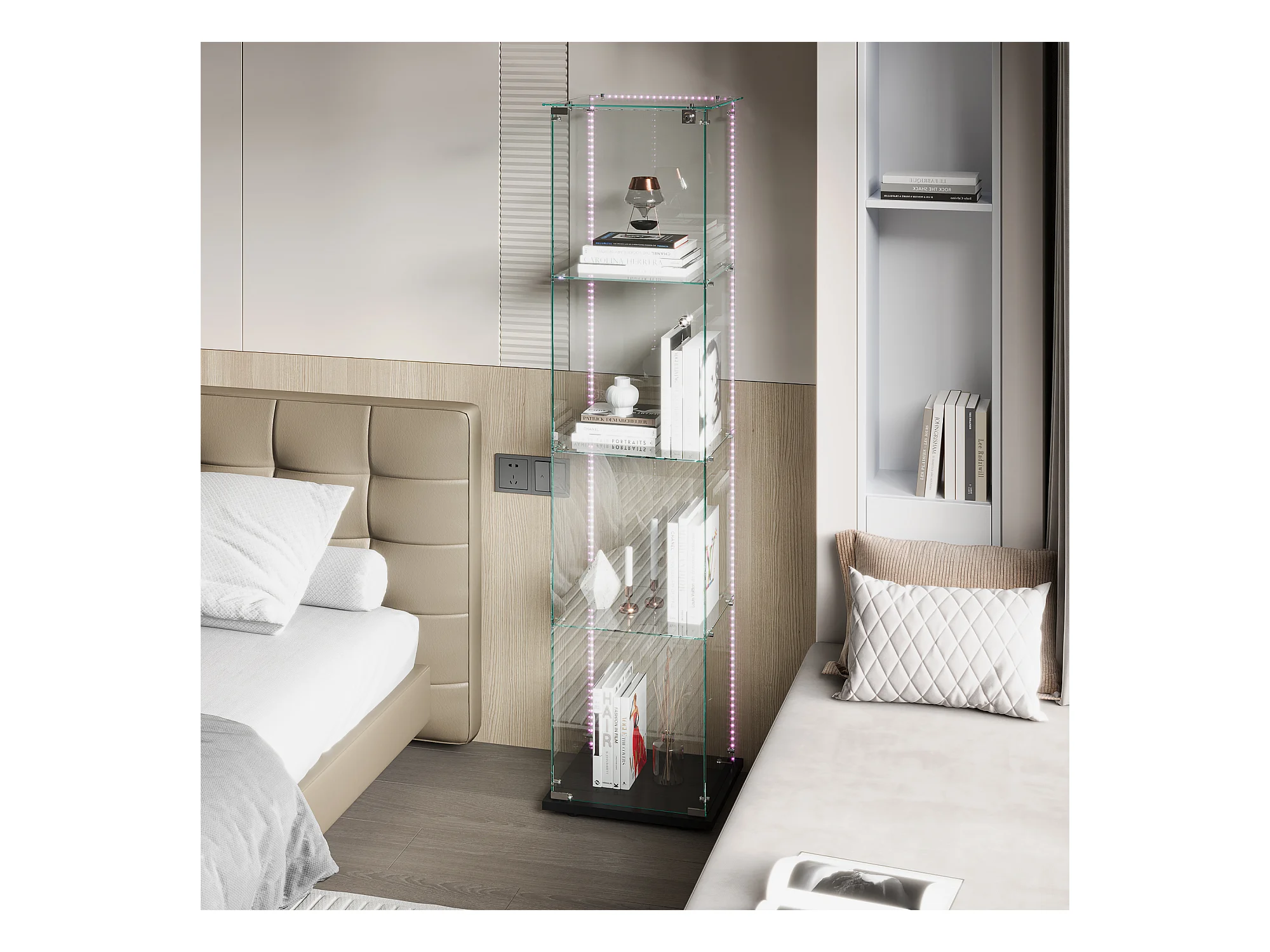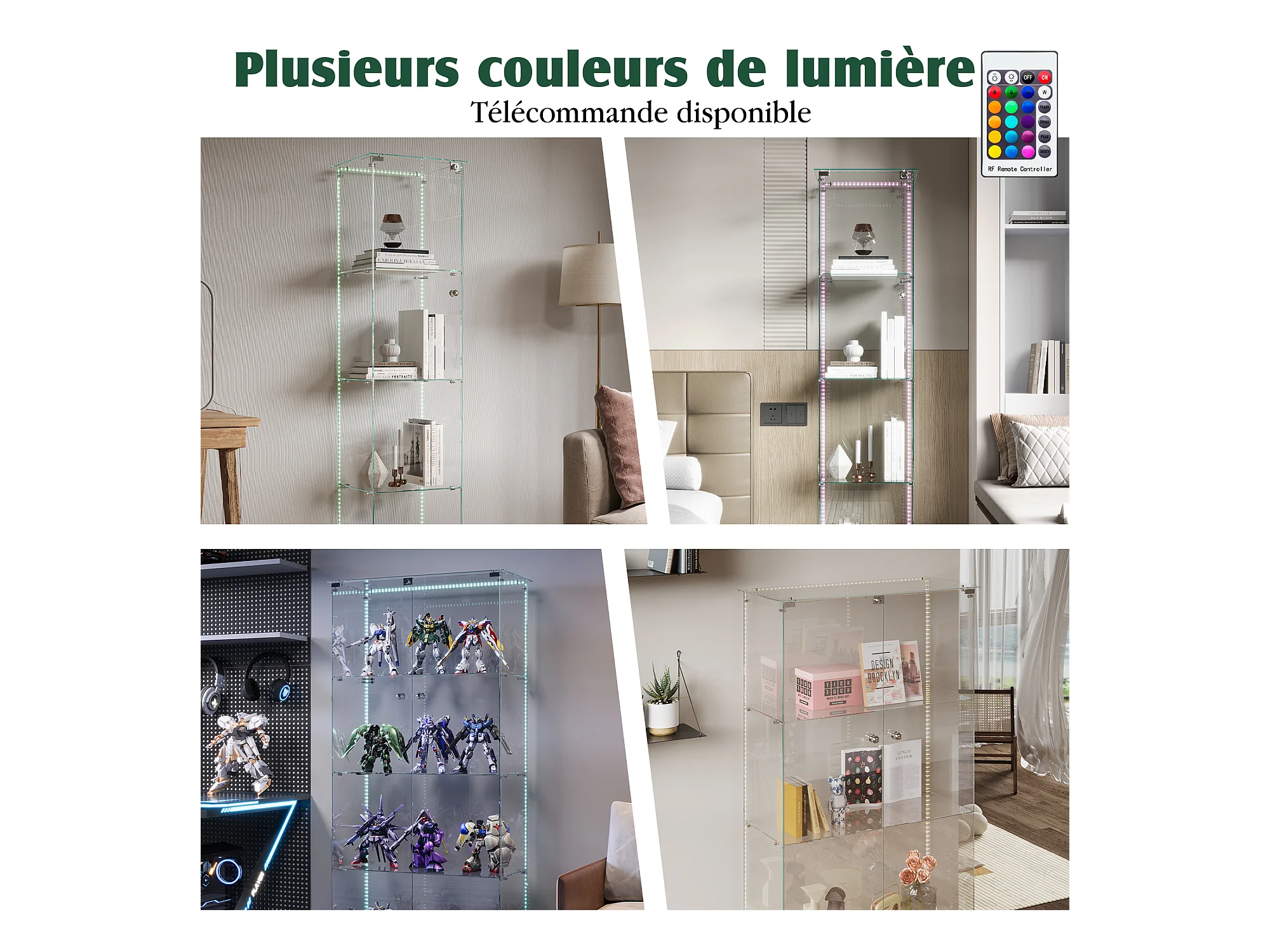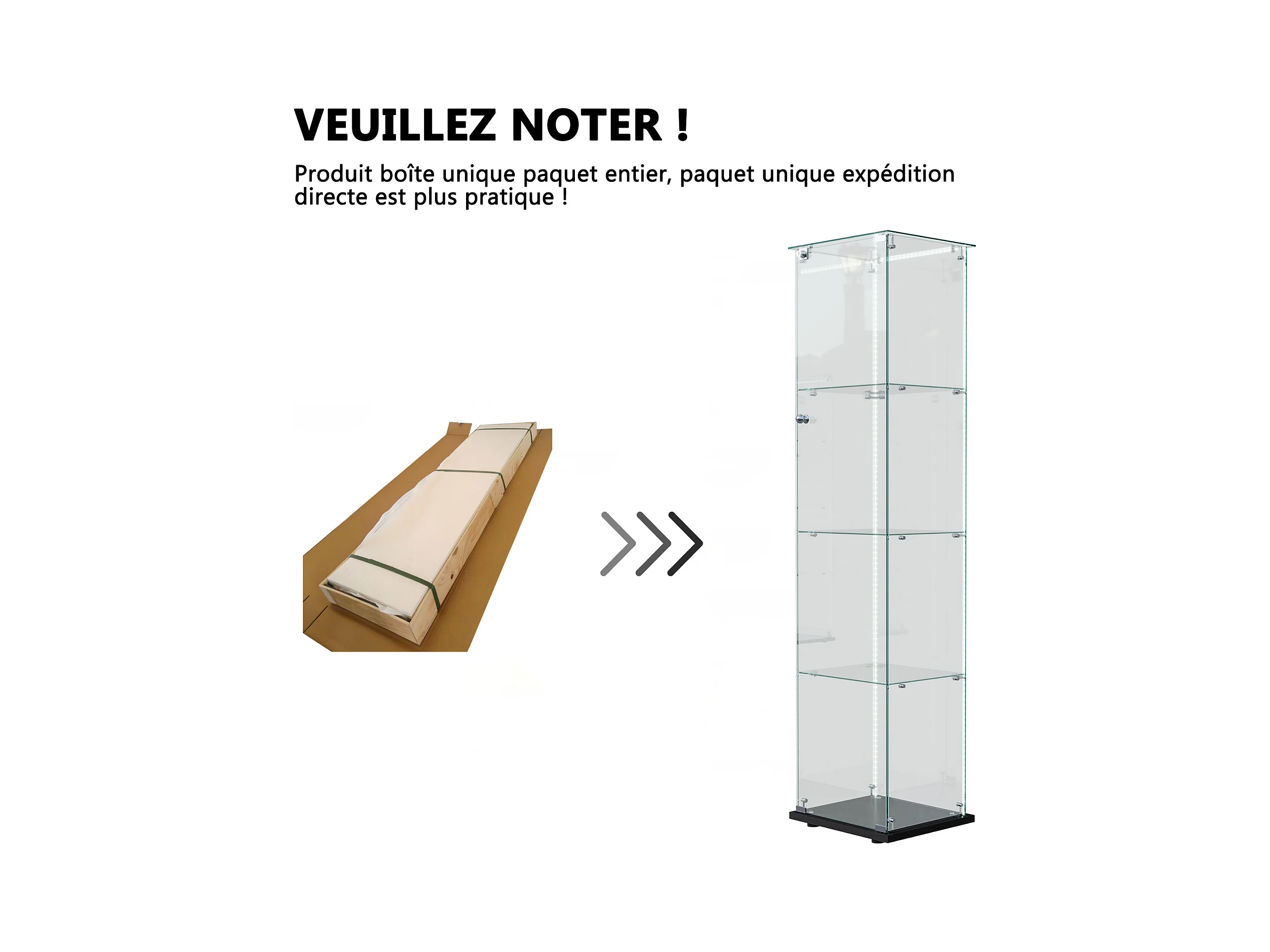 Vitrine en verre avec 5 étagères et portes doubles, vitrine de salon