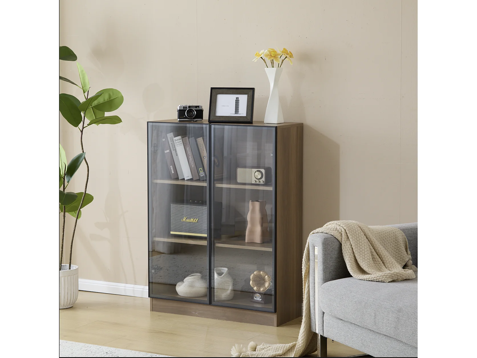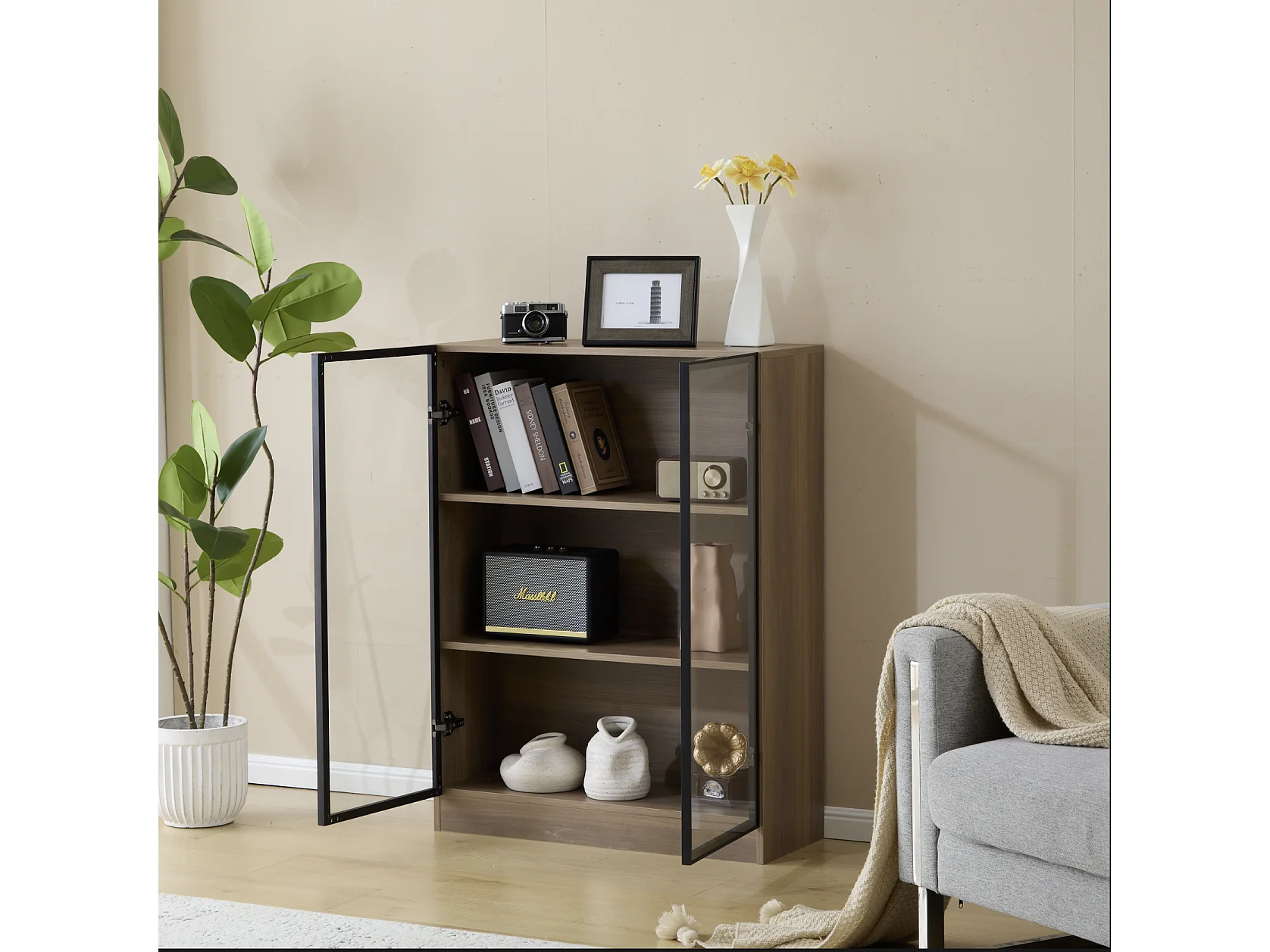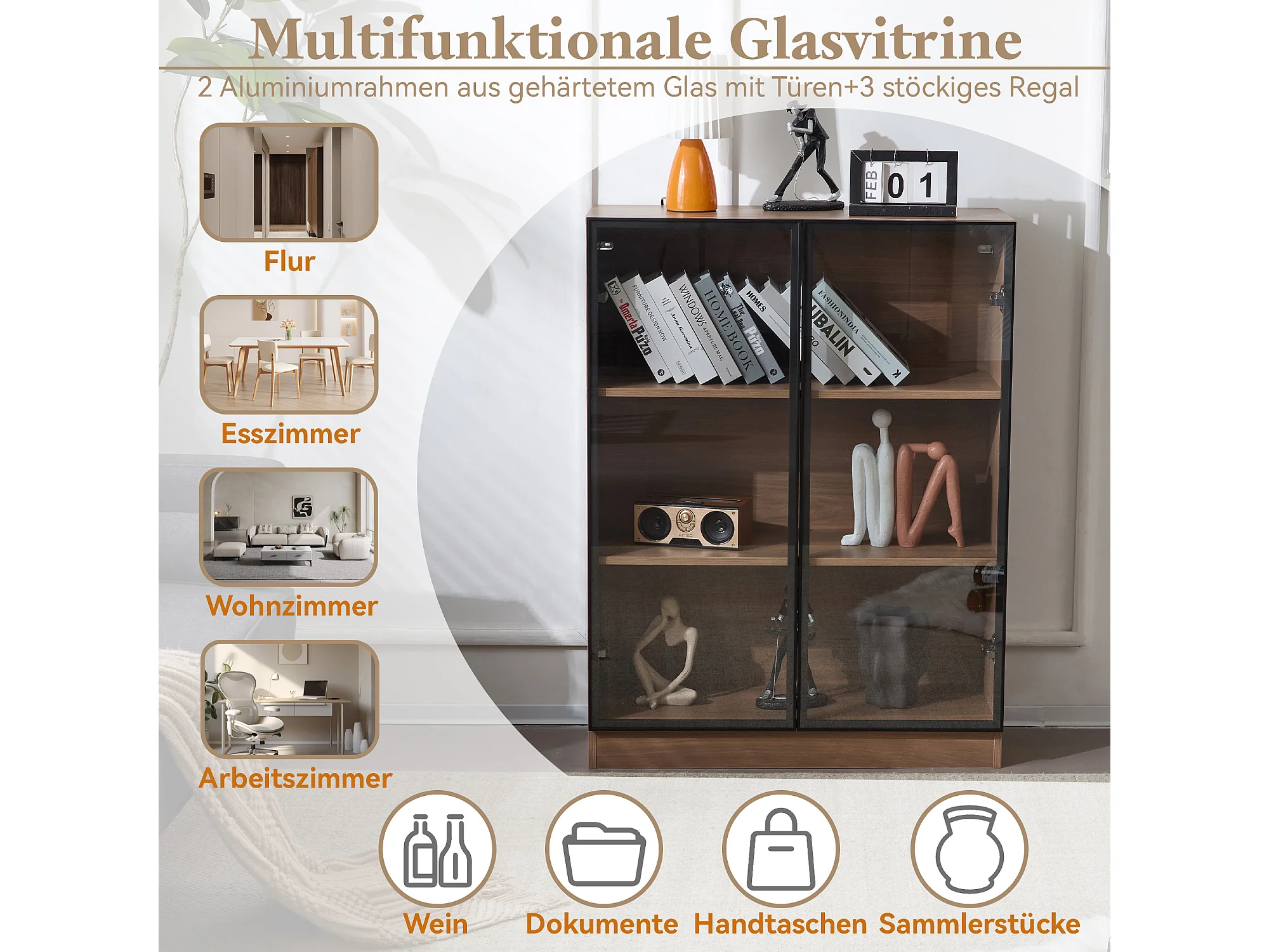 Vitrine en verre avec éclairage LED, design moderne, aluminium et verre, naturel (80x32x106 cm)