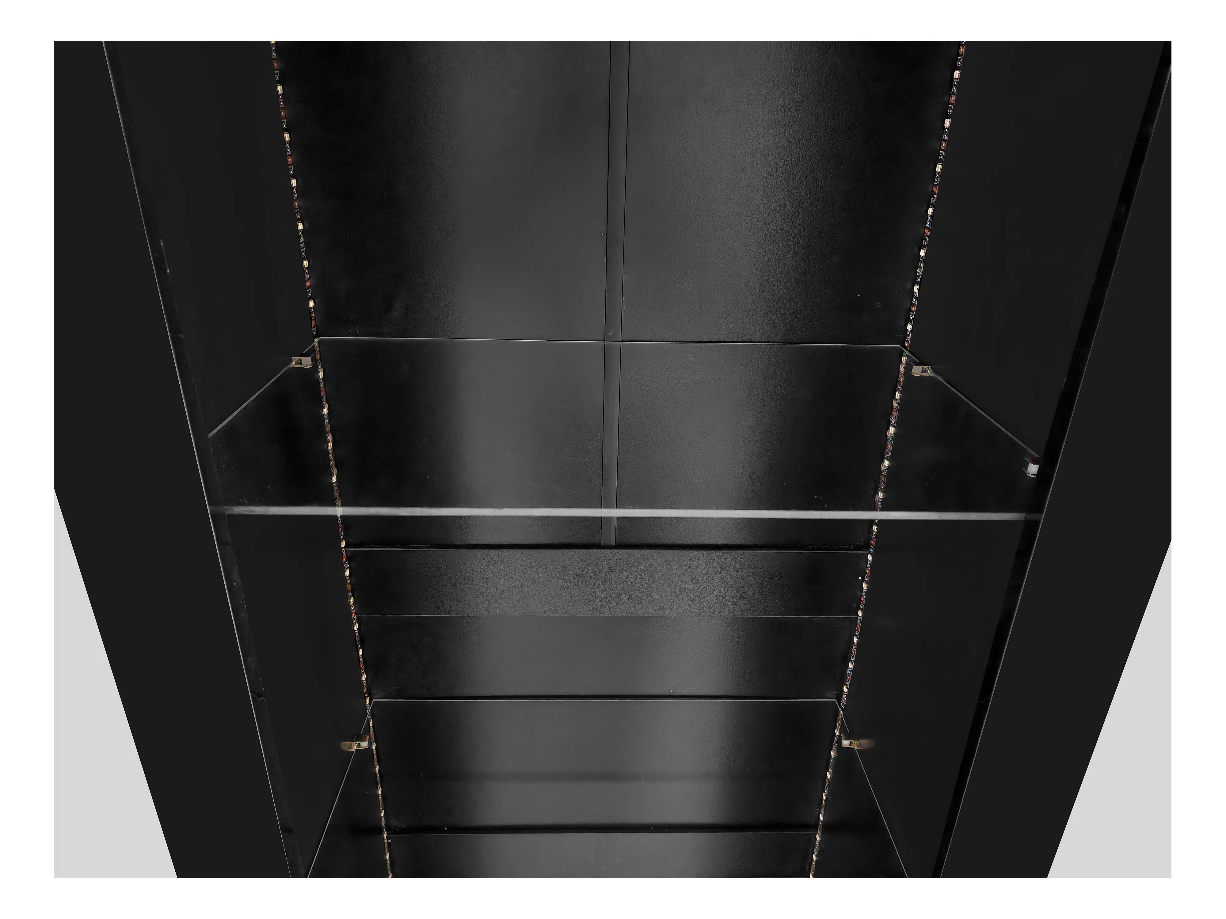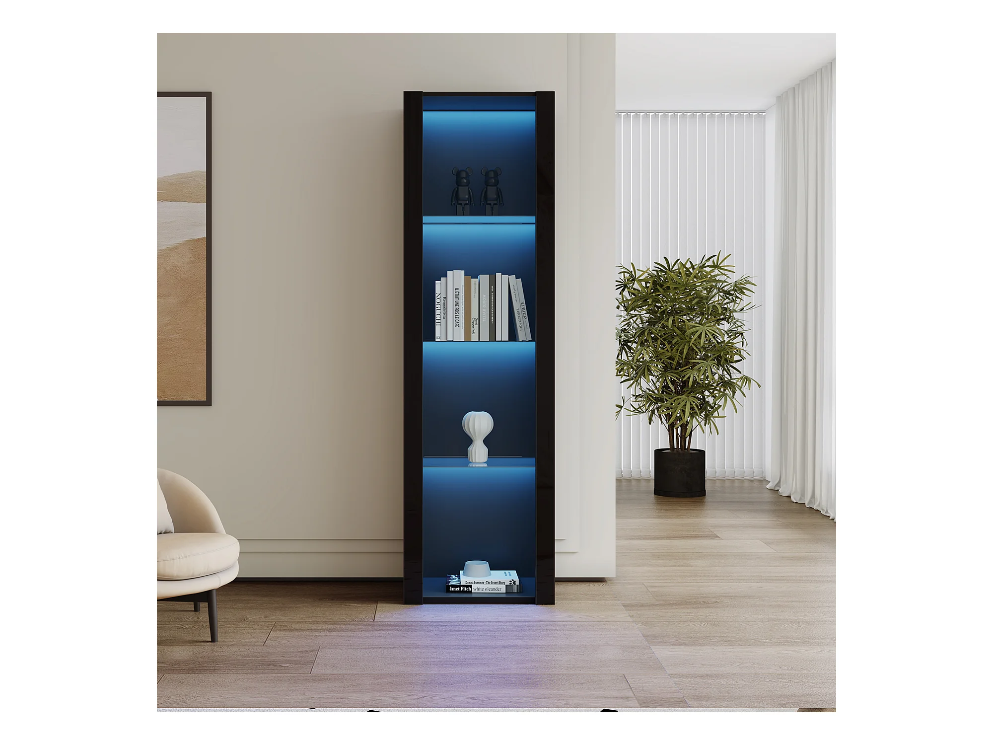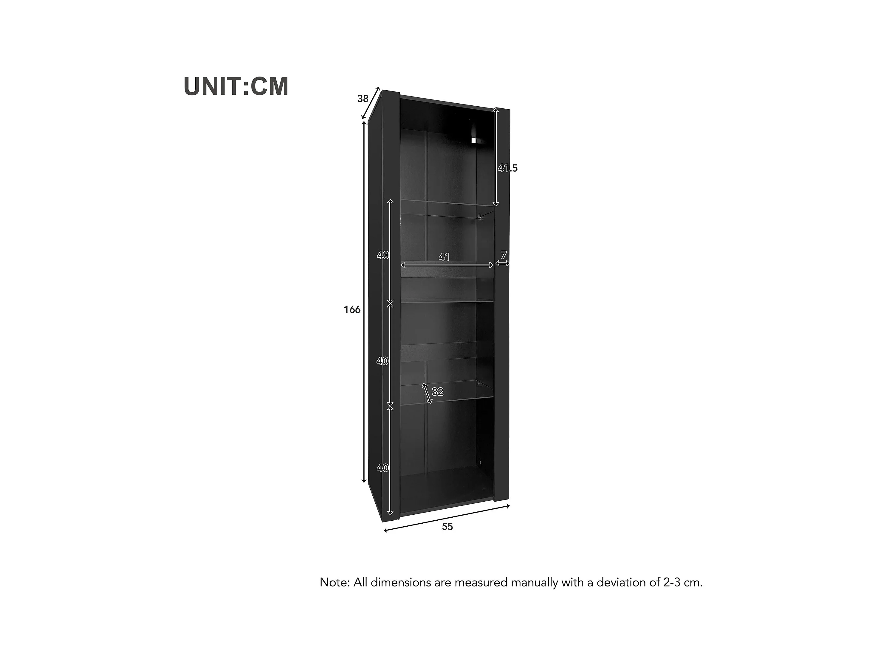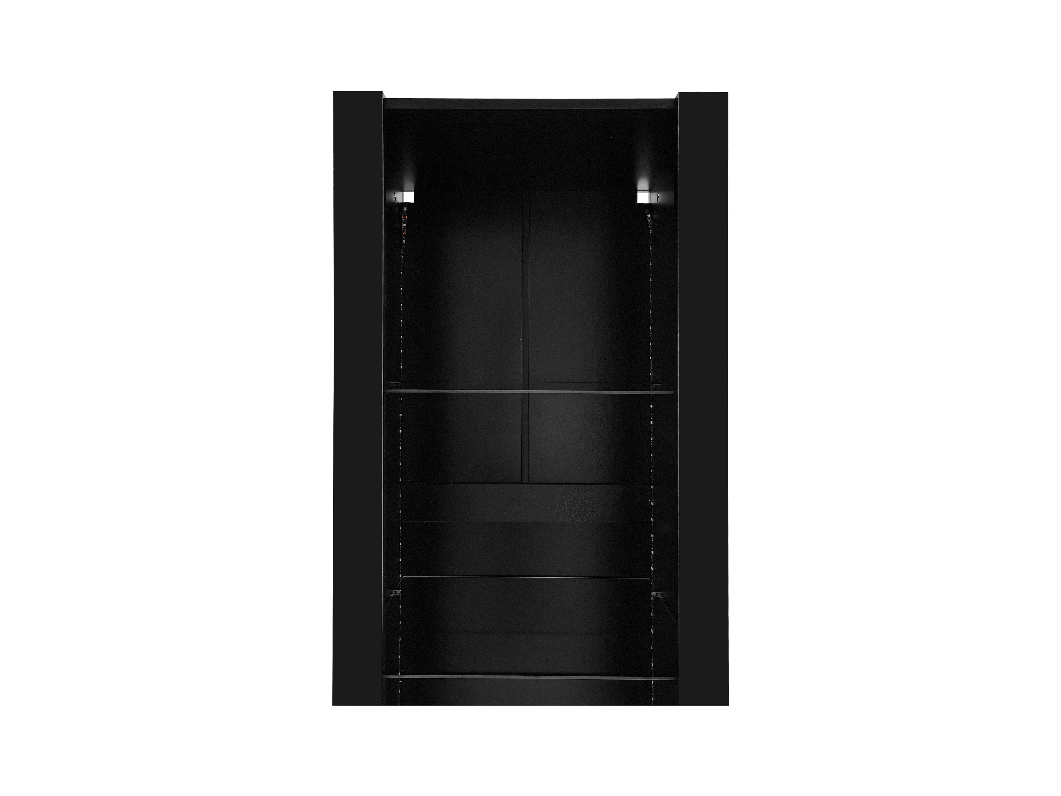Vitrine haute avec 3 tablettes en verre, corps en MDF noir laqué, LED inclus - 55x38x166cm